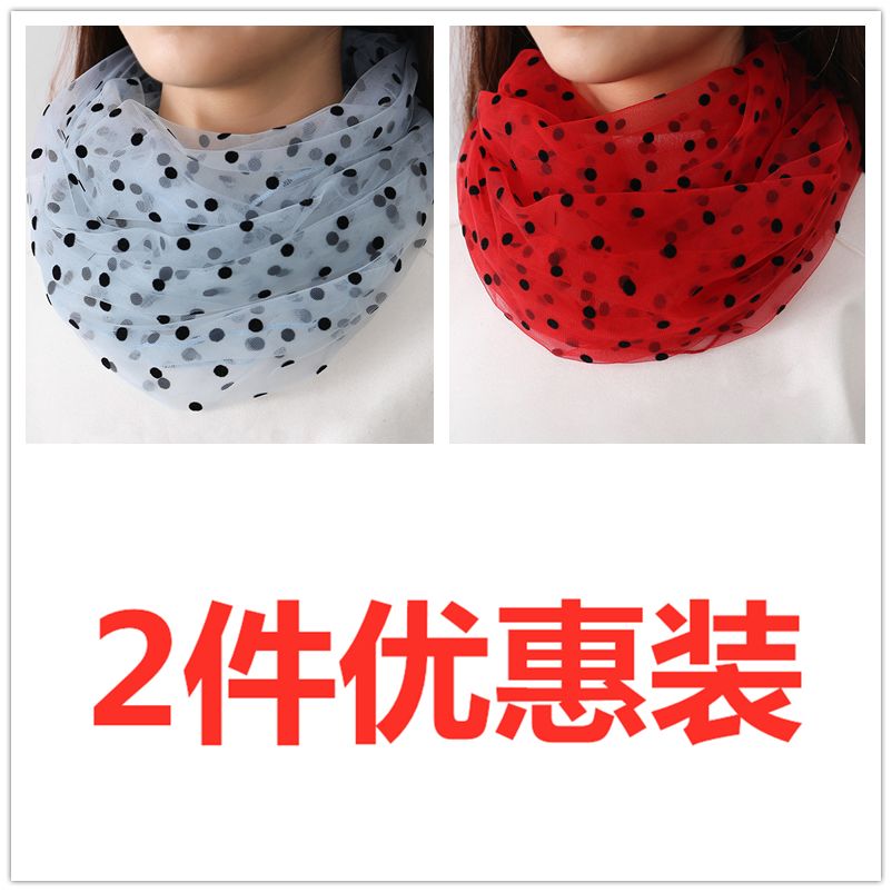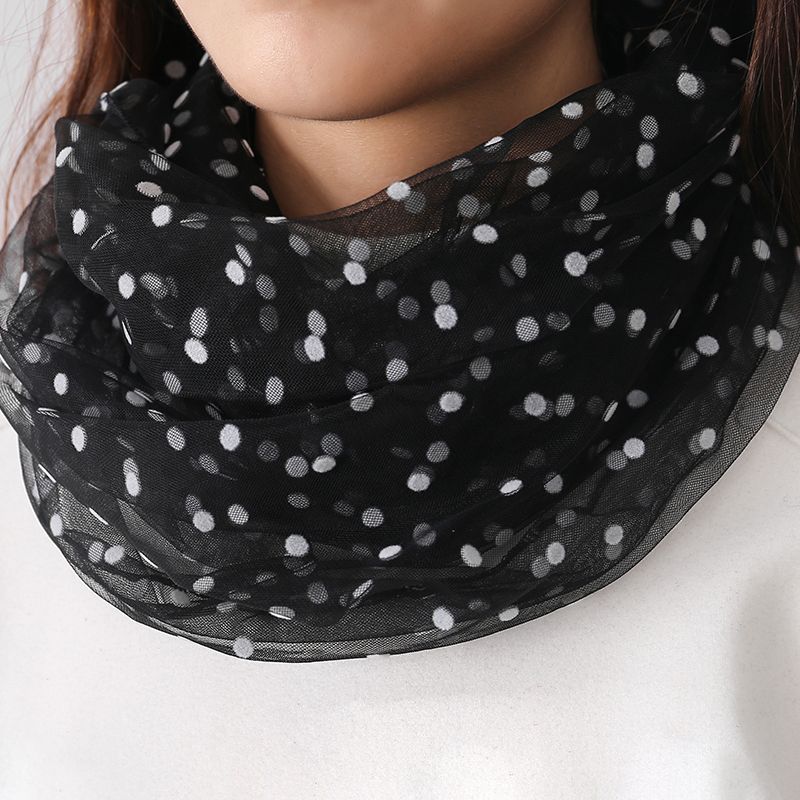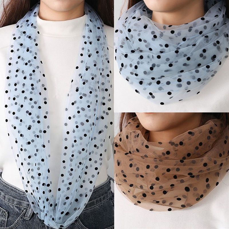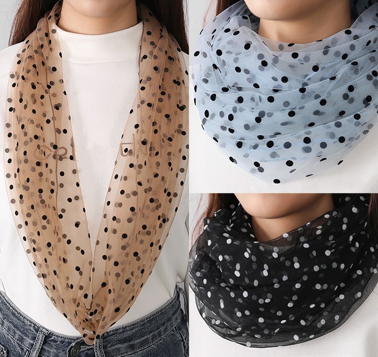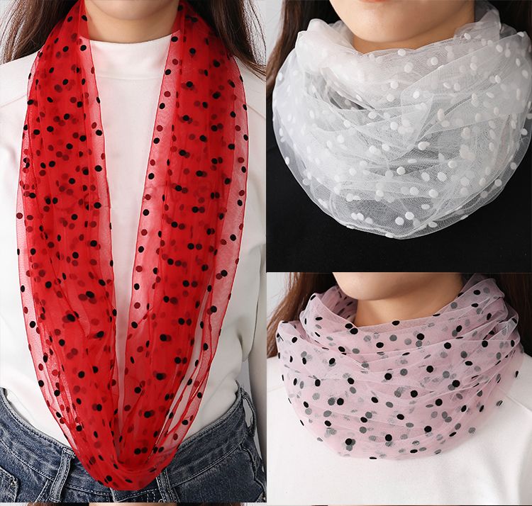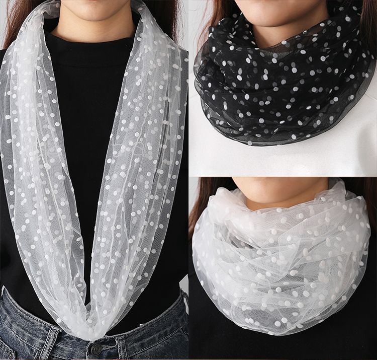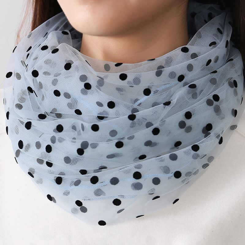波点丝巾女蕾丝网纱长款围巾两圈套头围脖护颈小圆点百搭时尚脖套