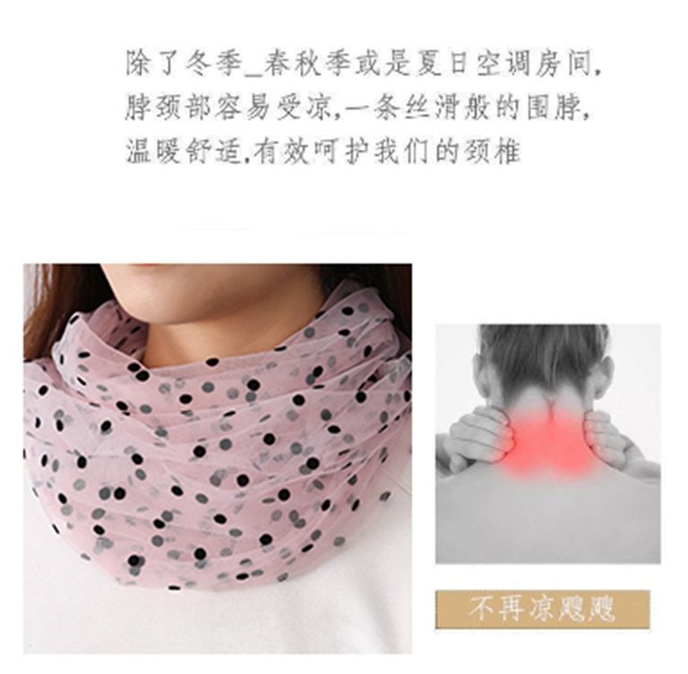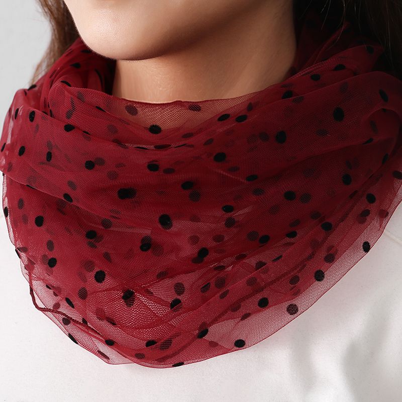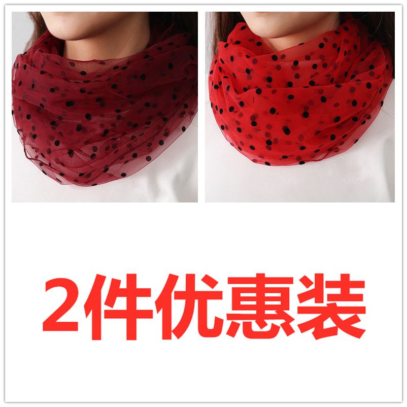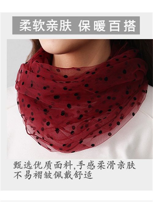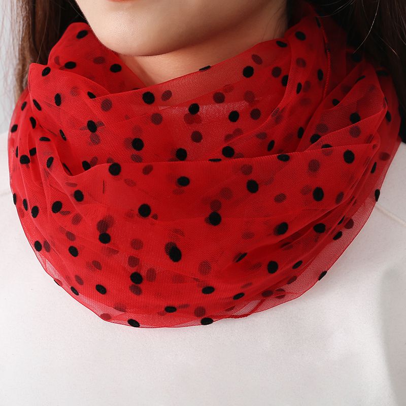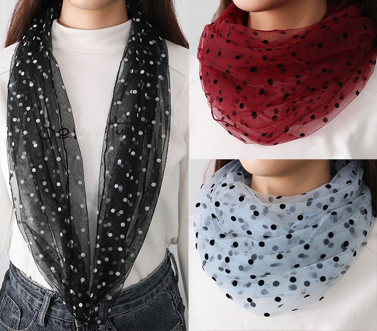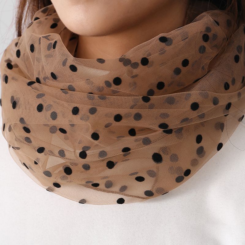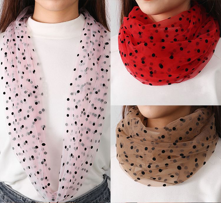 波点丝巾女蕾丝网纱长款围巾两圈套头围脖护颈小圆点百搭时尚脖套
