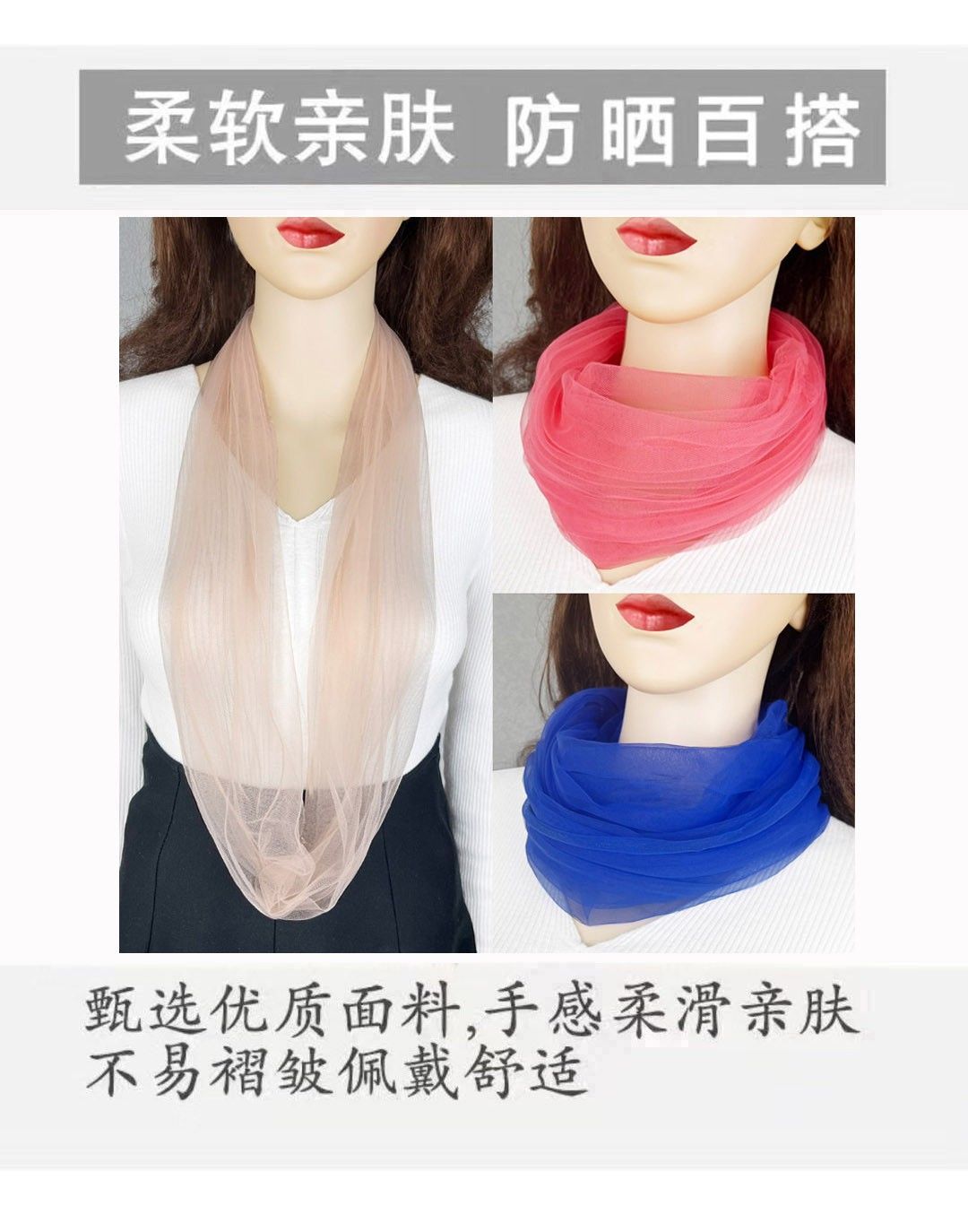 仙女糖果色夏季薄款网红网纱蕾丝防晒护颈椎围脖套头女高级脖套