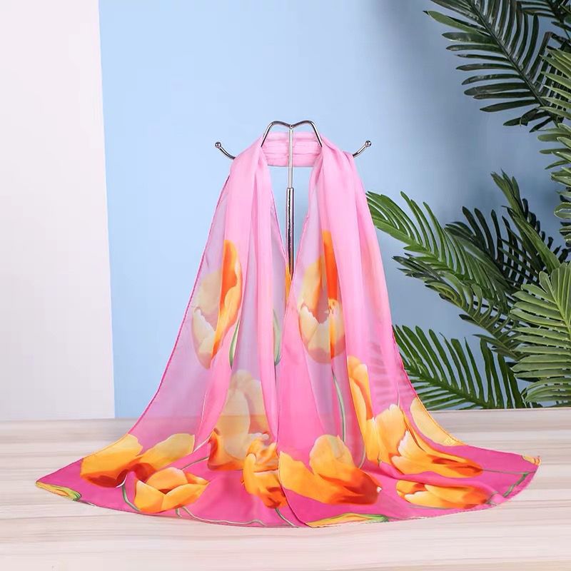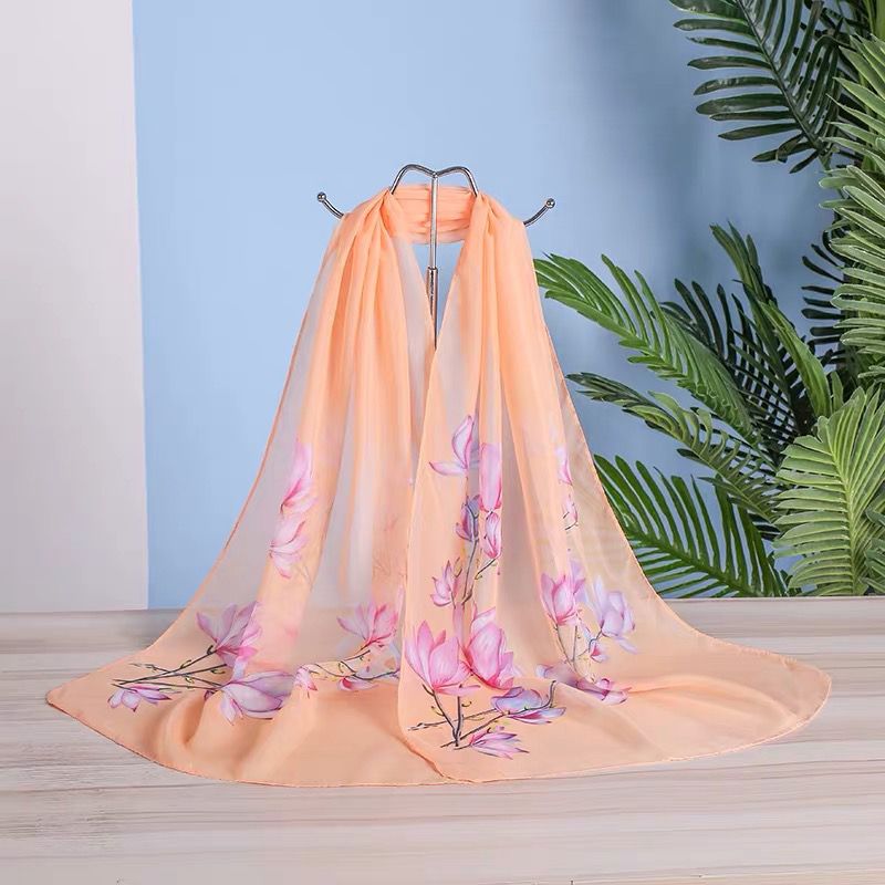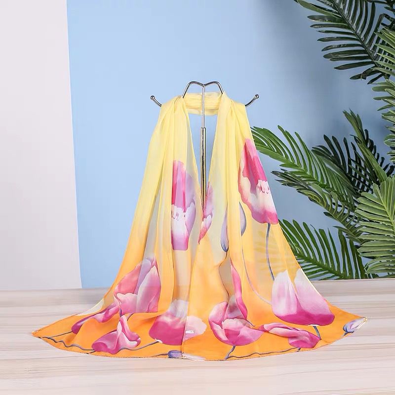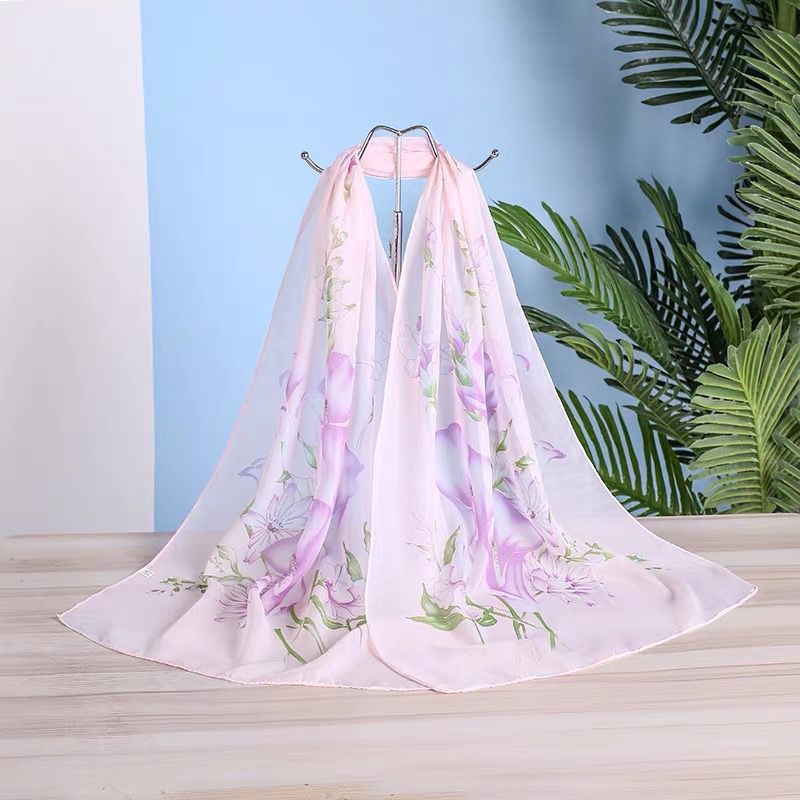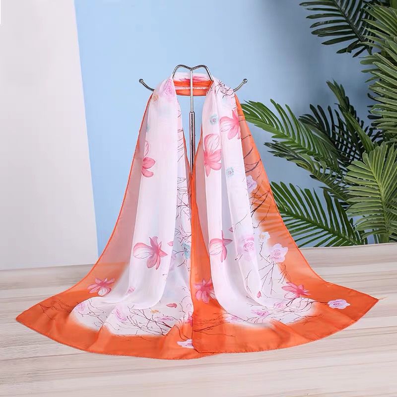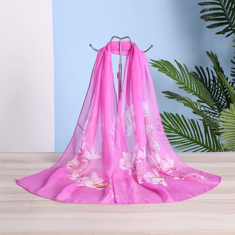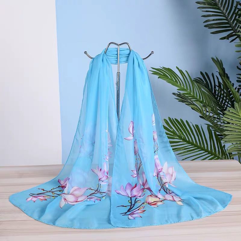 韩版丝巾女春秋薄款雪纺纱巾披肩百搭装饰印花围巾沙滩巾围脖纱巾