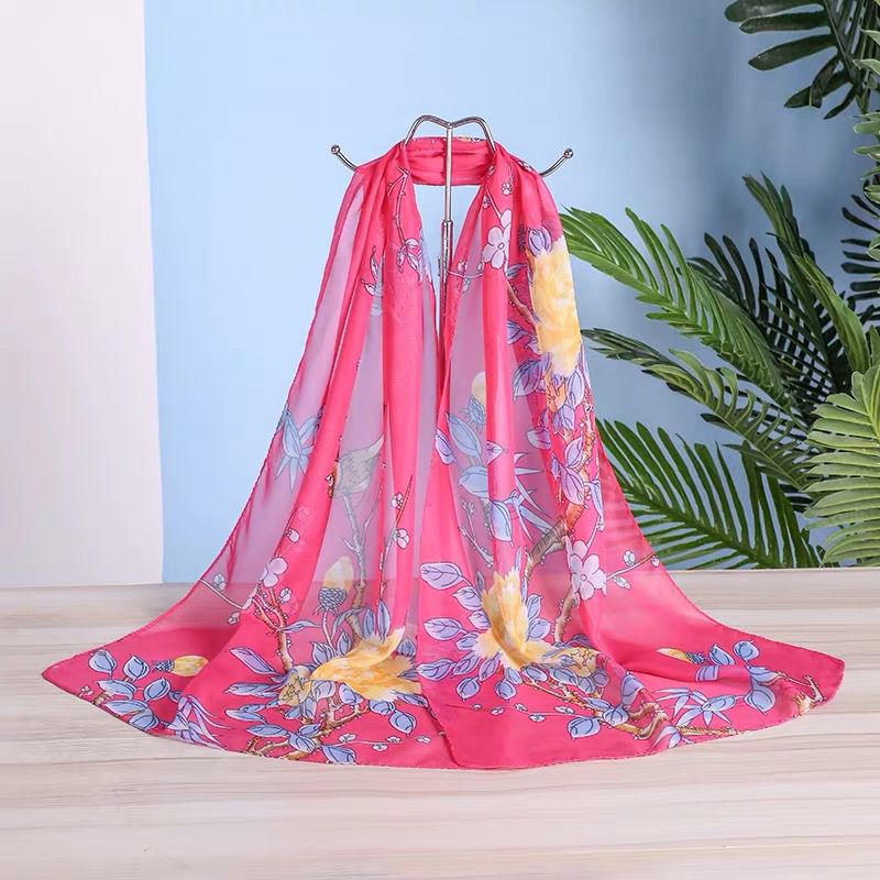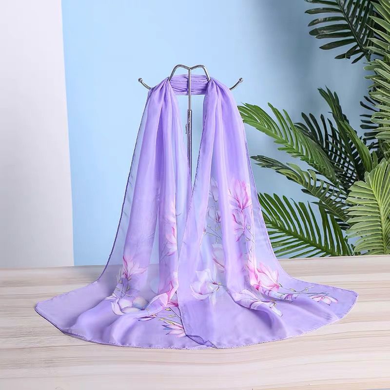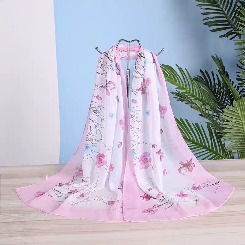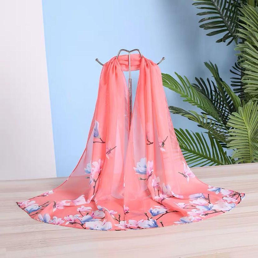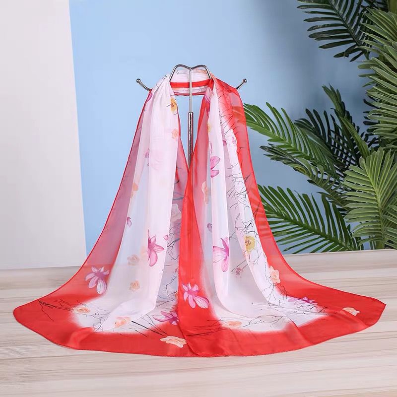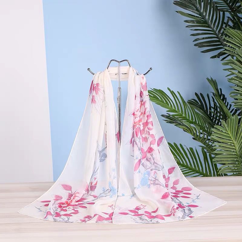 韩版丝巾女春秋薄款雪纺纱巾披肩百搭装饰印花围巾沙滩巾围脖纱巾