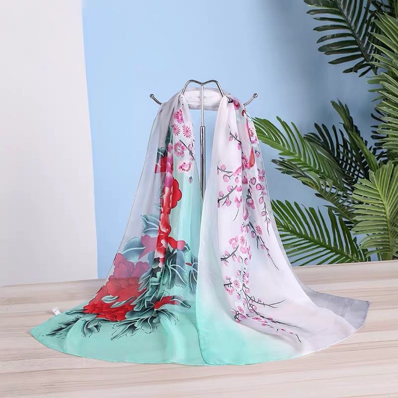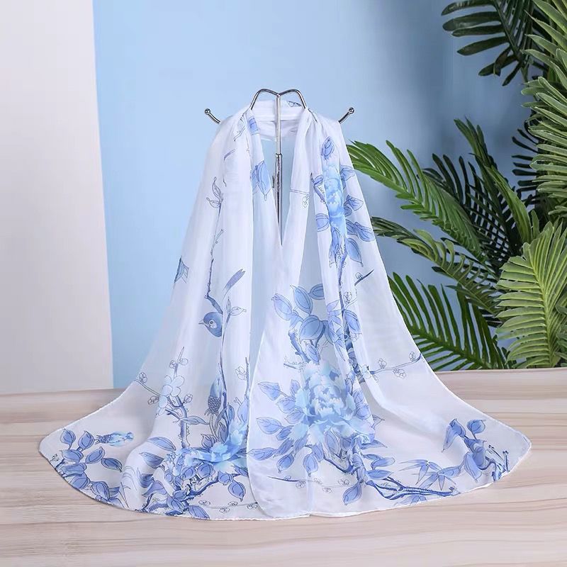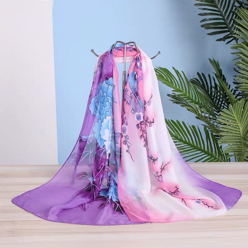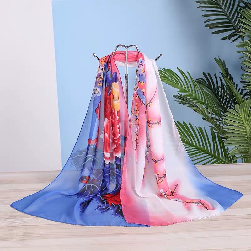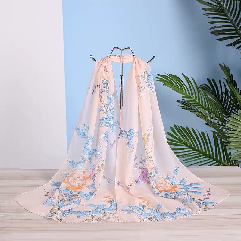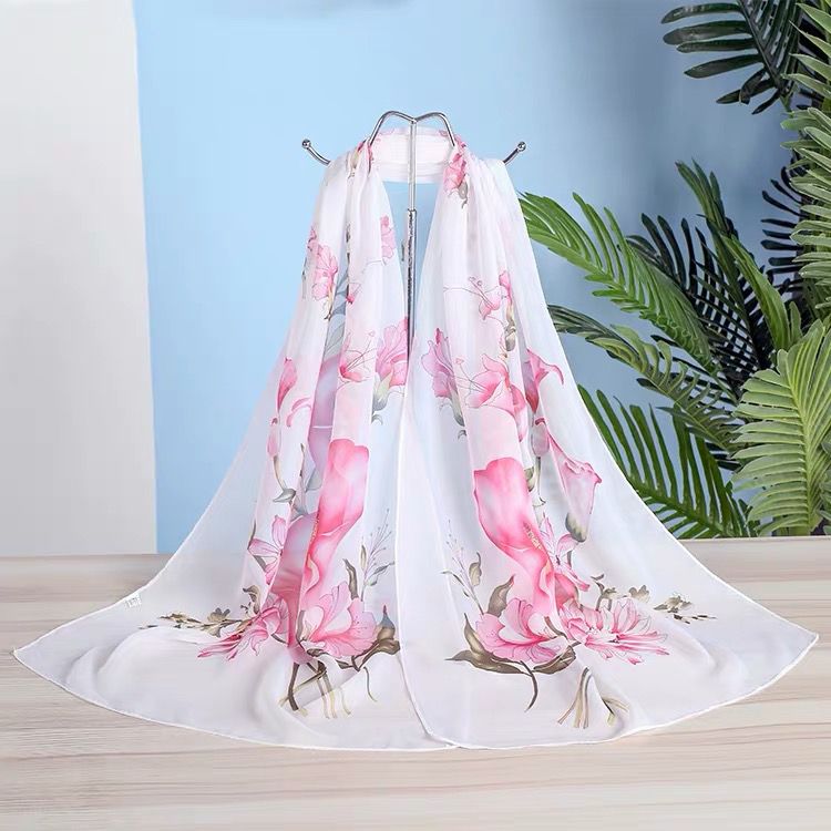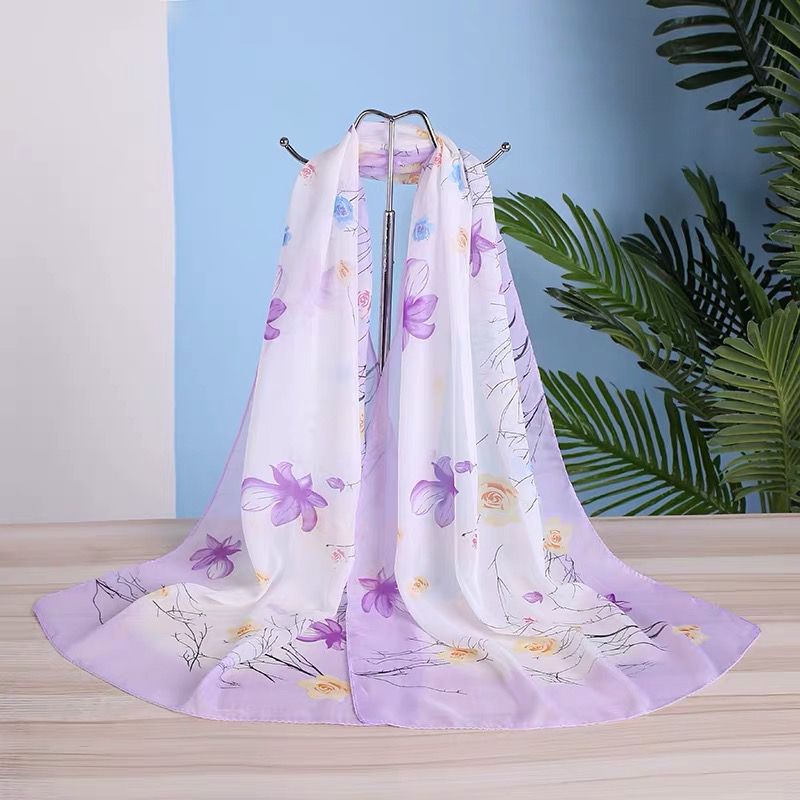 韩版丝巾女春秋薄款雪纺纱巾披肩百搭装饰印花围巾沙滩巾围脖纱巾