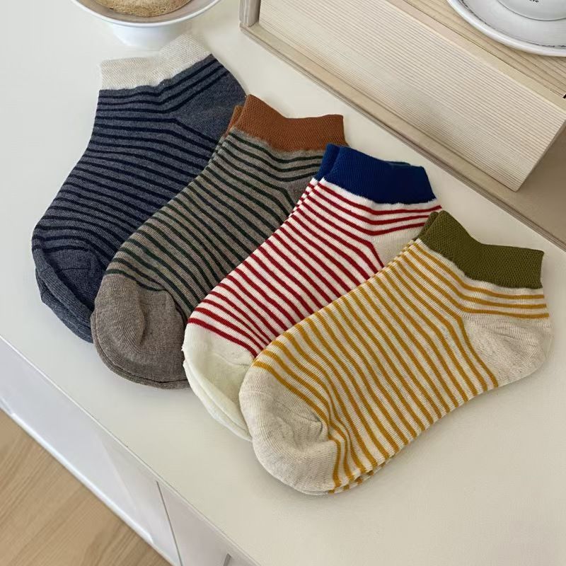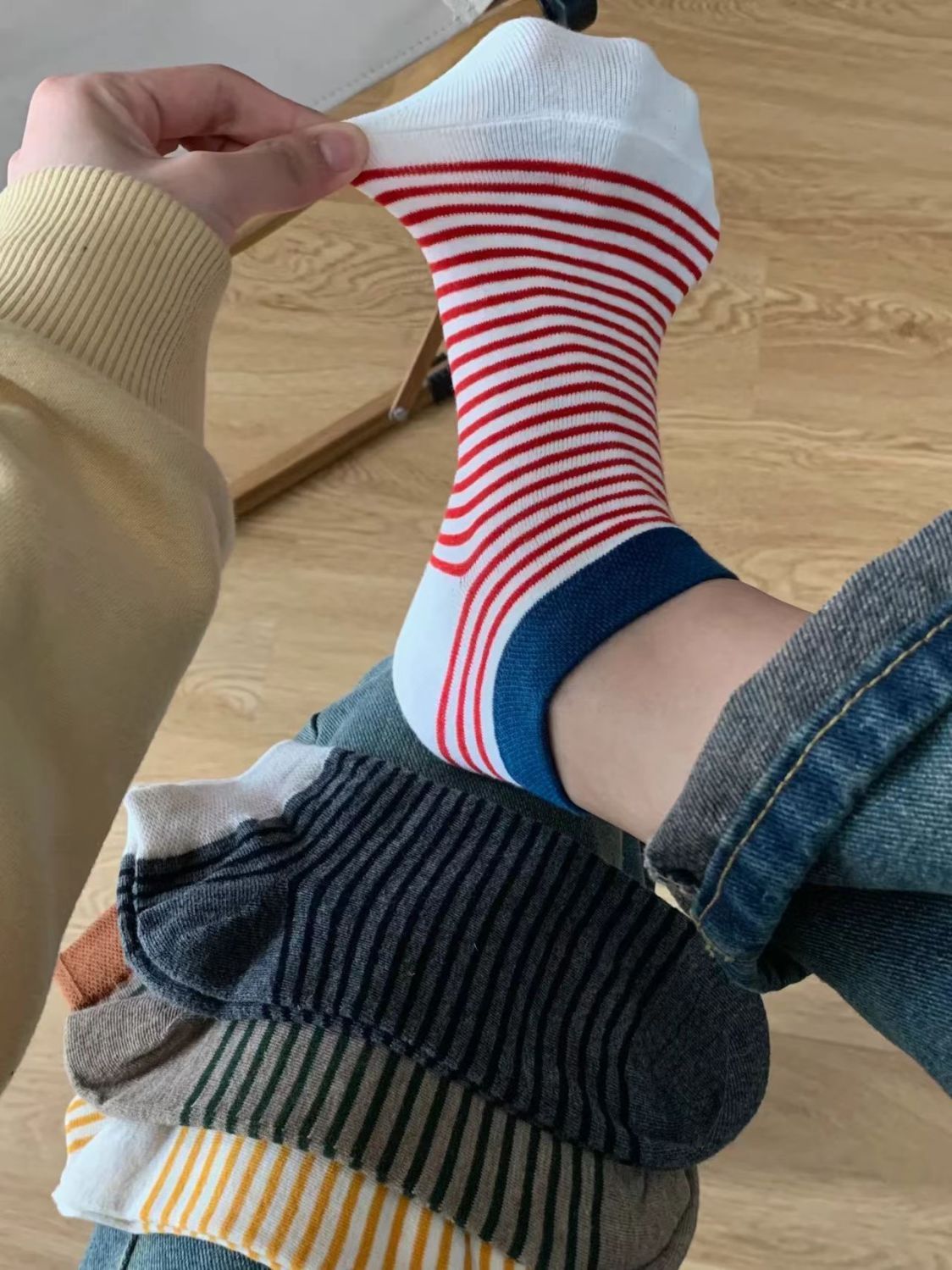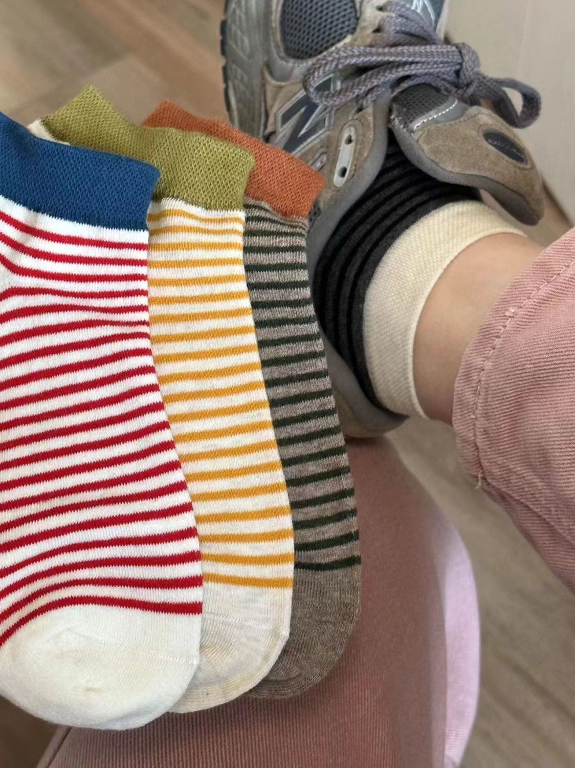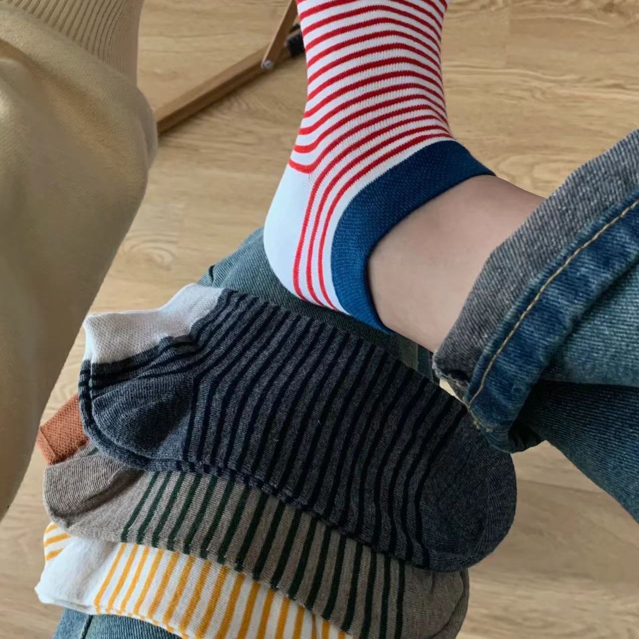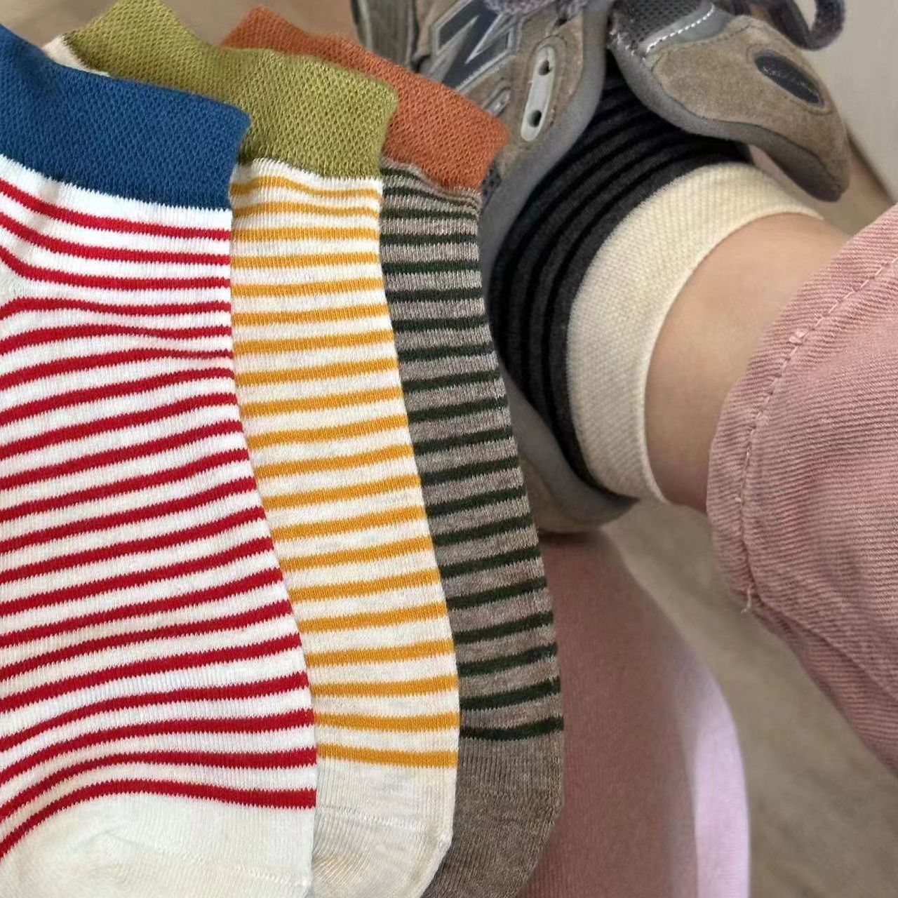 条纹袜子女短袜春夏薄款ins潮不掉跟百搭新款浅口袜学生韩系女袜