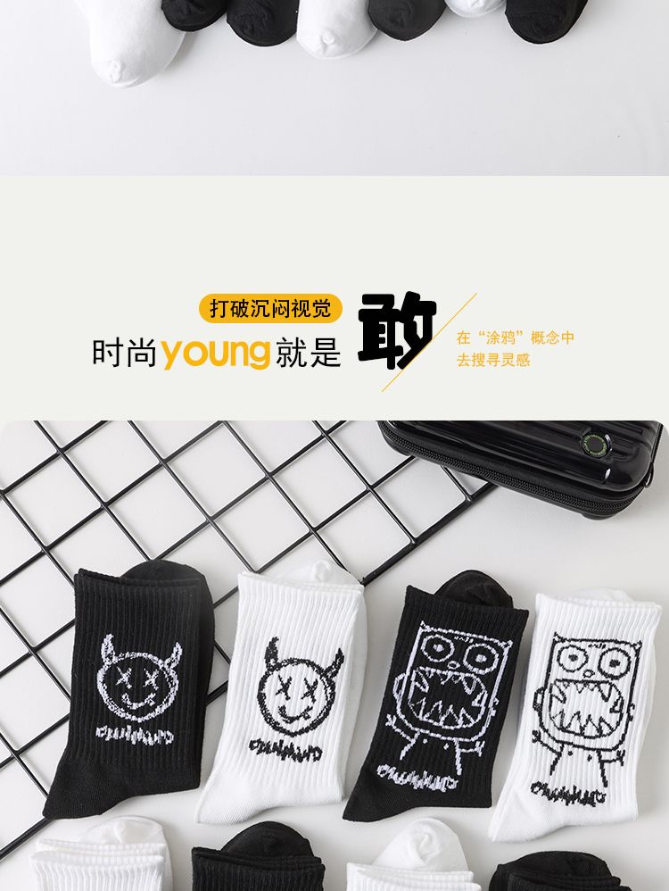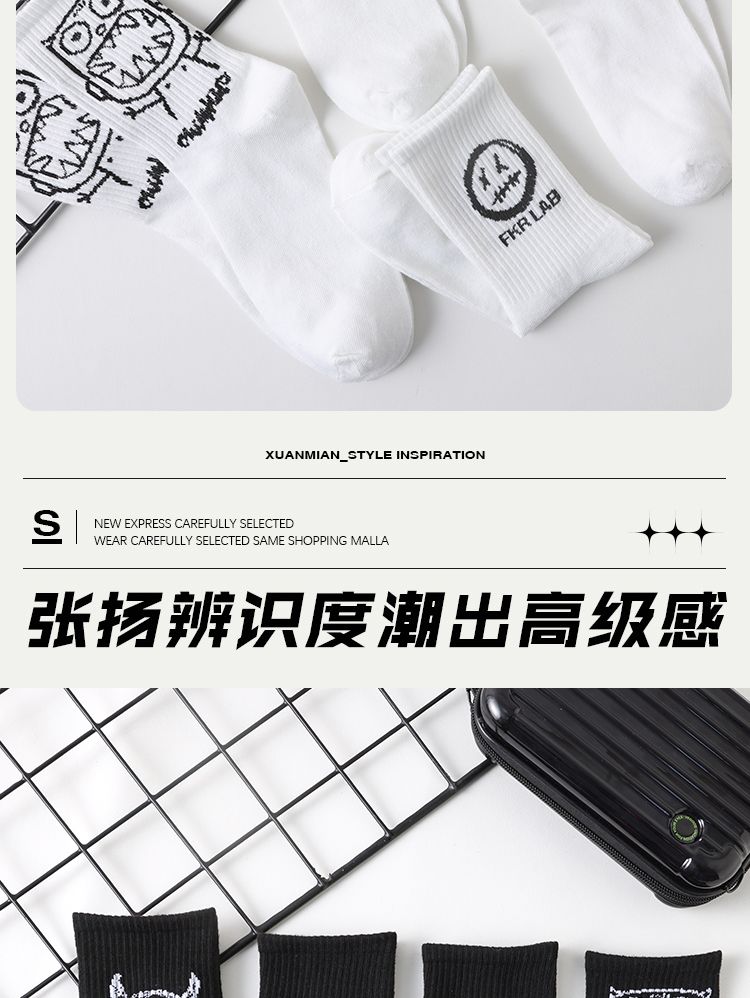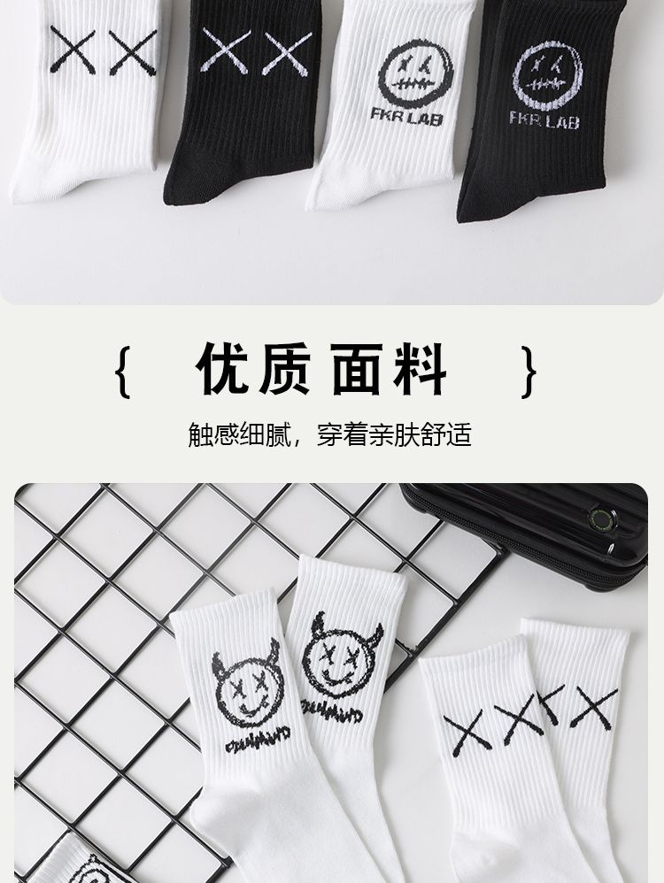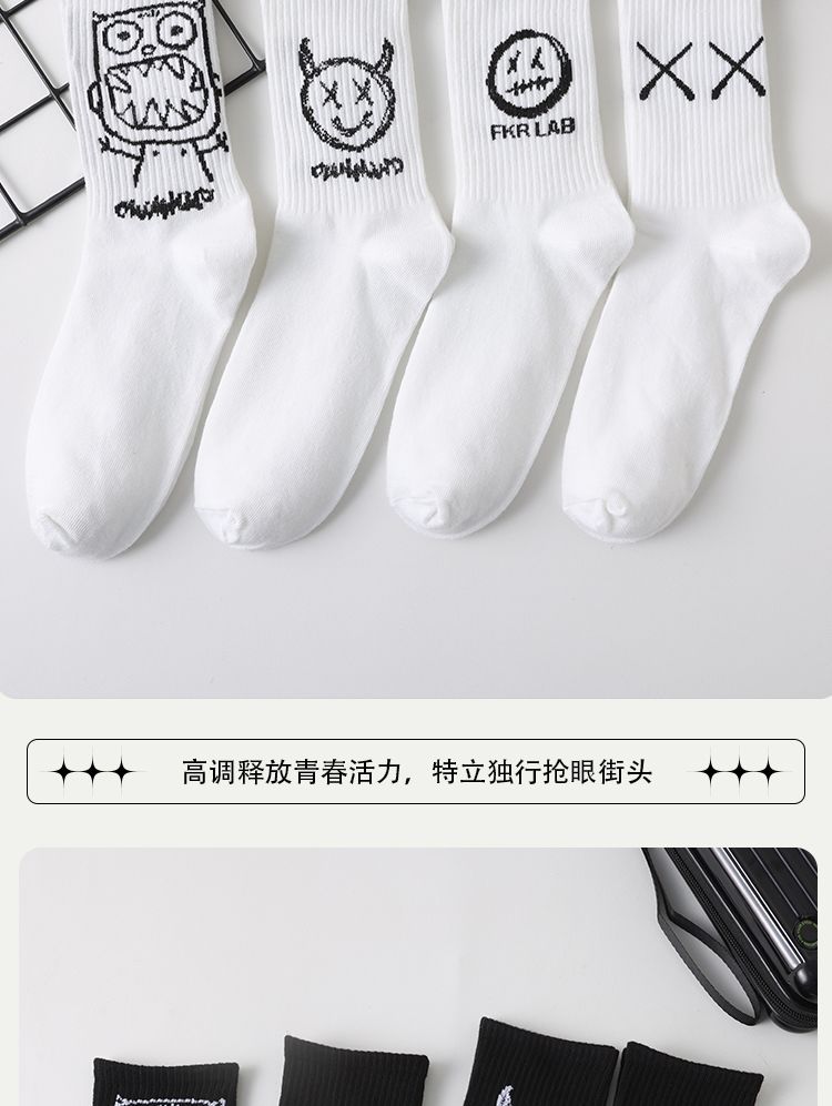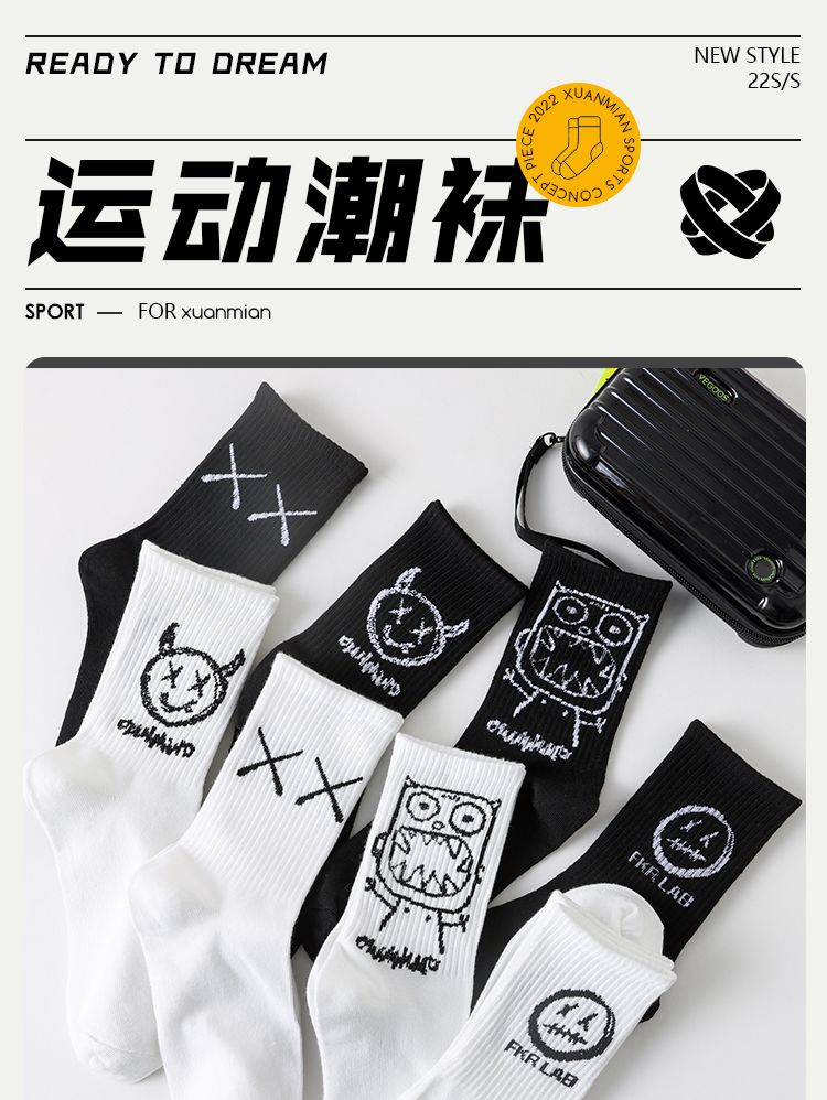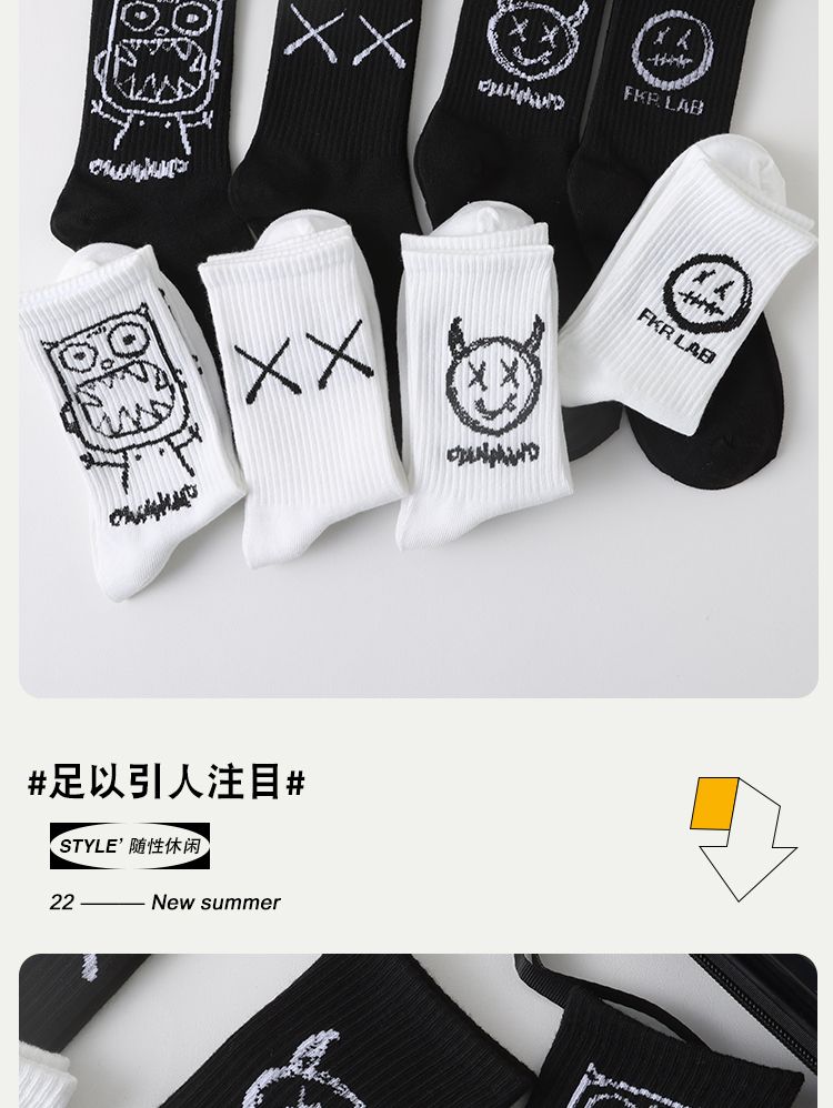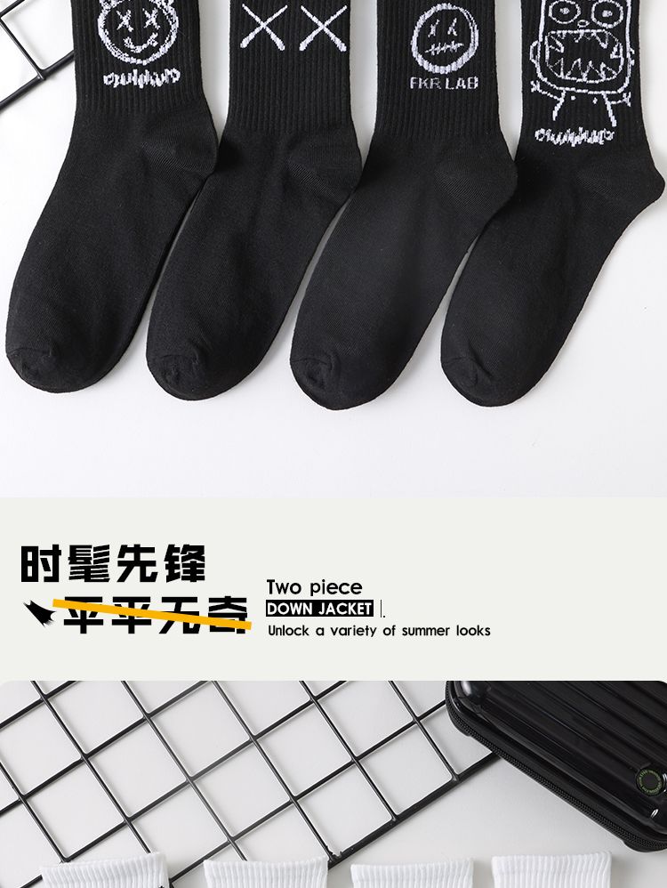 袜子男款夏季中筒防臭透气黑白袜ins卡通棉嘻哈搞怪ins风情侣袜