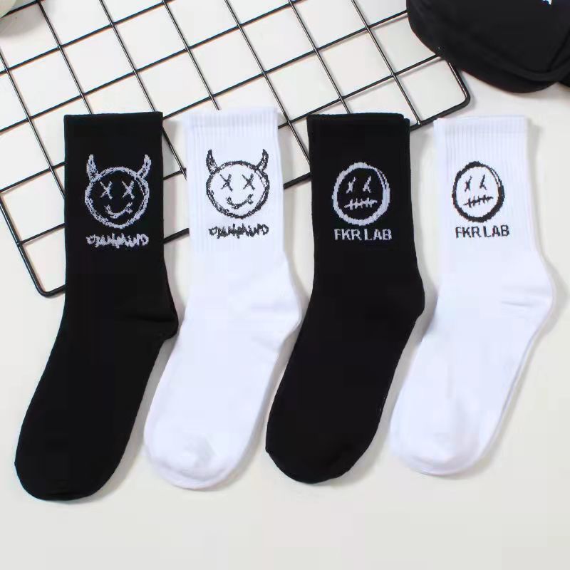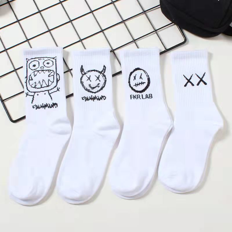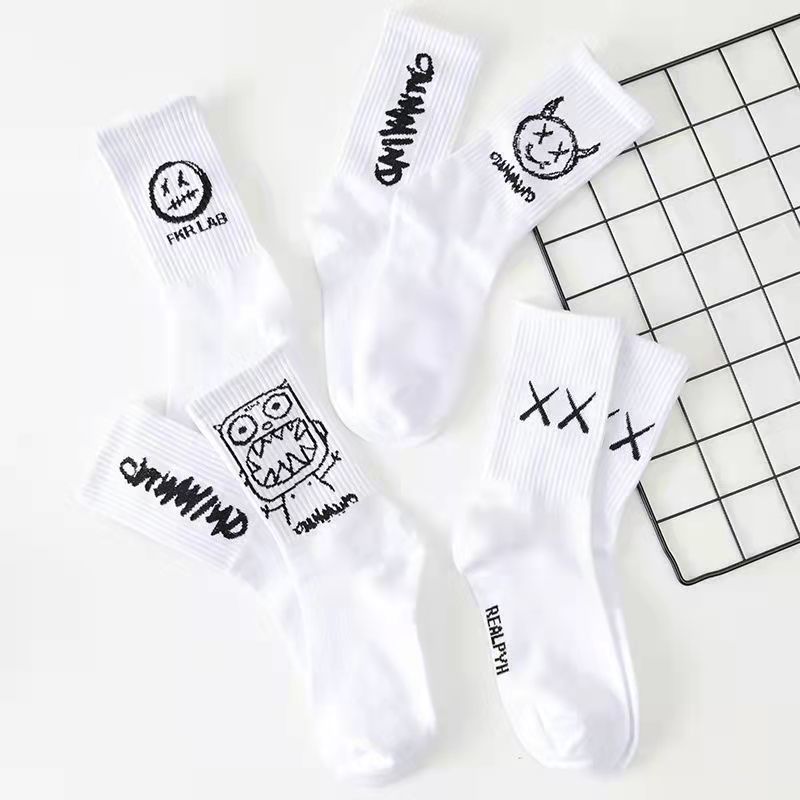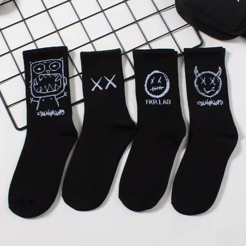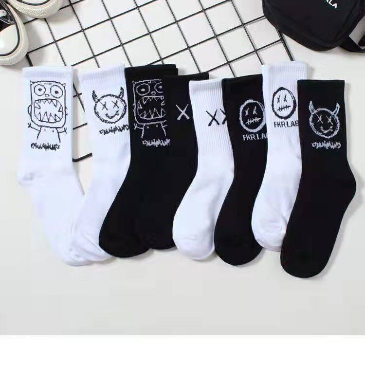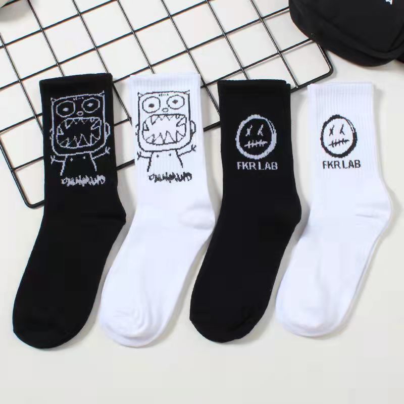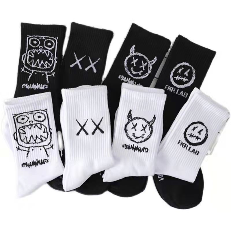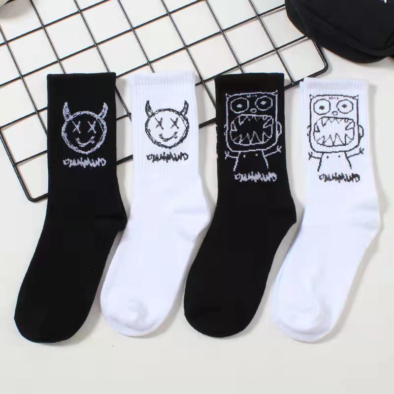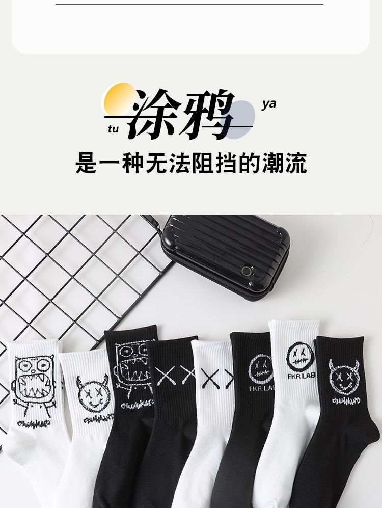 袜子男款夏季中筒防臭透气黑白袜ins卡通棉嘻哈搞怪ins风情侣袜