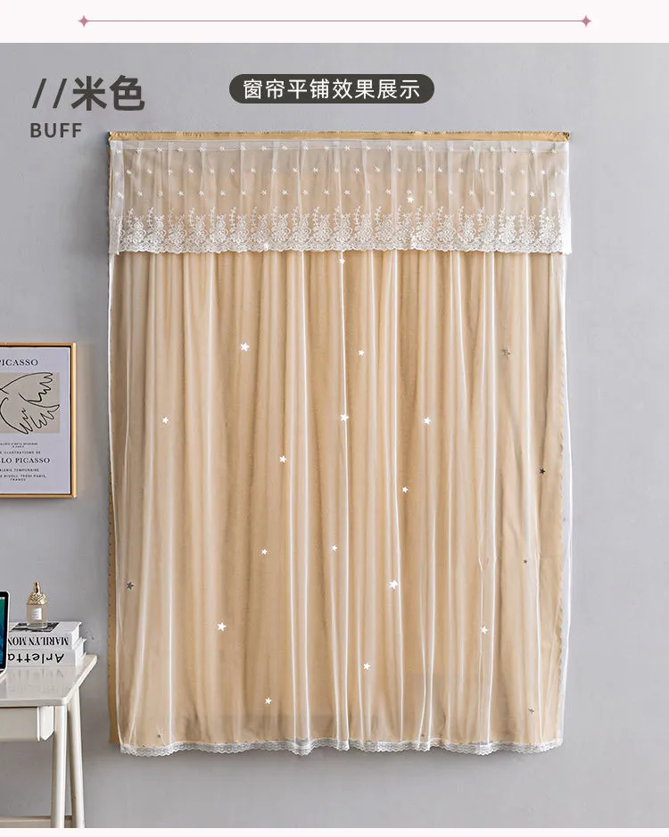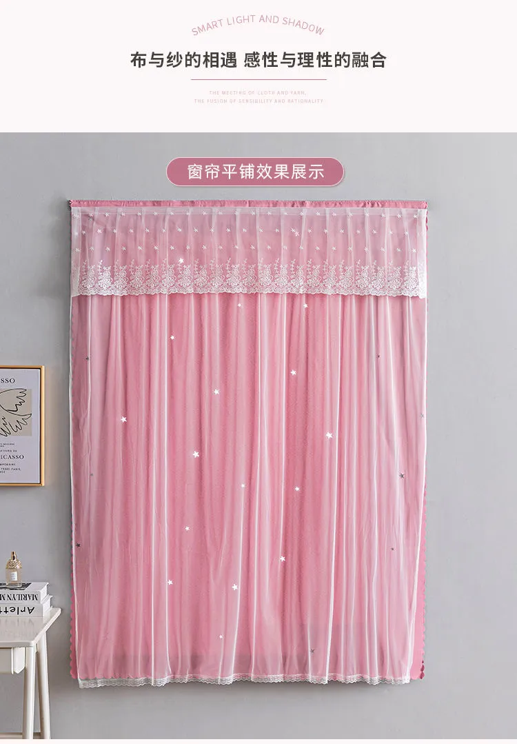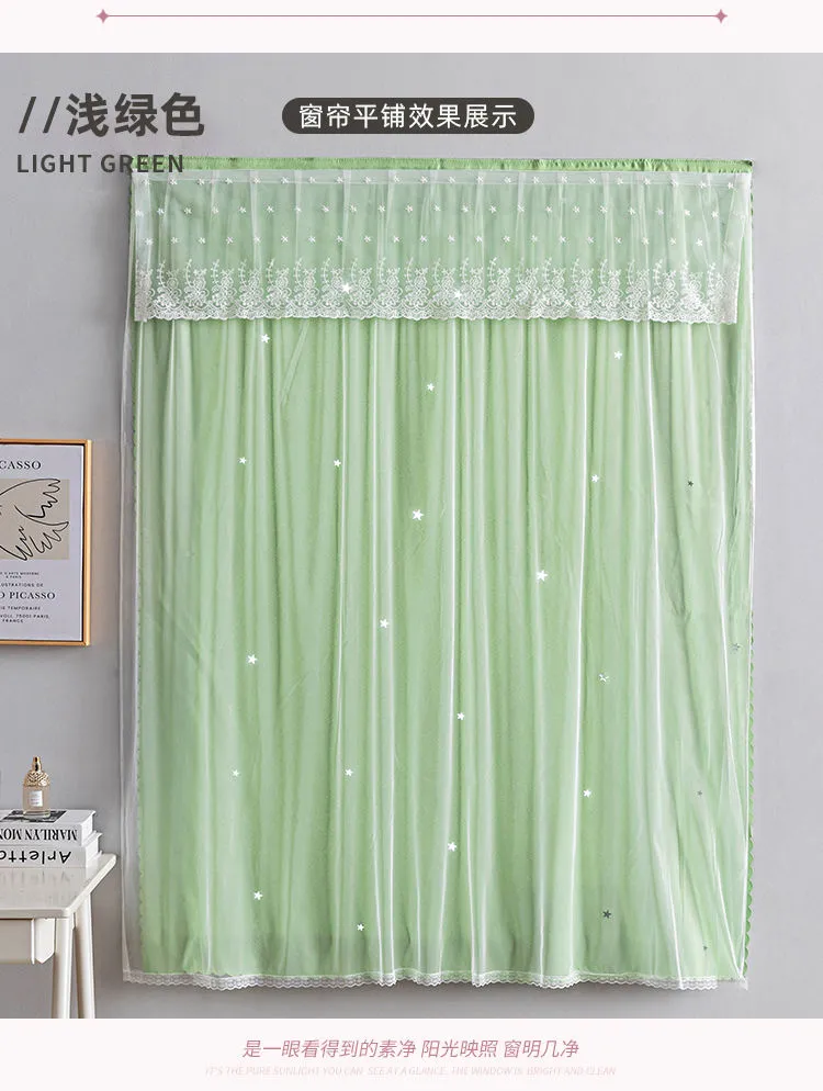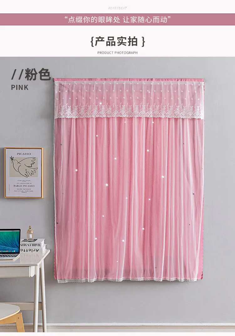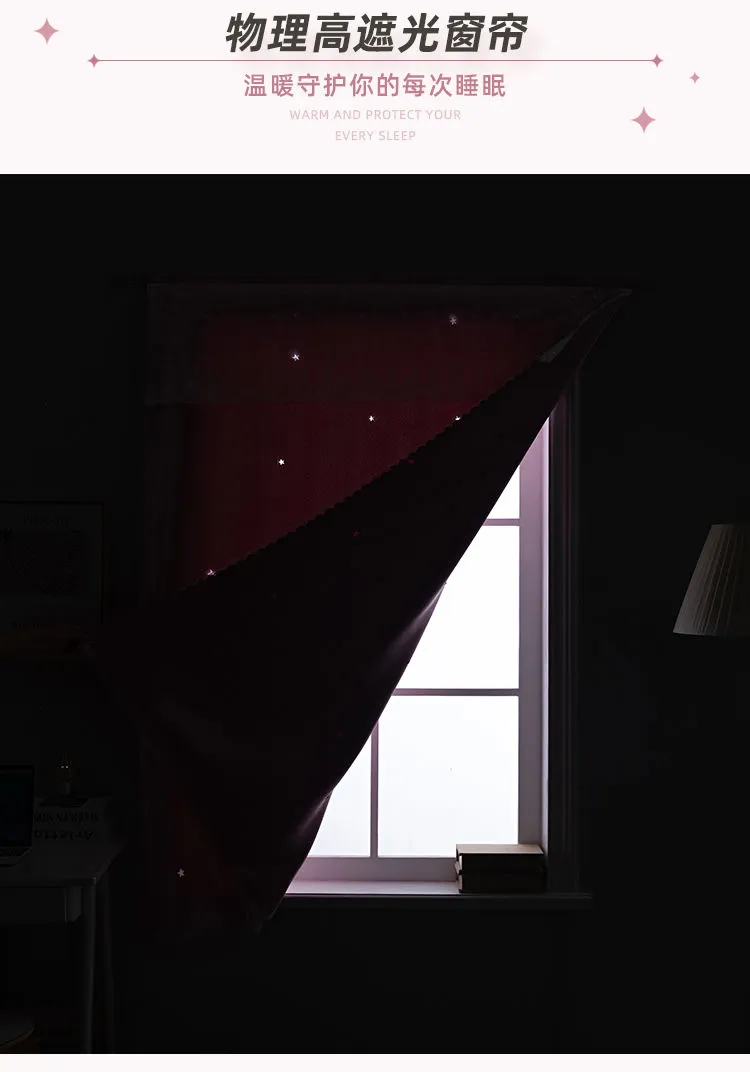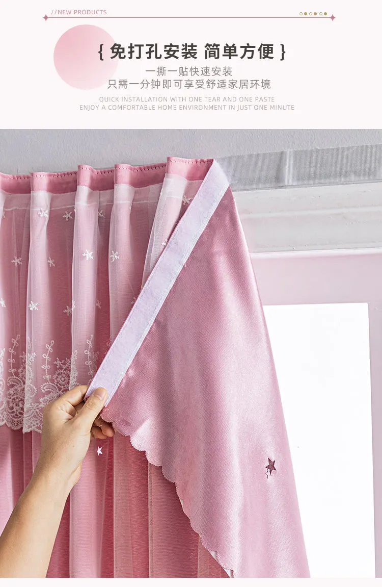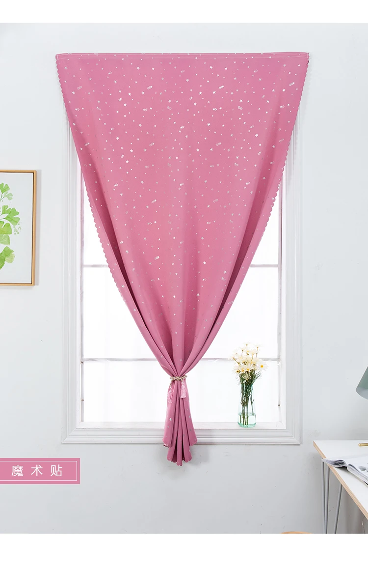 网红款魔术贴窗帘免打孔安装遮光卧室少女小飘窗自粘简易粘贴式布