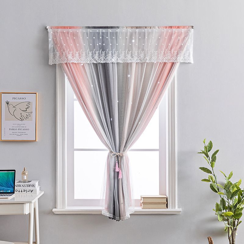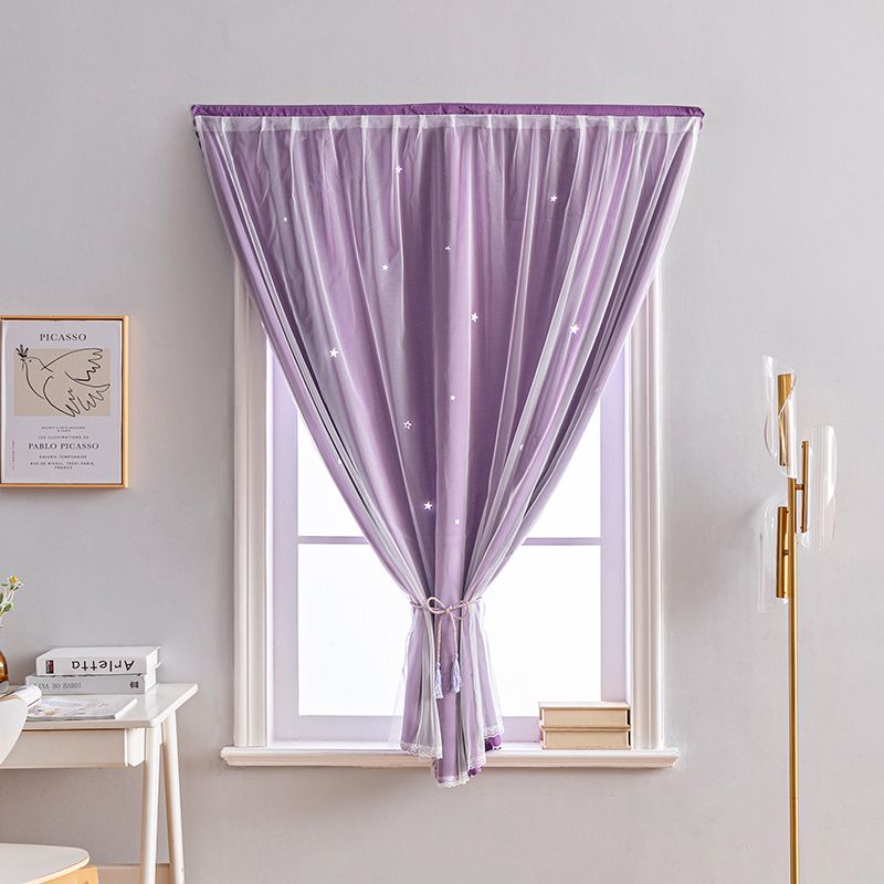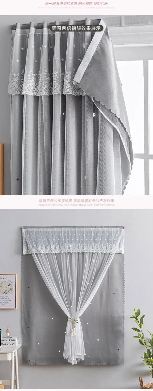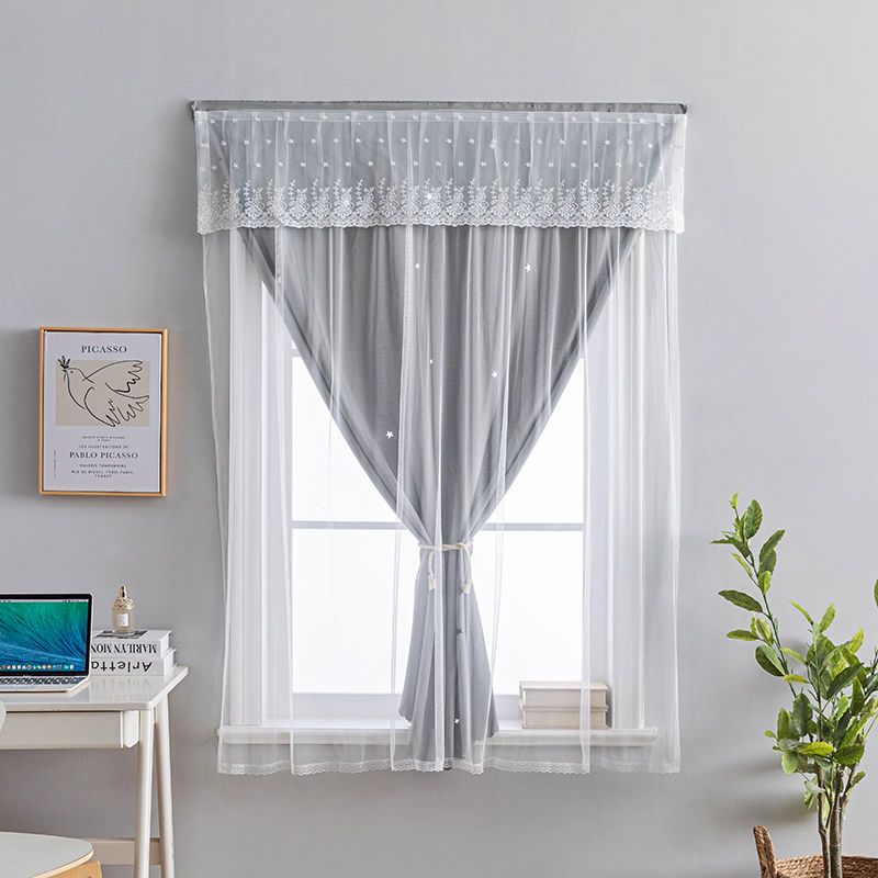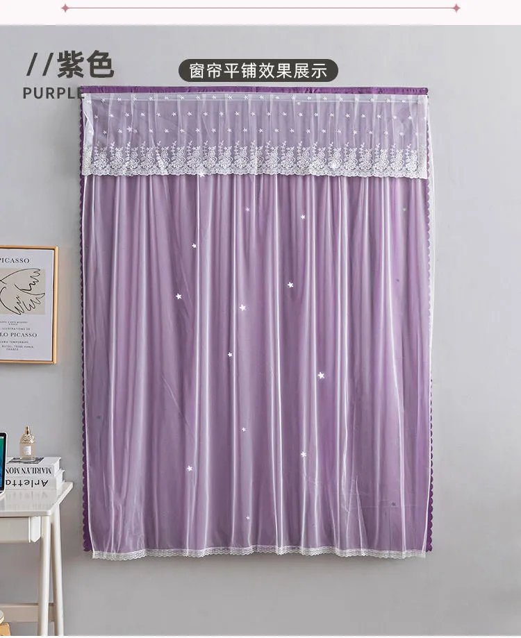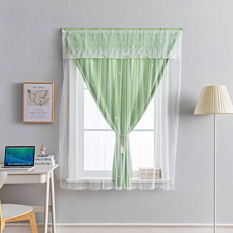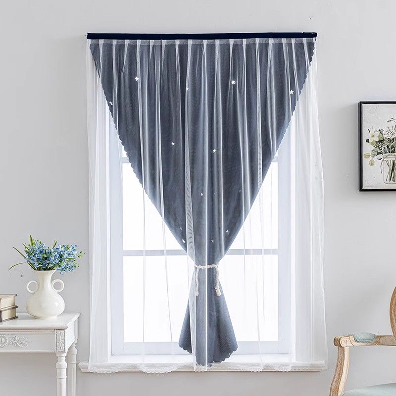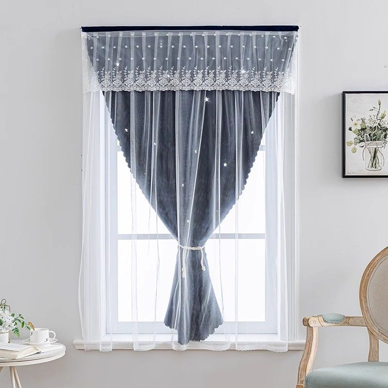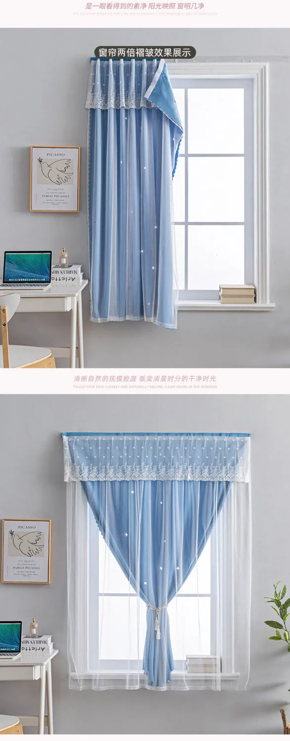 网红款魔术贴窗帘免打孔安装遮光卧室少女小飘窗自粘简易粘贴式布