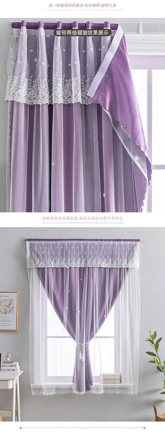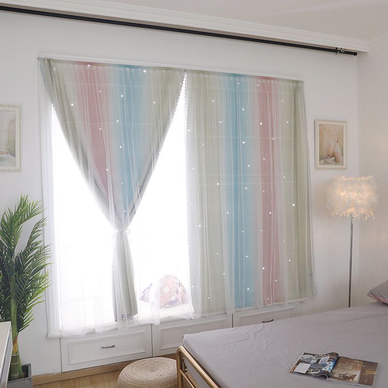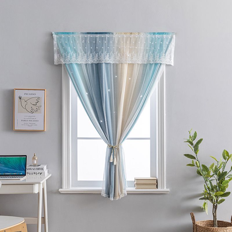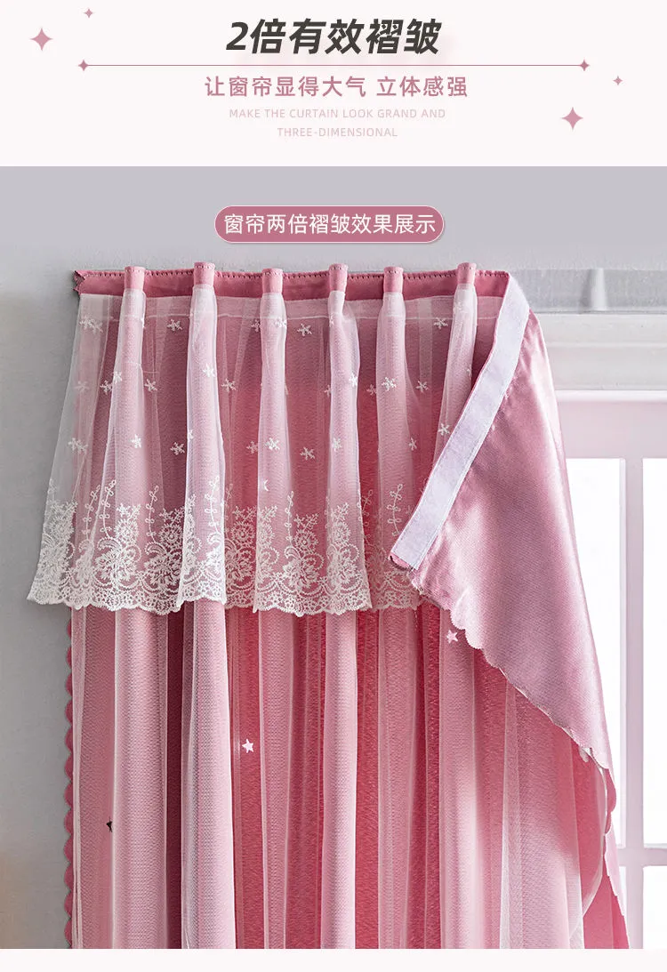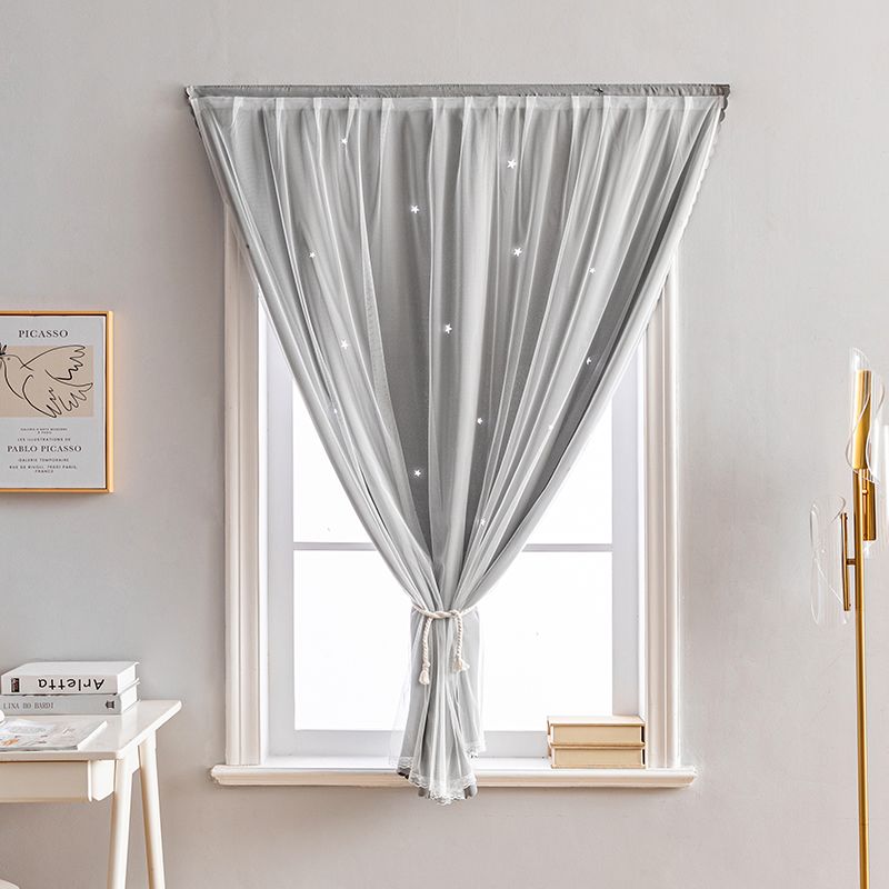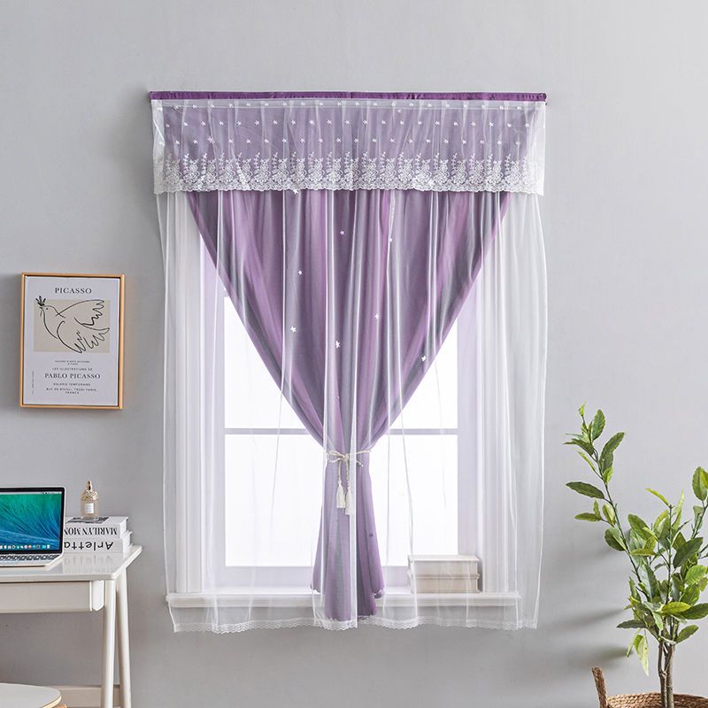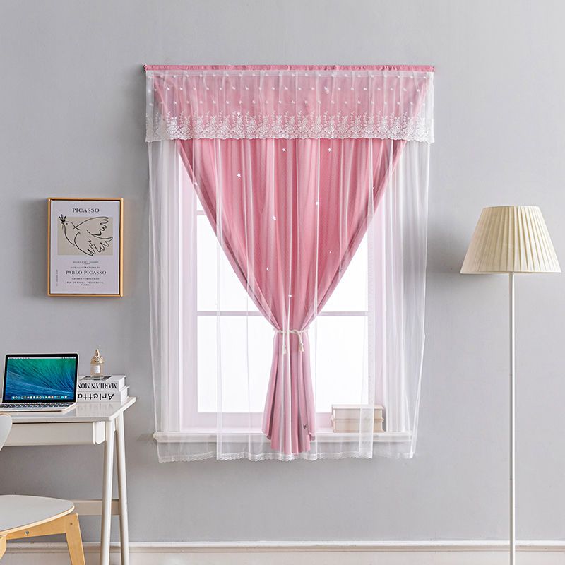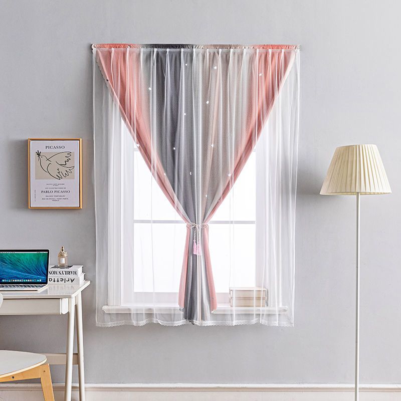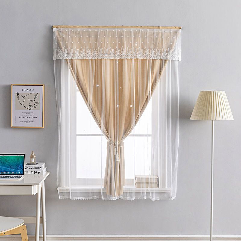 网红款魔术贴窗帘免打孔安装遮光卧室少女小飘窗自粘简易粘贴式布