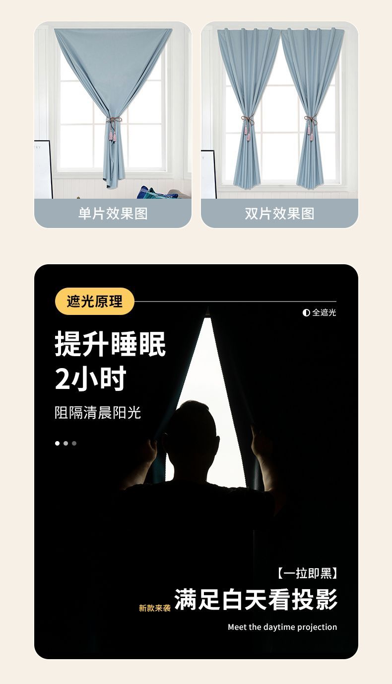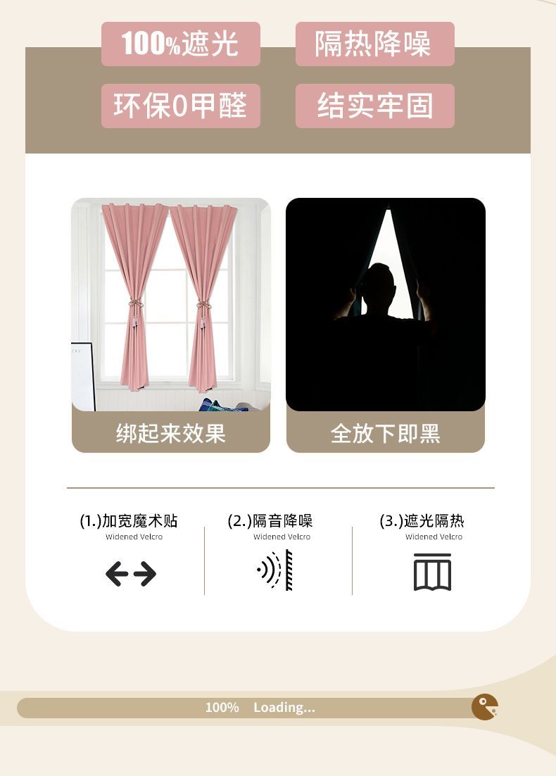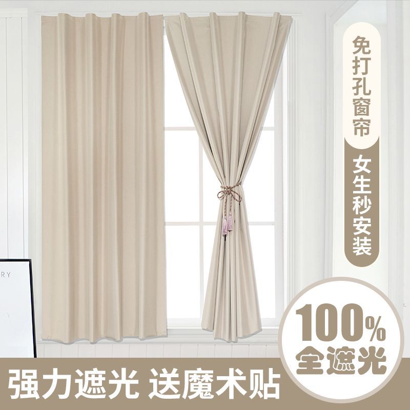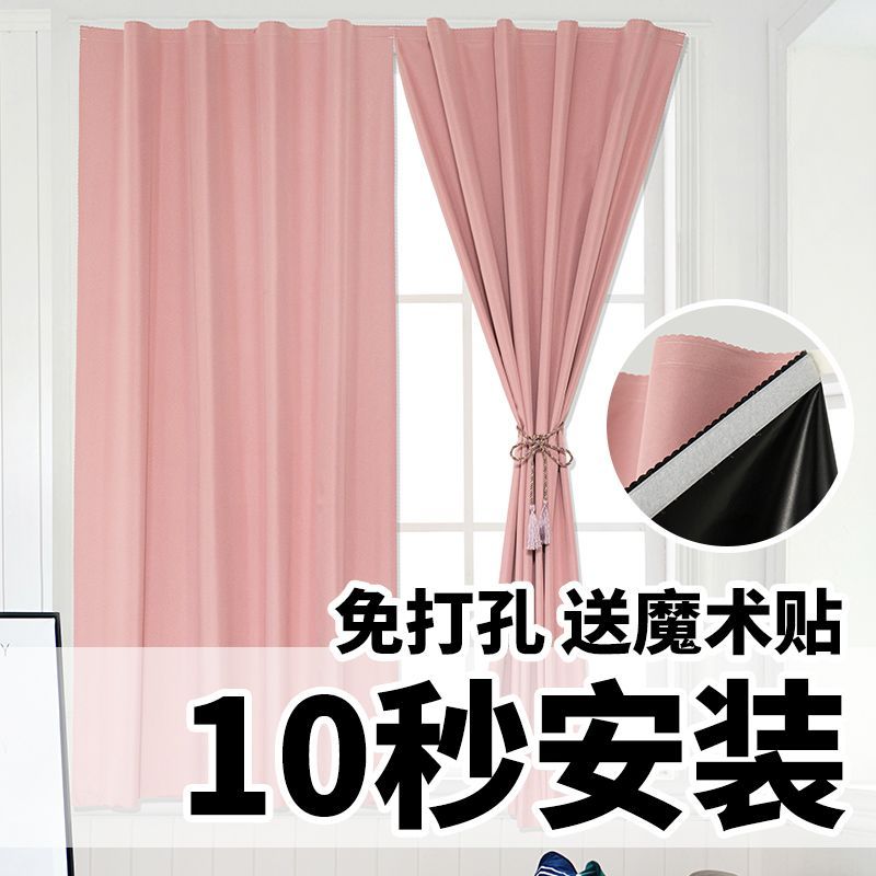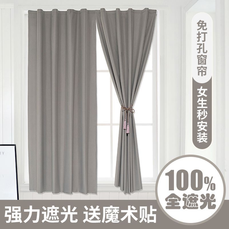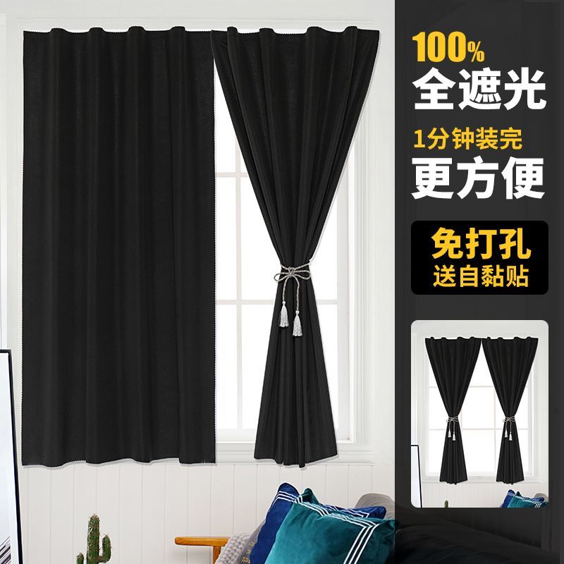 新款免打孔窗帘隔热防晒100%全遮光阳台卧室出租房屋飘窗遮光帘