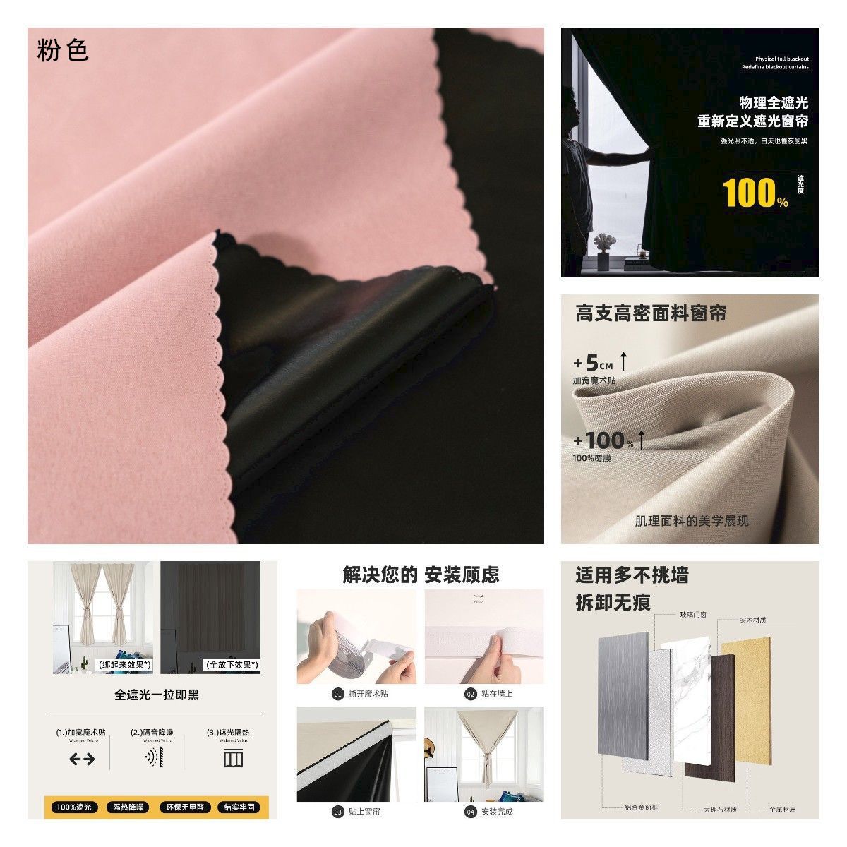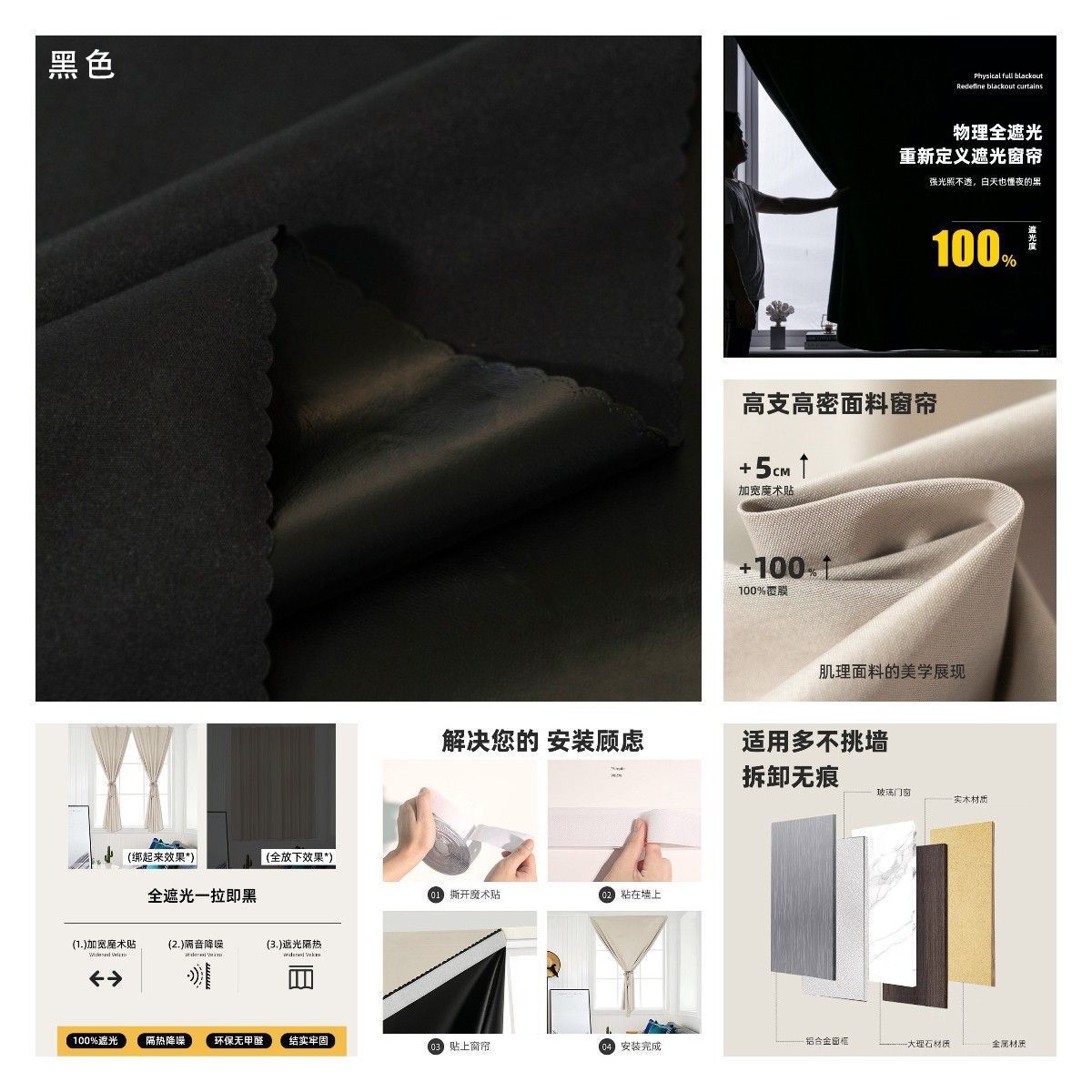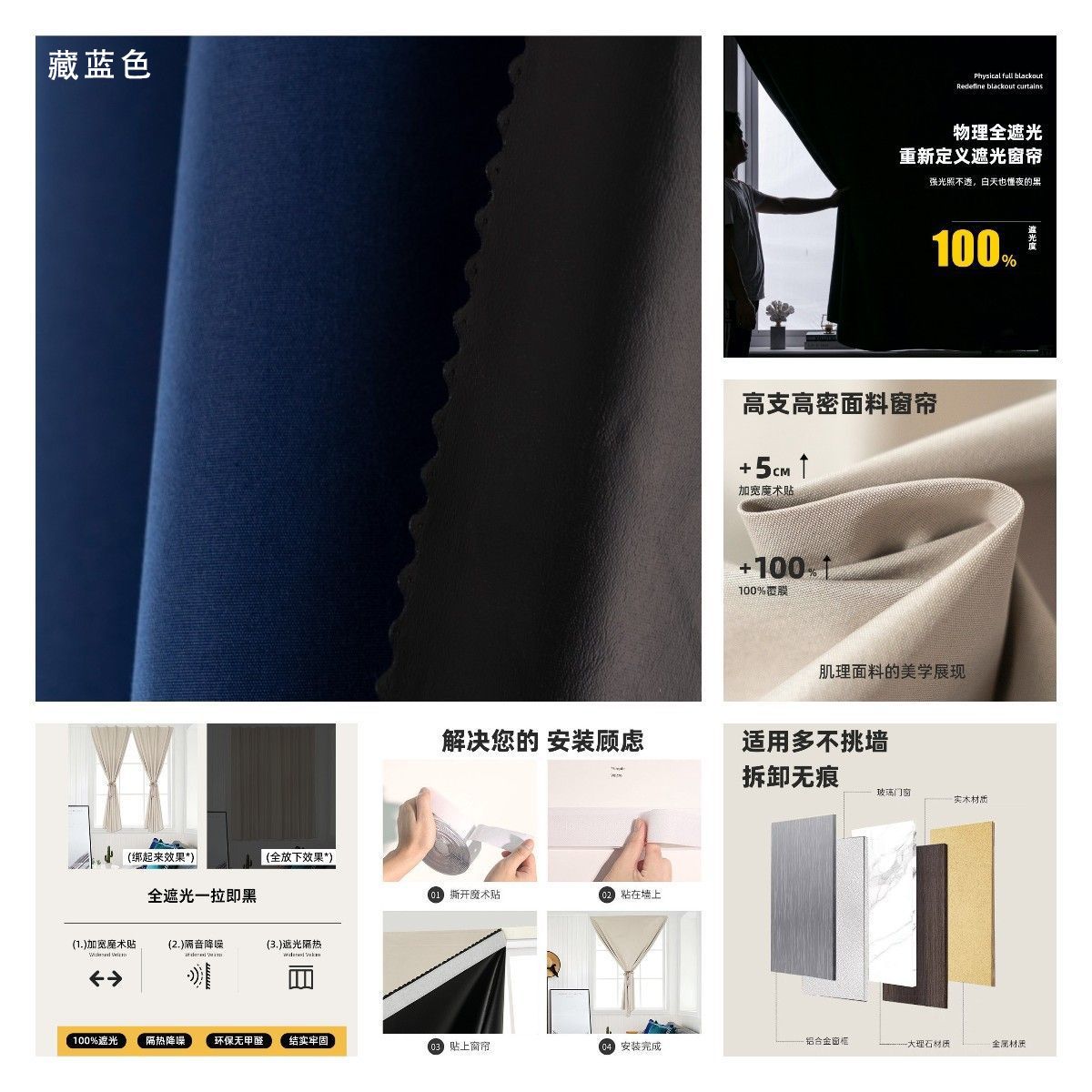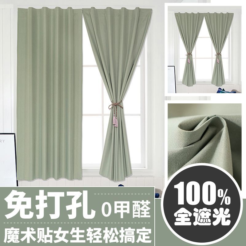 新款免打孔窗帘隔热防晒100%全遮光阳台卧室出租房屋飘窗遮光帘