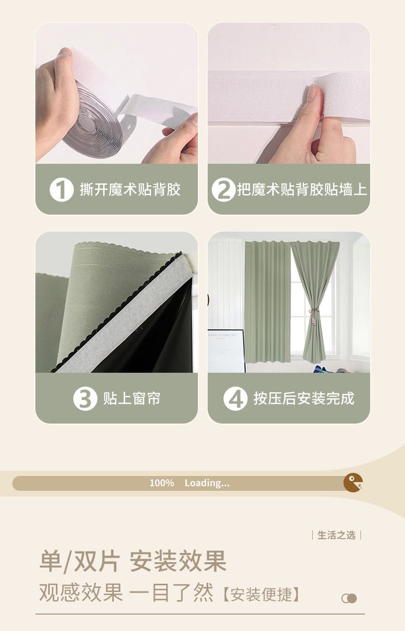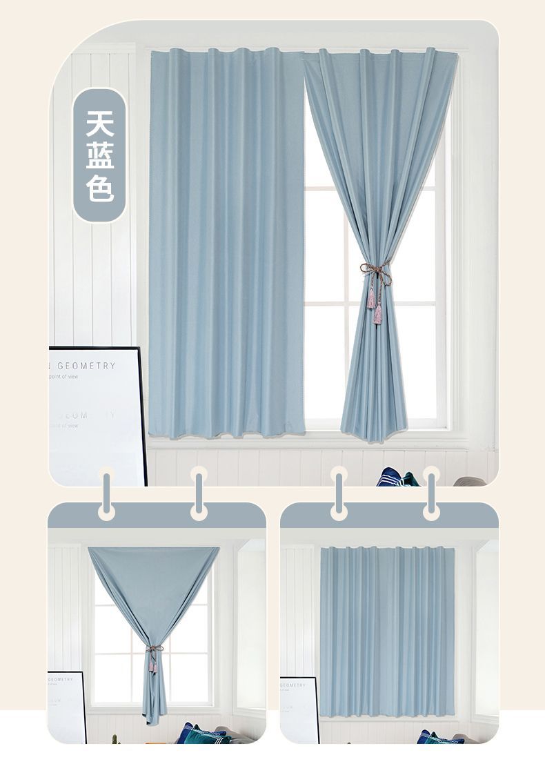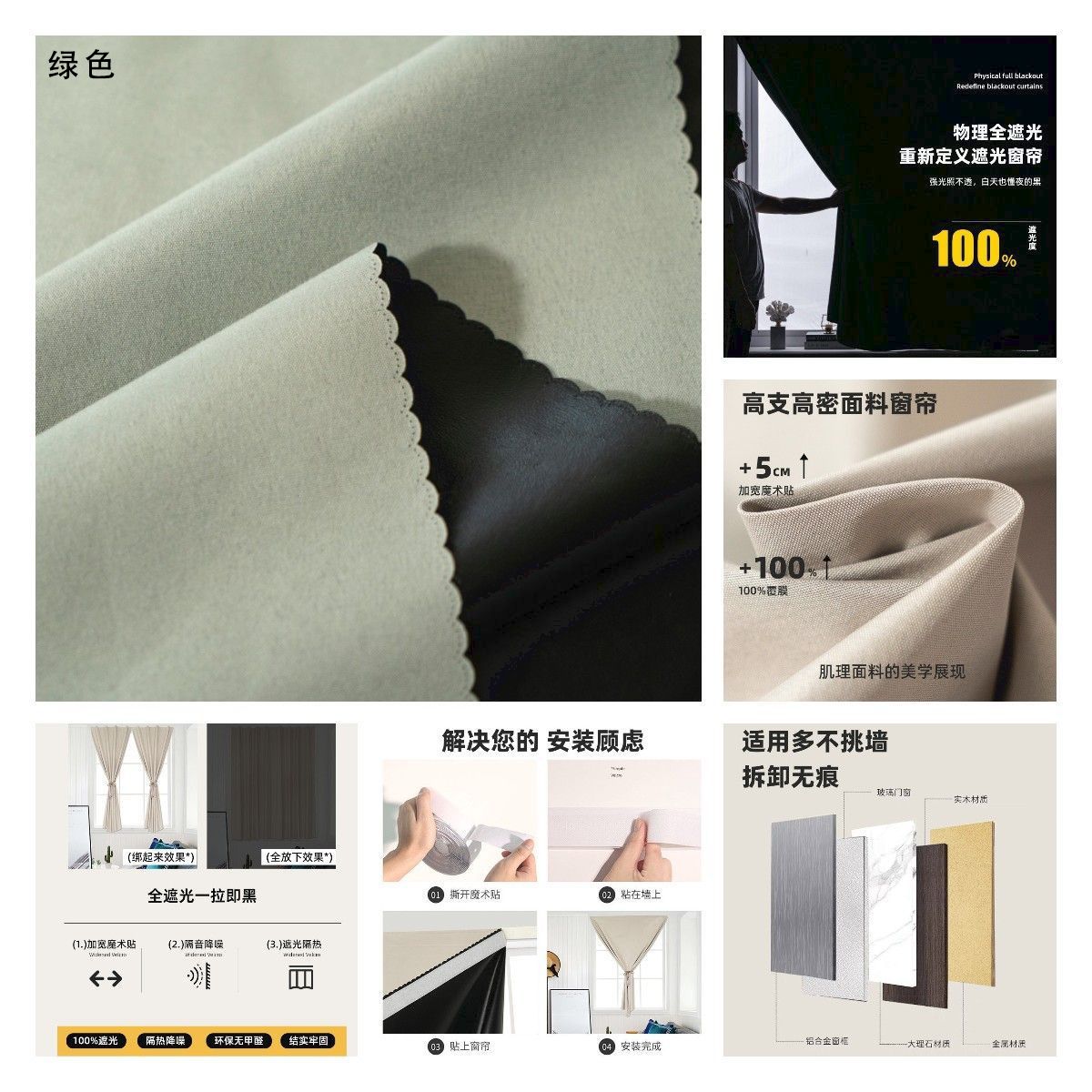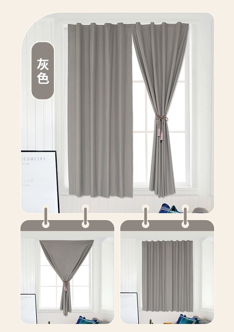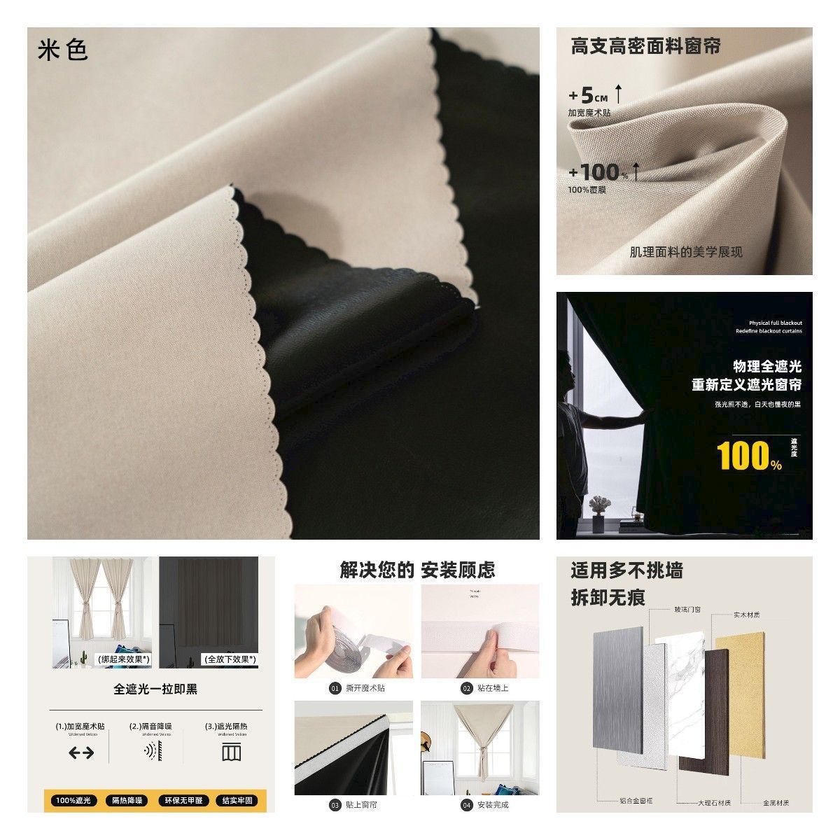 新款免打孔窗帘隔热防晒100%全遮光阳台卧室出租房屋飘窗遮光帘