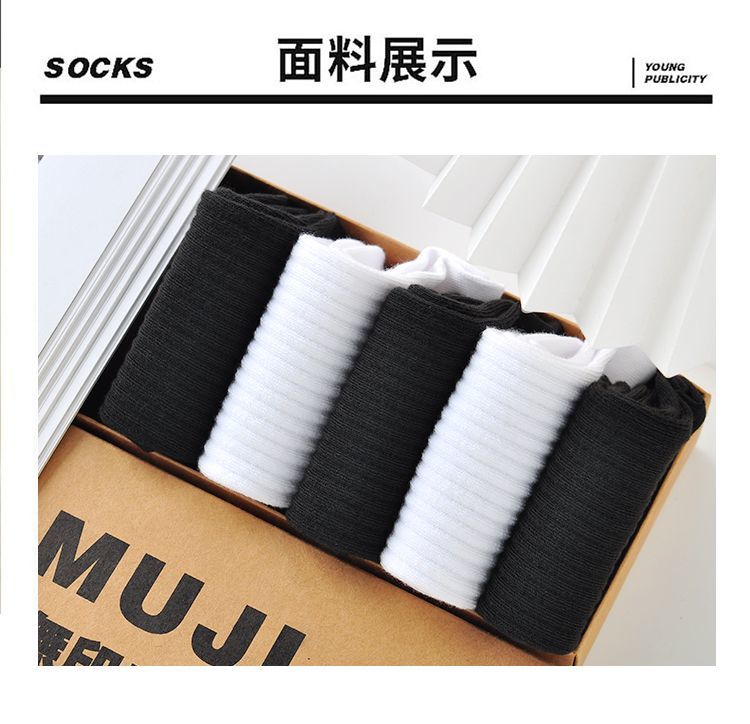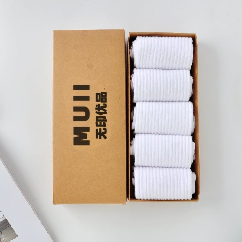 MU良品纯棉袜子五双礼盒装长筒纯白防臭学生百搭中筒吸汗运动袜
