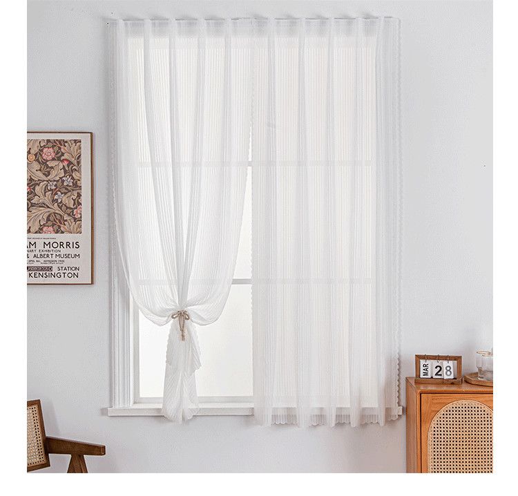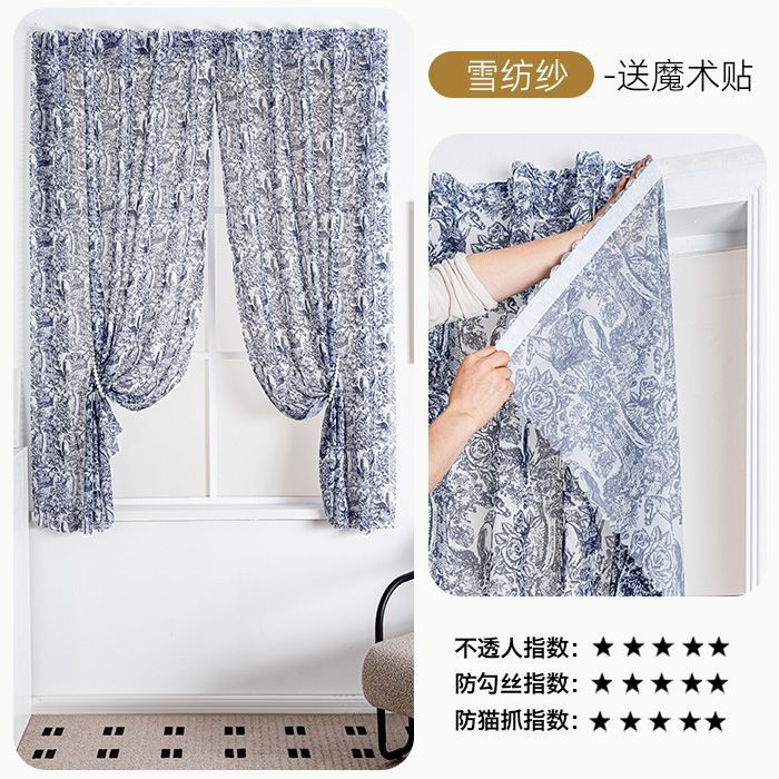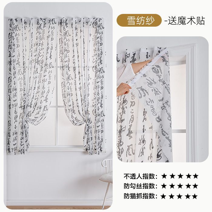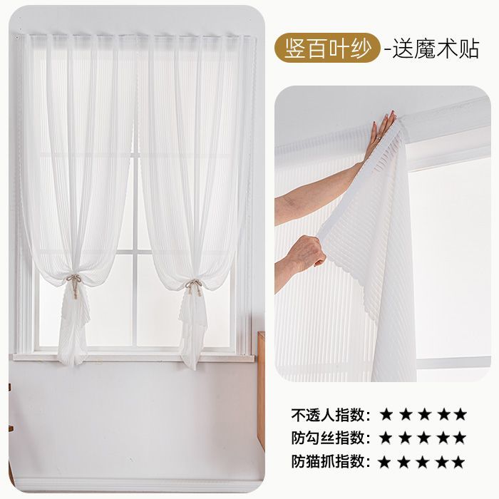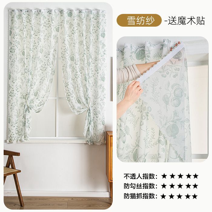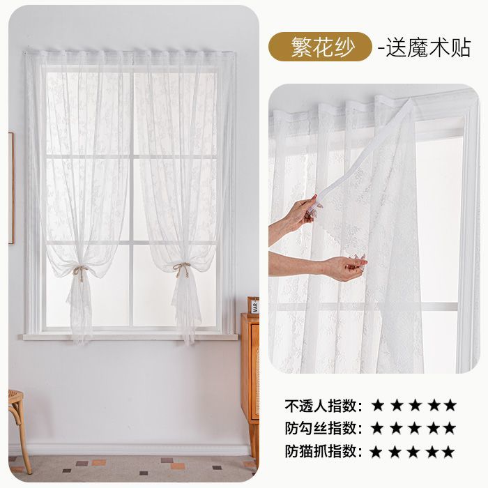 魔术贴窗帘免打孔安装透光不透人白纱卧室阳台客厅自粘贴简易纱帘