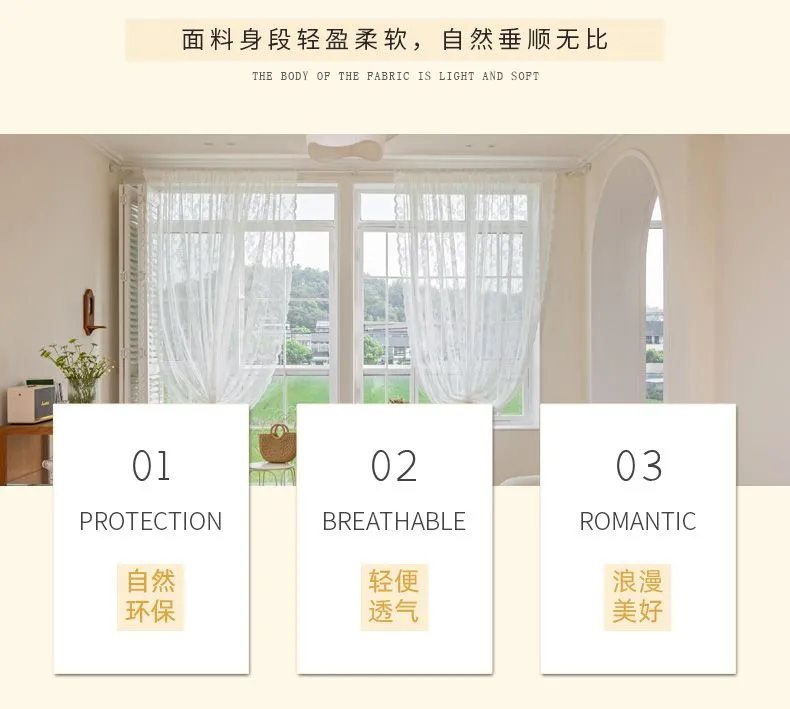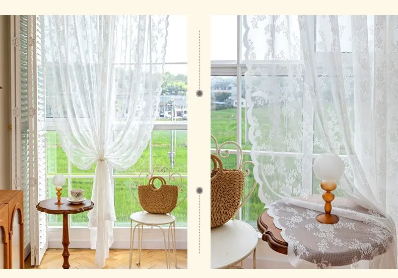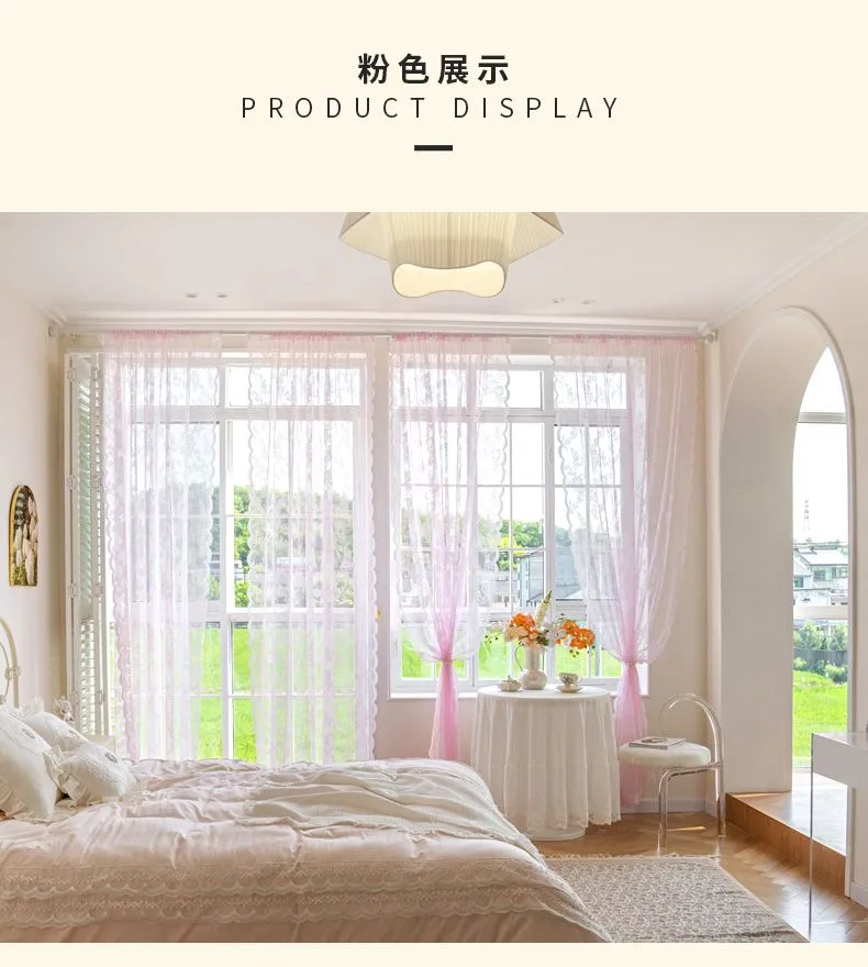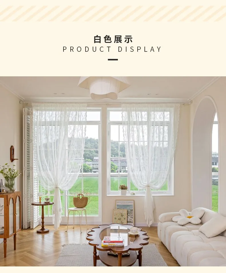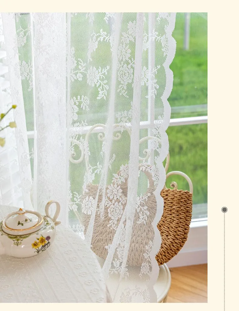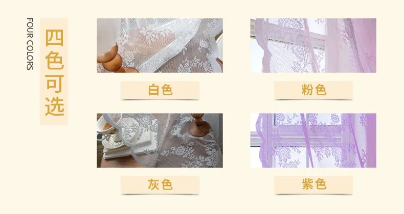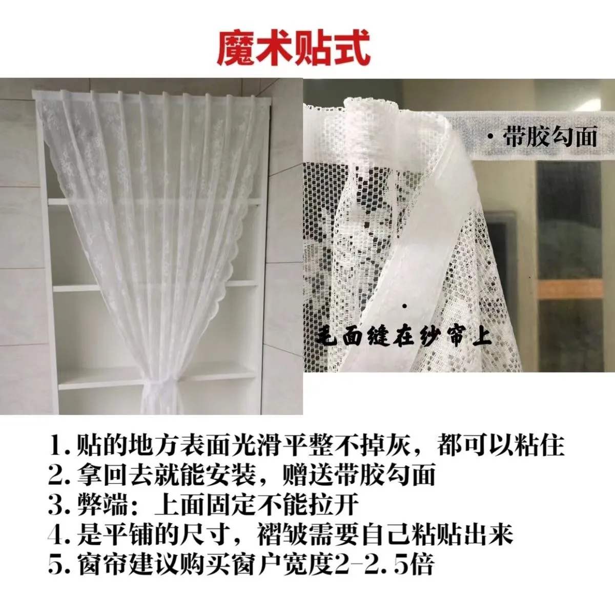 免打孔韩式蕾丝窗帘纱 厨房白色波浪边隔断装饰魔术贴卧室门帘