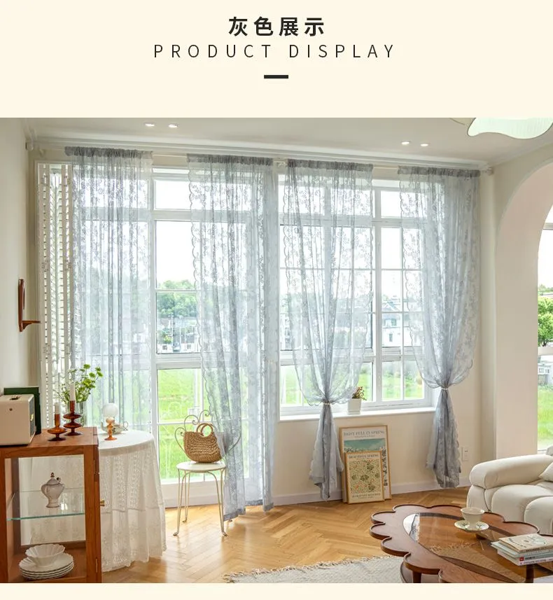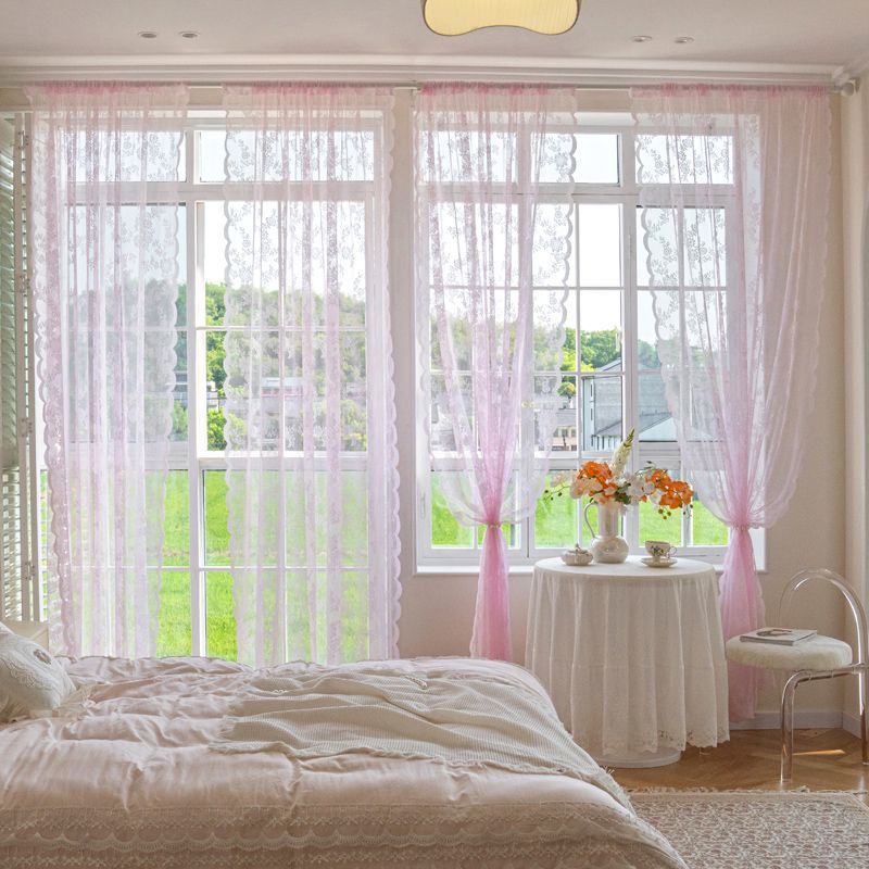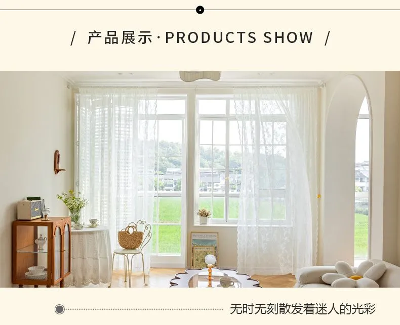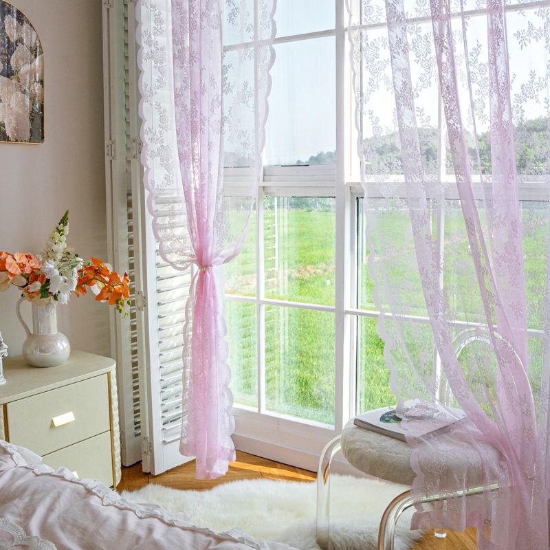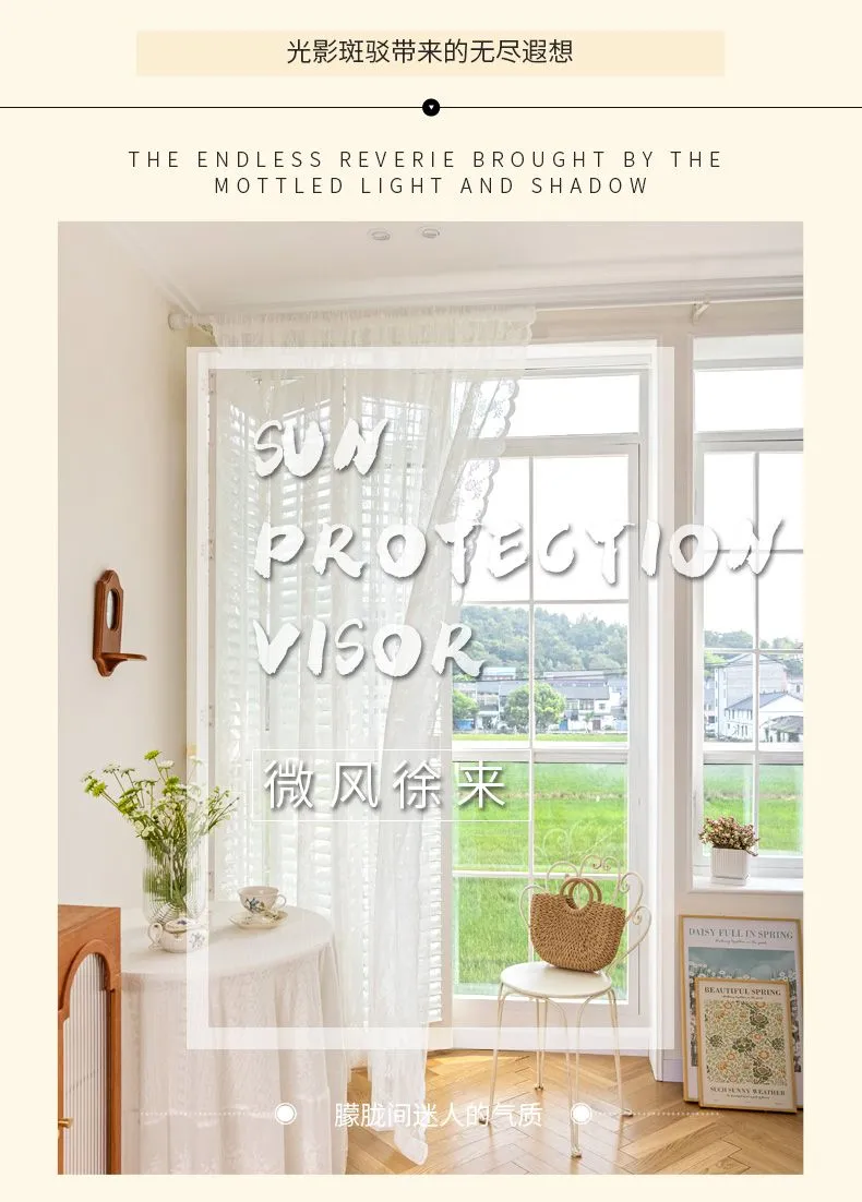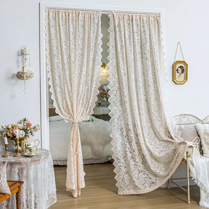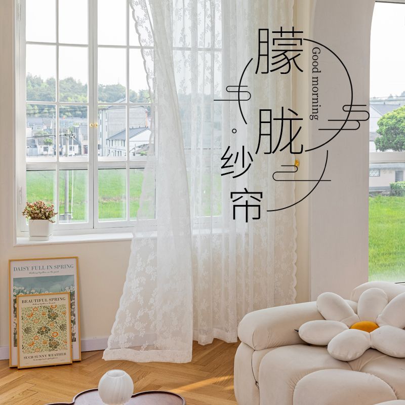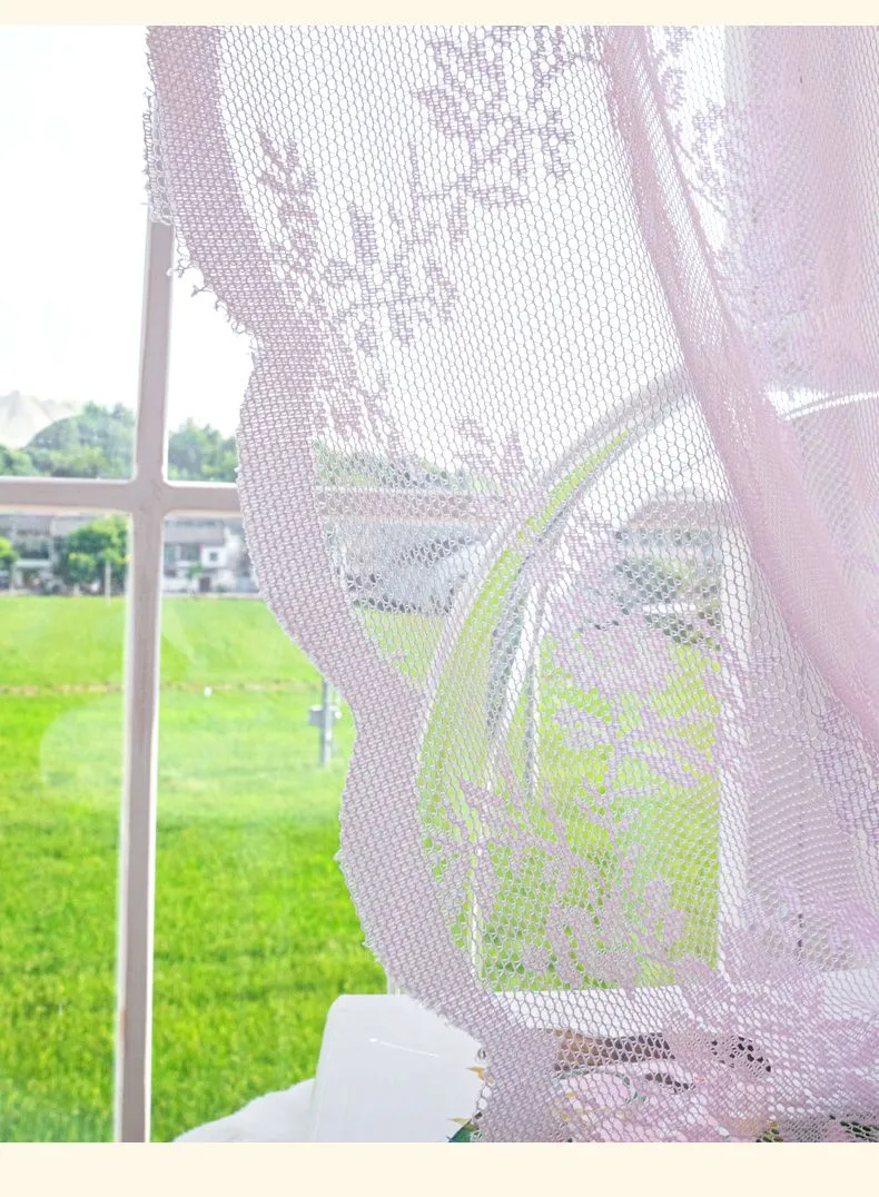 免打孔韩式蕾丝窗帘纱 厨房白色波浪边隔断装饰魔术贴卧室门帘