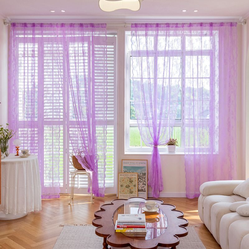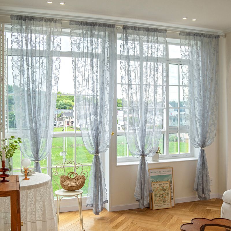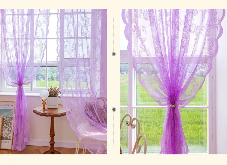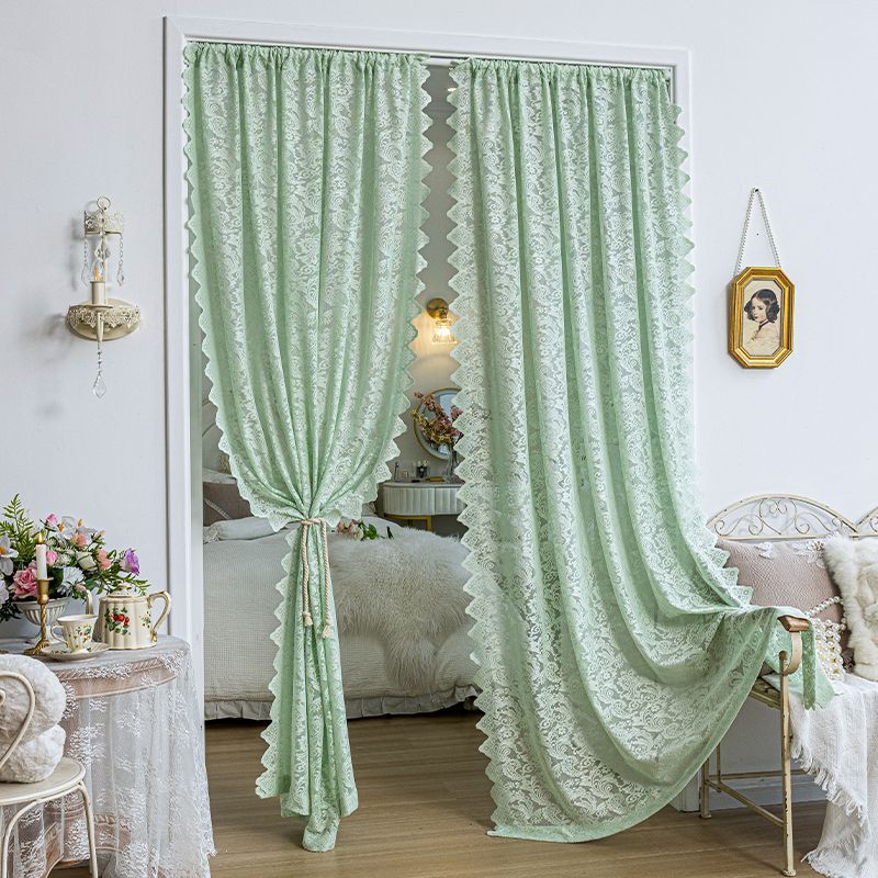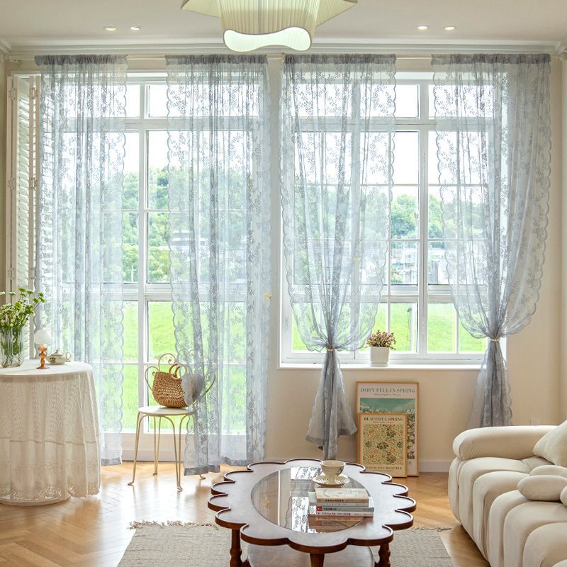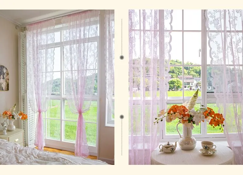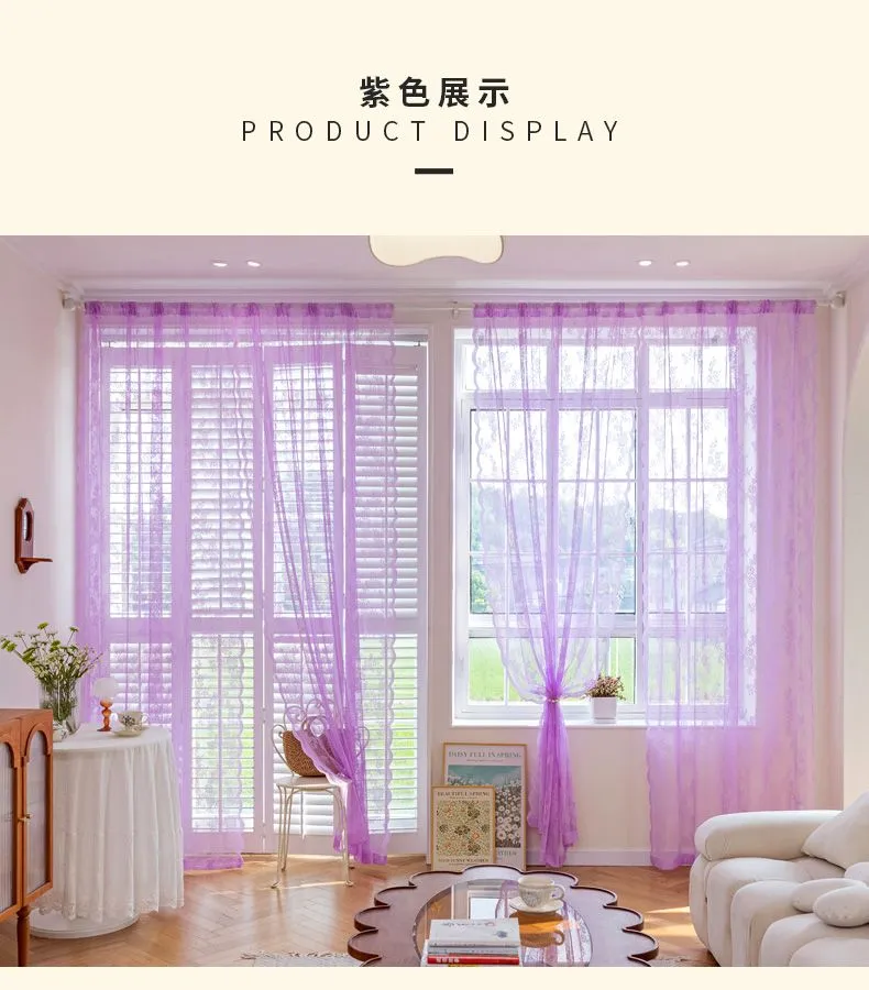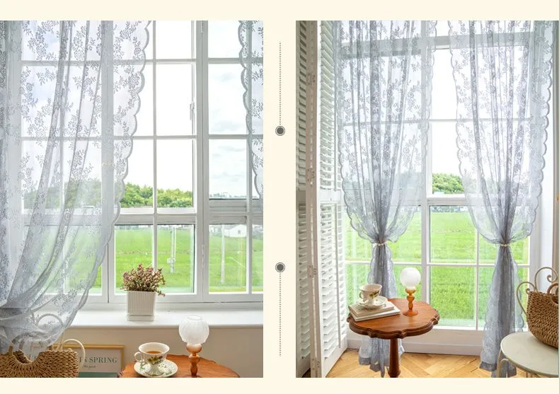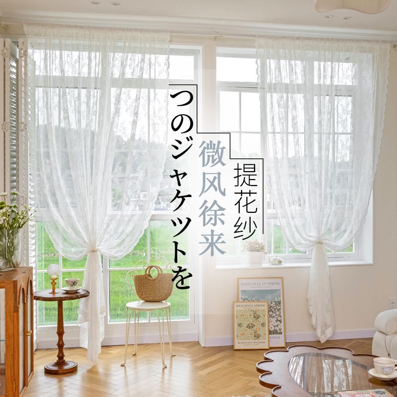 免打孔韩式蕾丝窗帘纱 厨房白色波浪边隔断装饰魔术贴卧室门帘