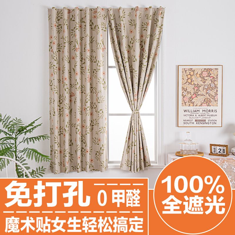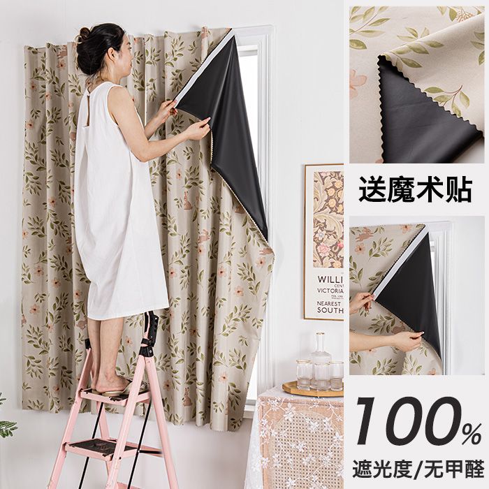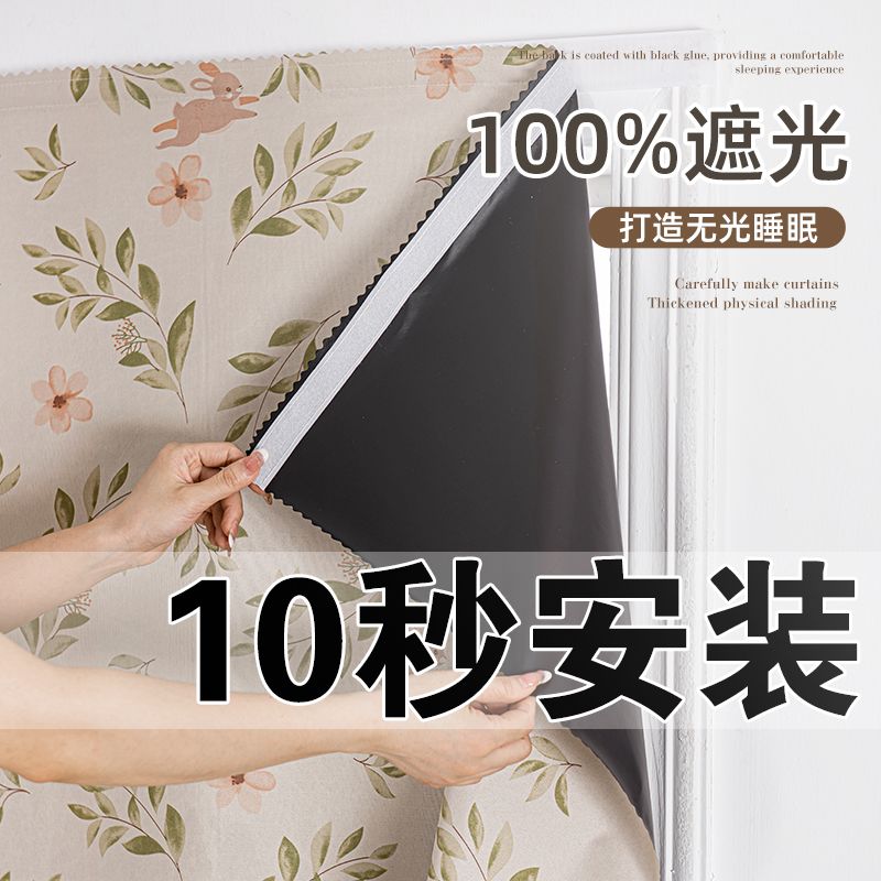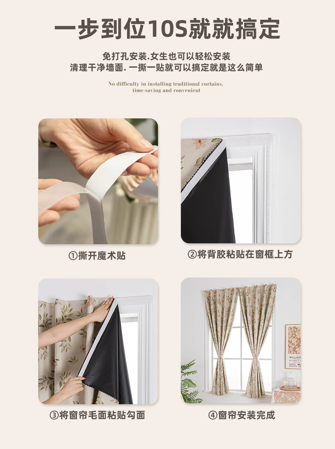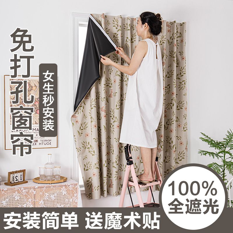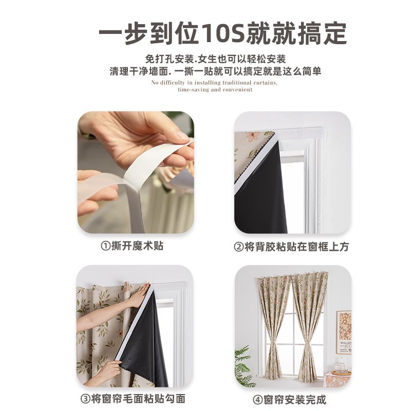 魔术贴窗帘免打孔加厚100%全遮光客厅阳台飘窗出租房自粘式不透光