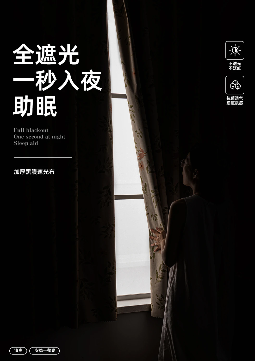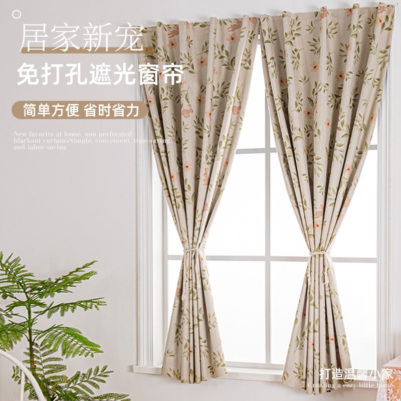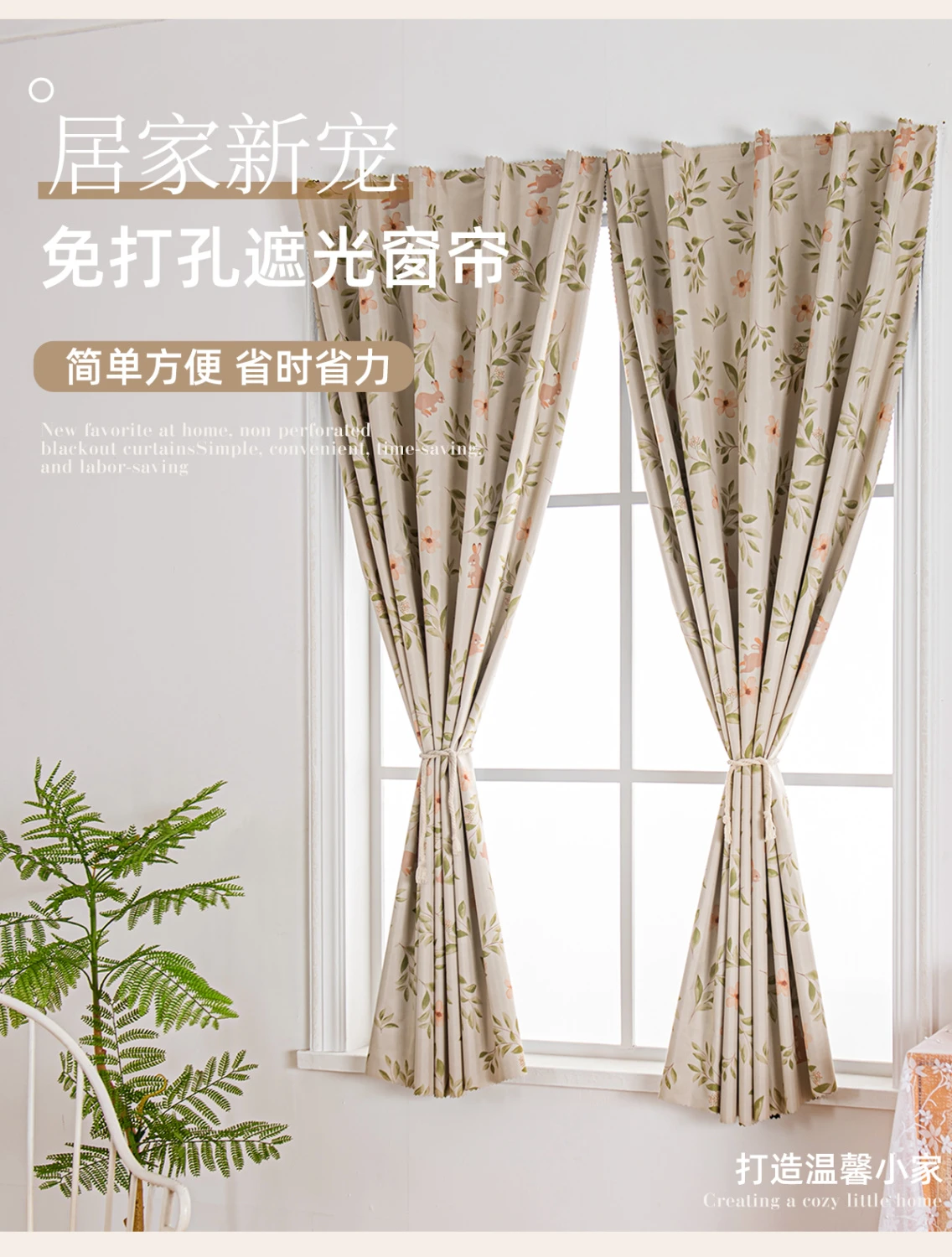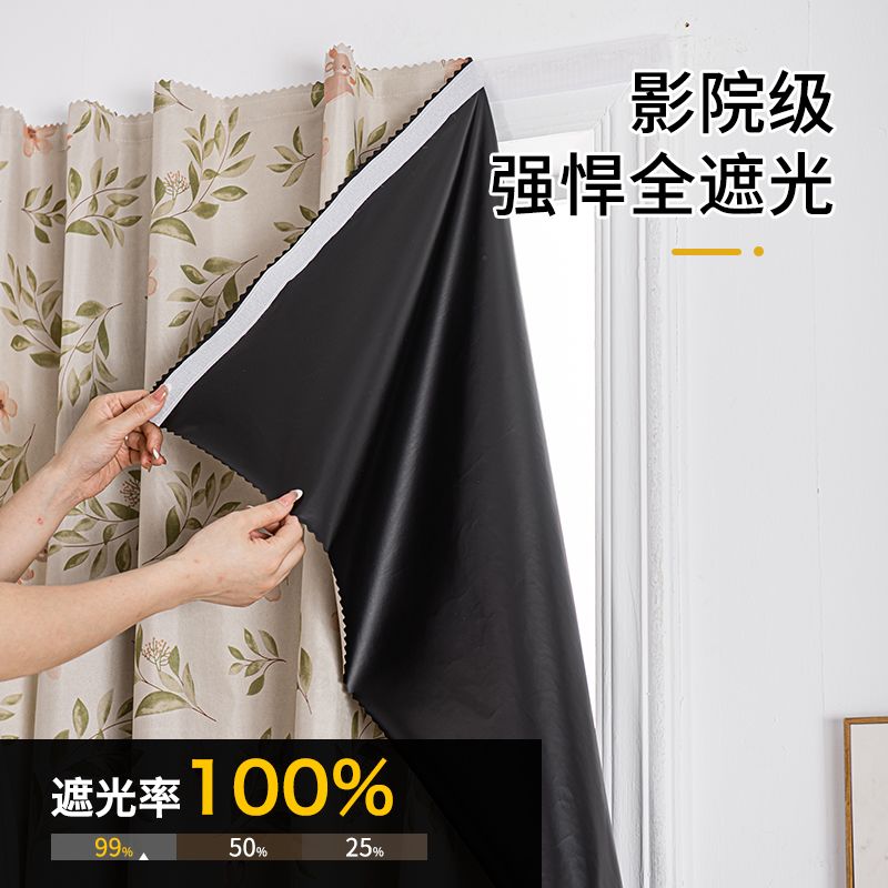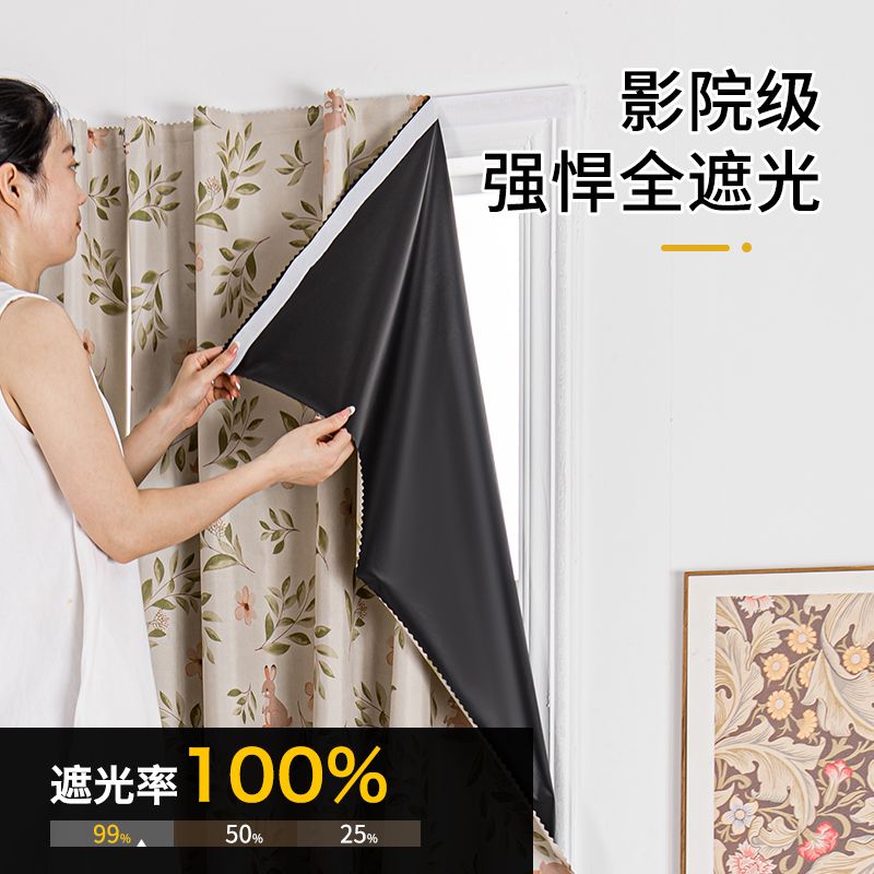 魔术贴窗帘免打孔加厚100%全遮光客厅阳台飘窗出租房自粘式不透光