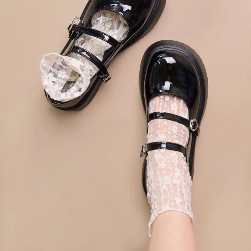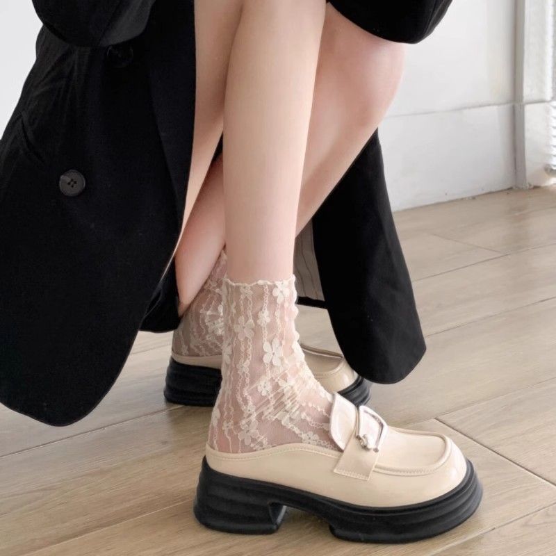 【蕾丝堆堆设计】白色蕾丝袜子女夏季薄款玛丽珍网纱堆堆袜中筒甜