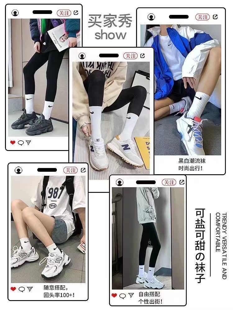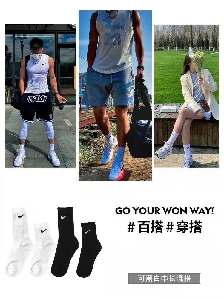 男女袜子运动ins春夏季中长筒学生薄款百搭防臭半袖纯棉T恤上衣N