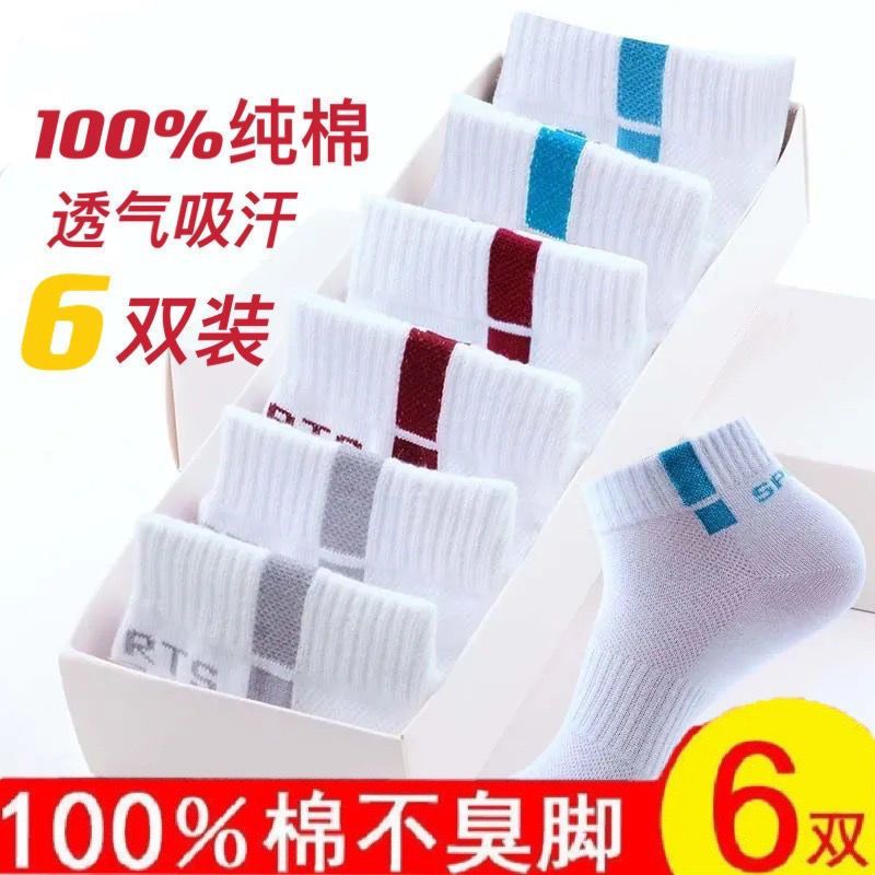 【100%新疆棉】袜子男短袜防臭夏季薄款吸汗船袜全棉男士运动袜