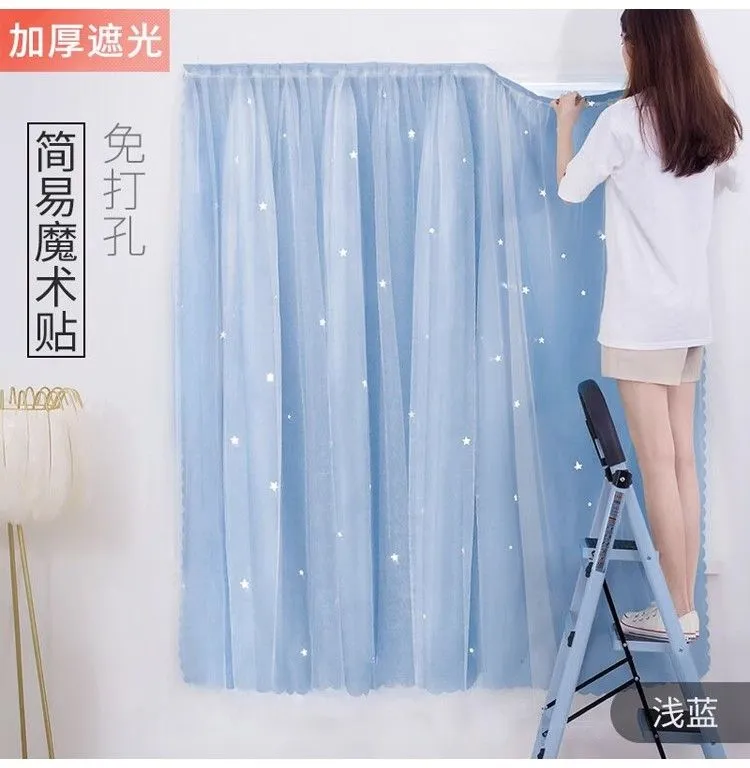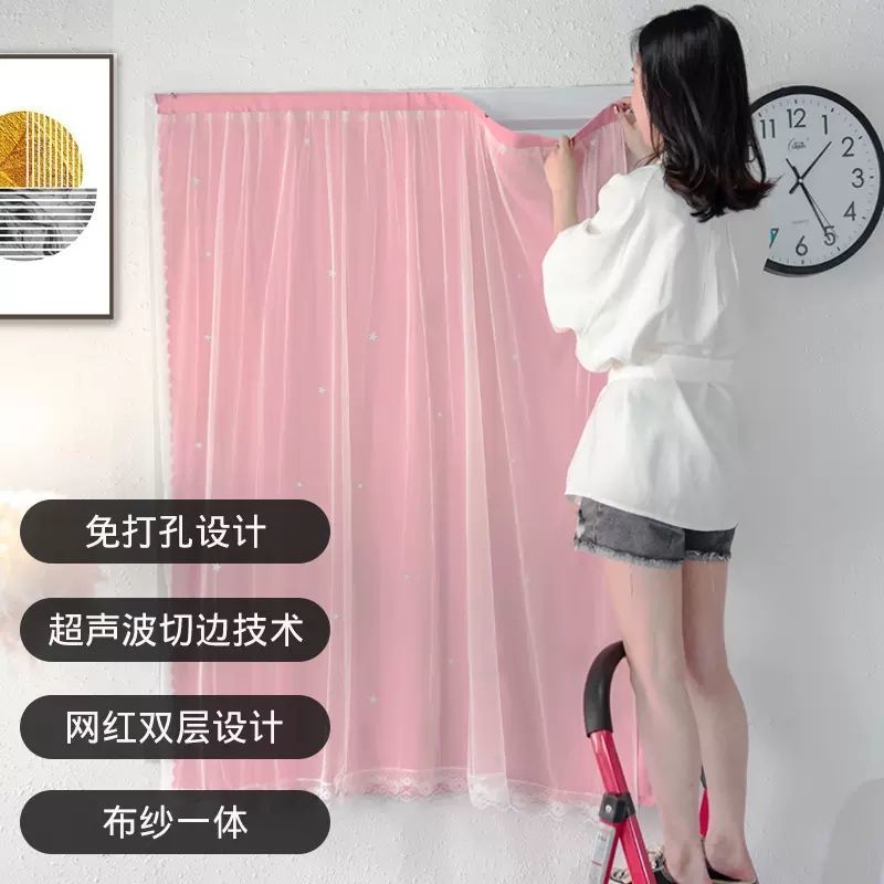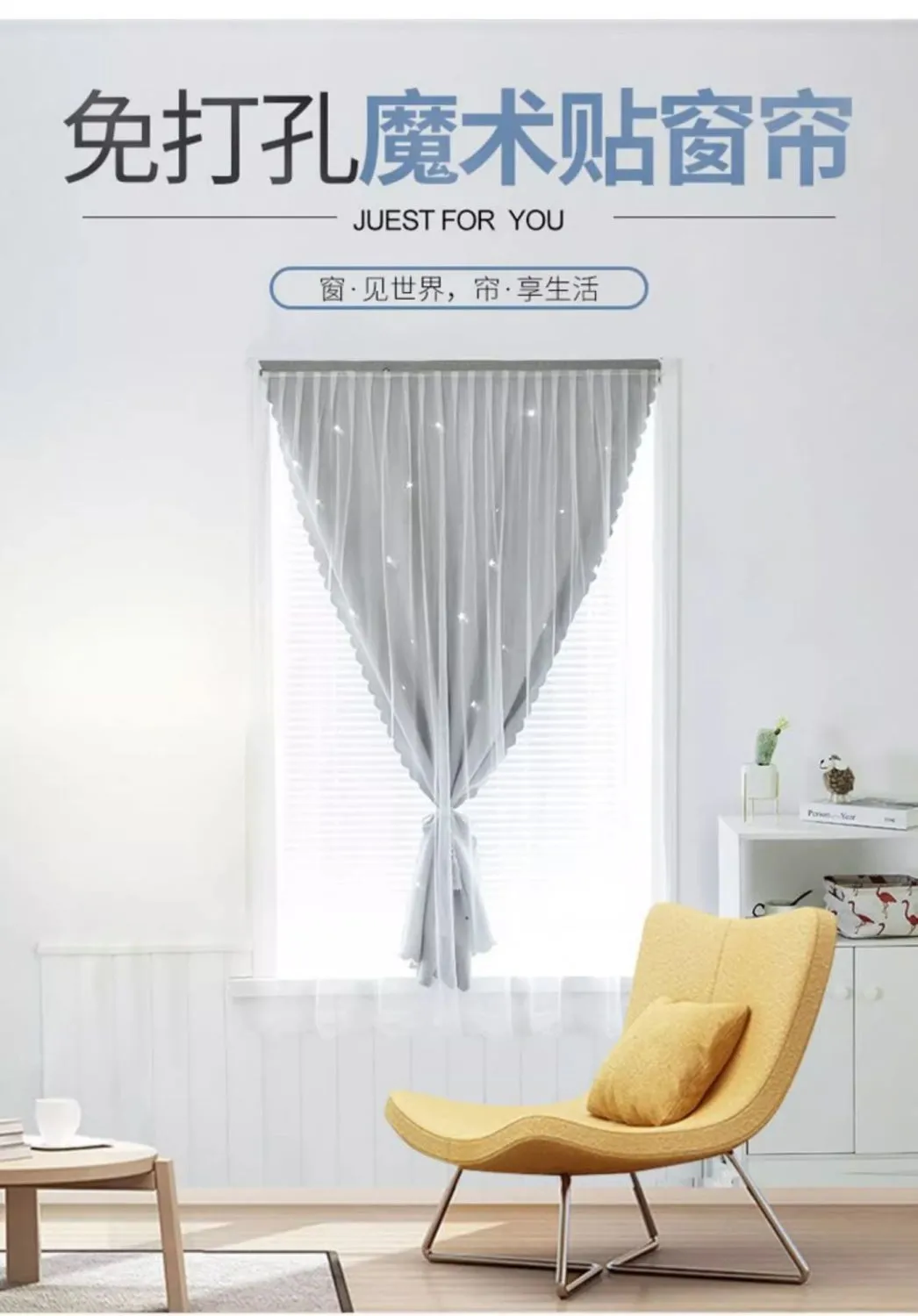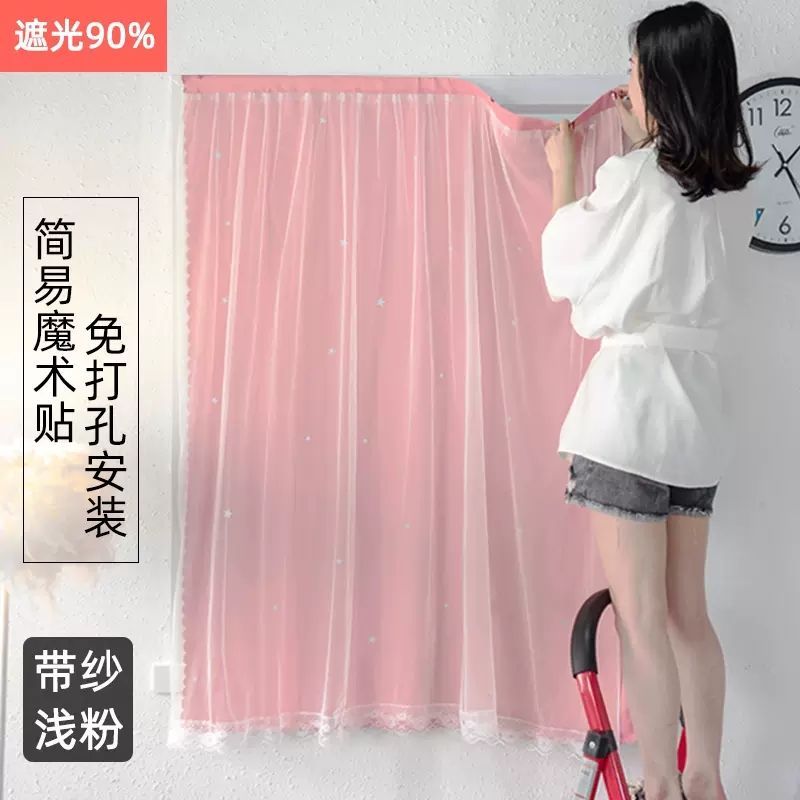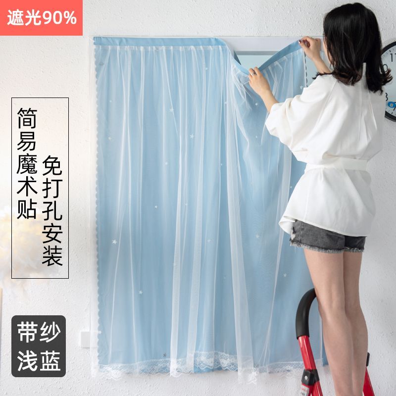 魔术贴窗帘布免打孔安装2023年新款卧室粘贴式全遮光简易自粘遮阳