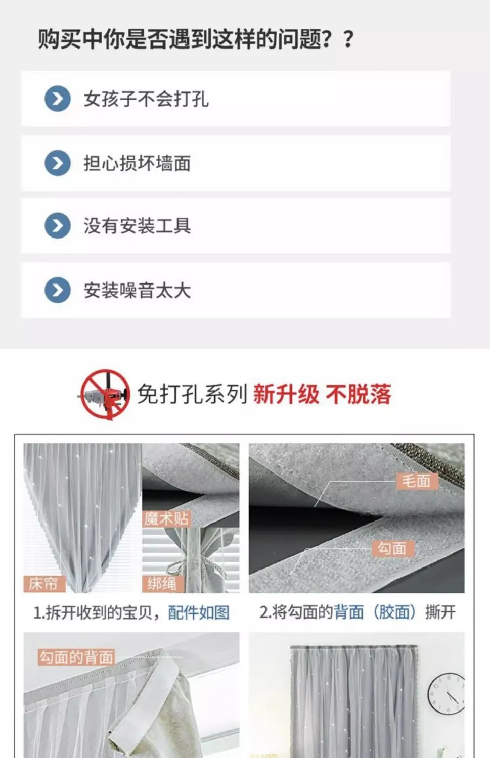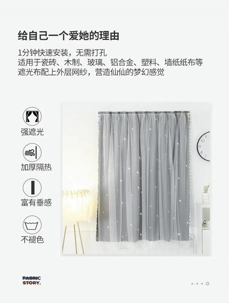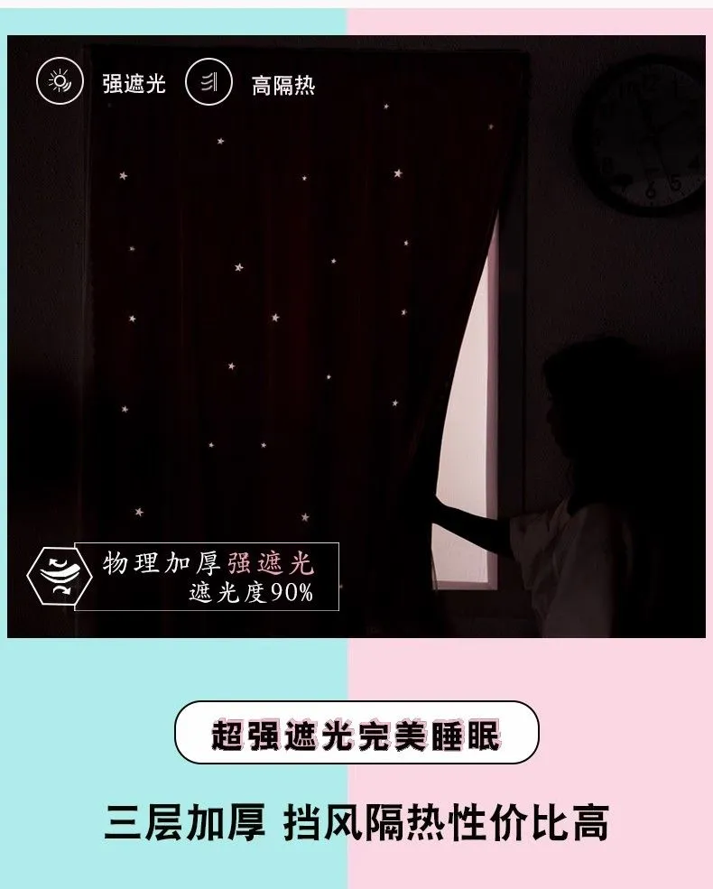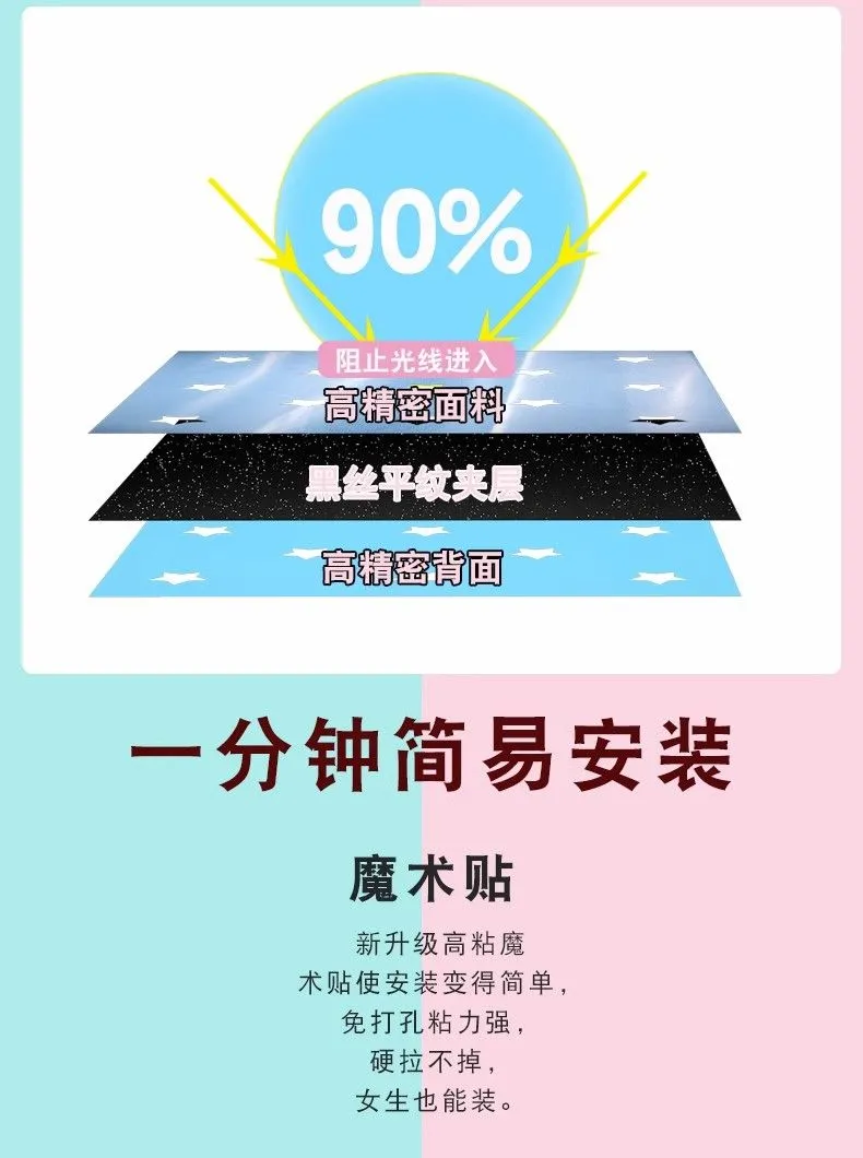 魔术贴窗帘布免打孔安装2023年新款卧室粘贴式全遮光简易自粘遮阳