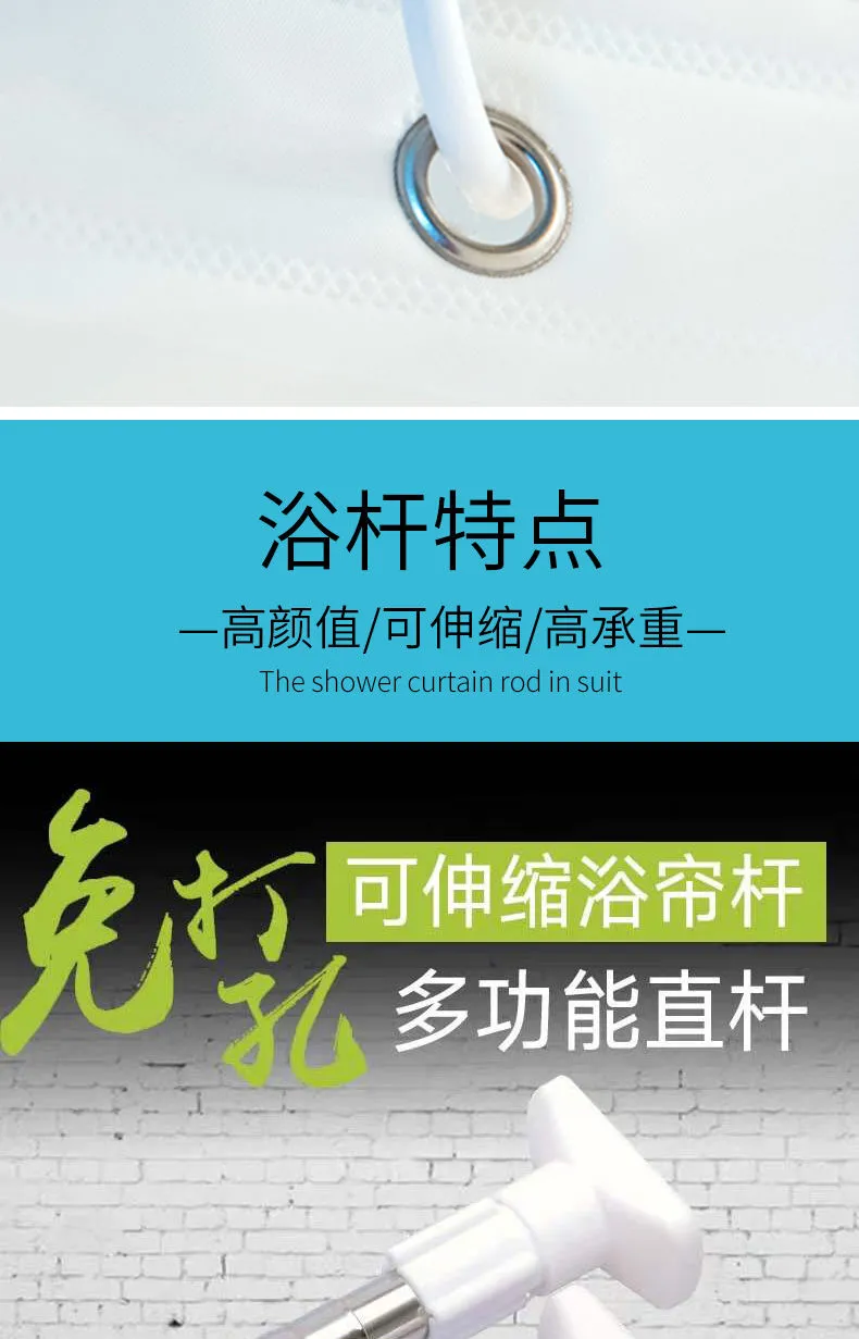 浴帘套装免打孔防水防霉卫生间窗帘挂帘浴室门帘杆淋浴隔断帘子