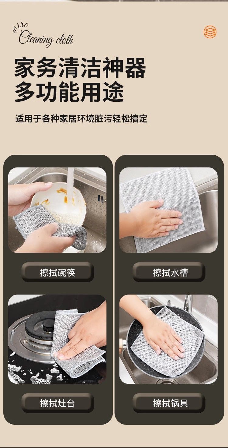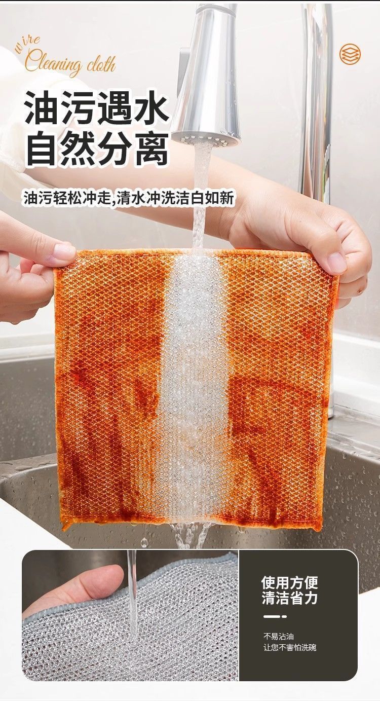 银丝洗碗布清洁双面网格抹布不沾油速干易清洗刷锅刷灶台除垢家用
