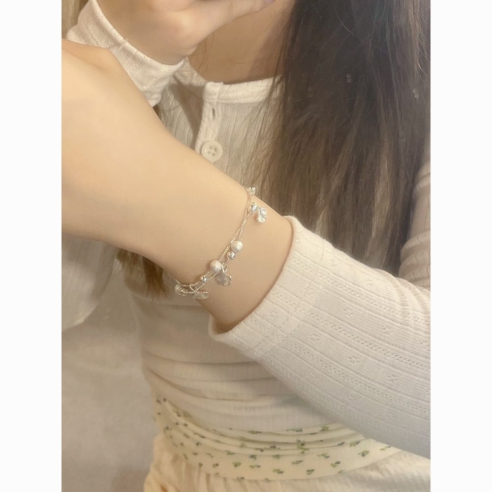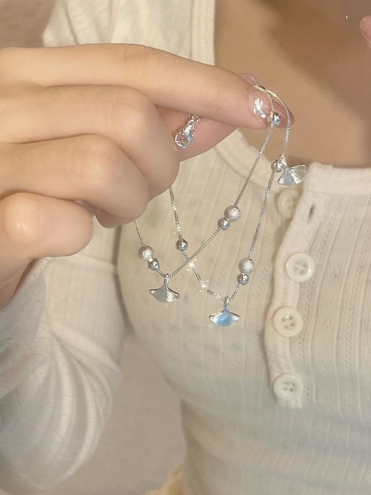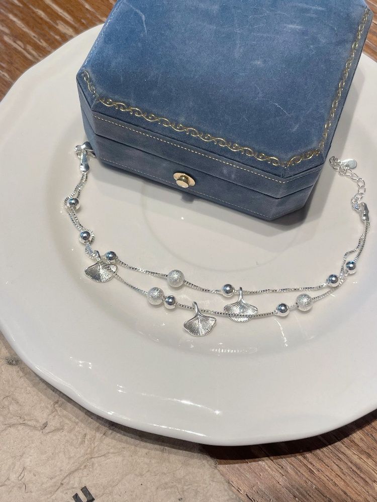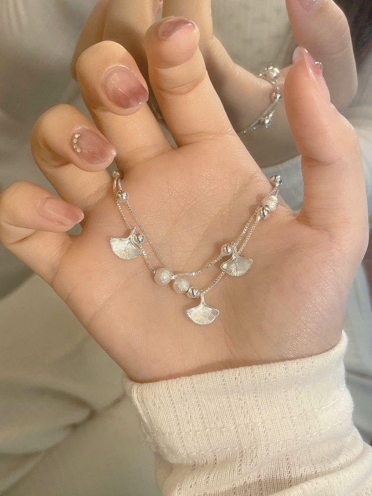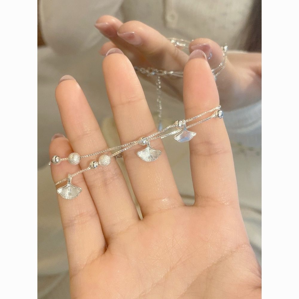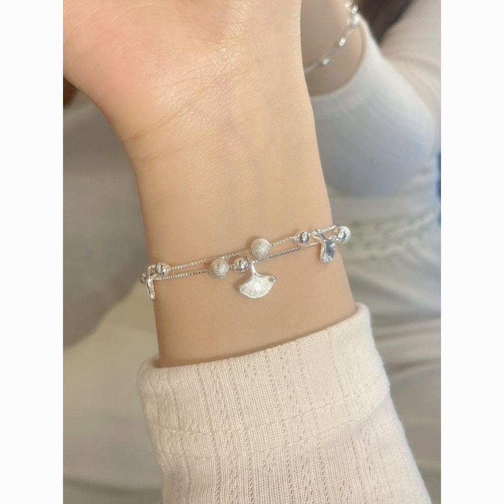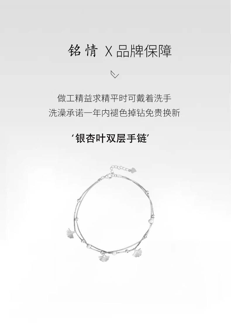 S925纯银层叠银杏叶手链2024新款双层轻奢小众精致情人节生日礼物