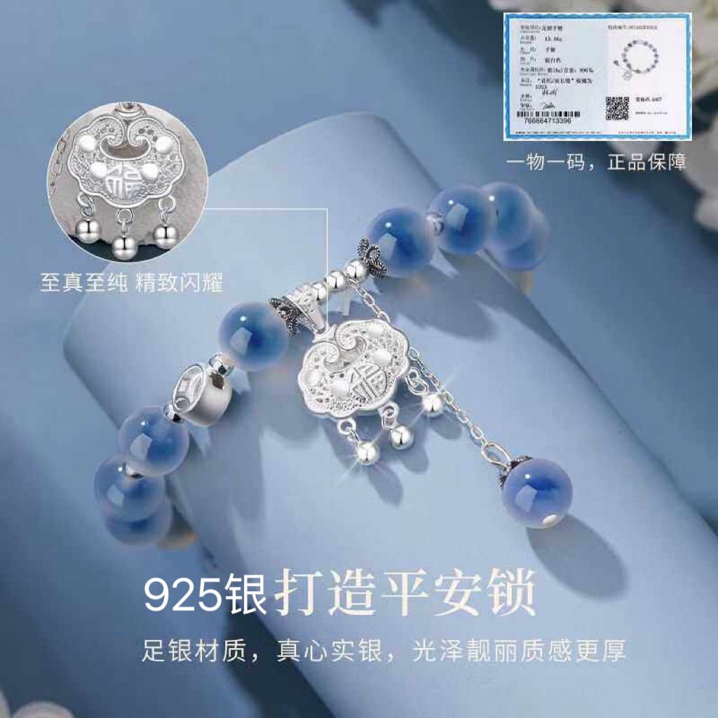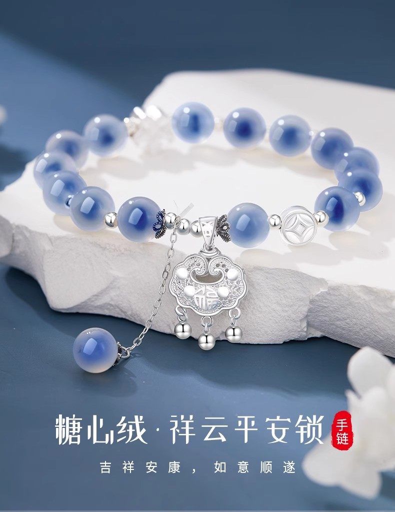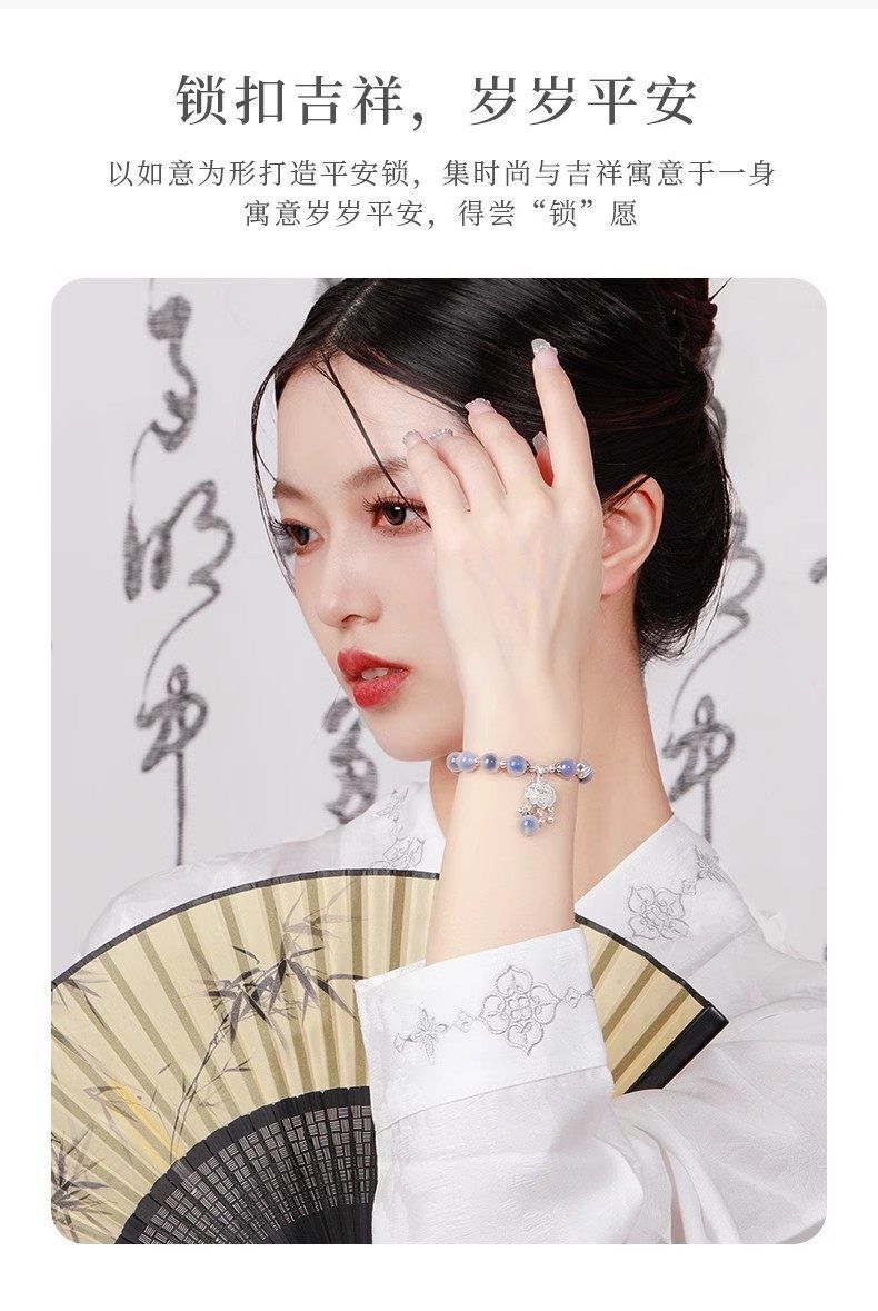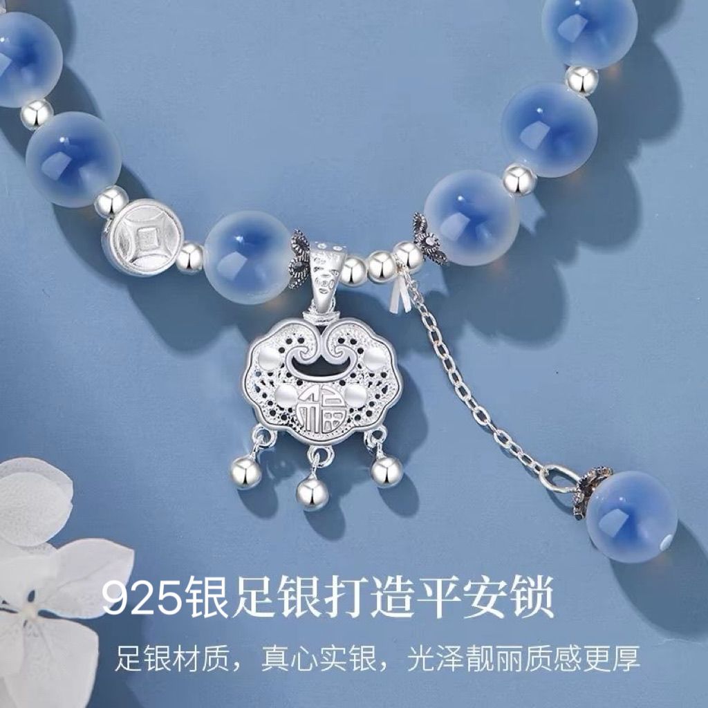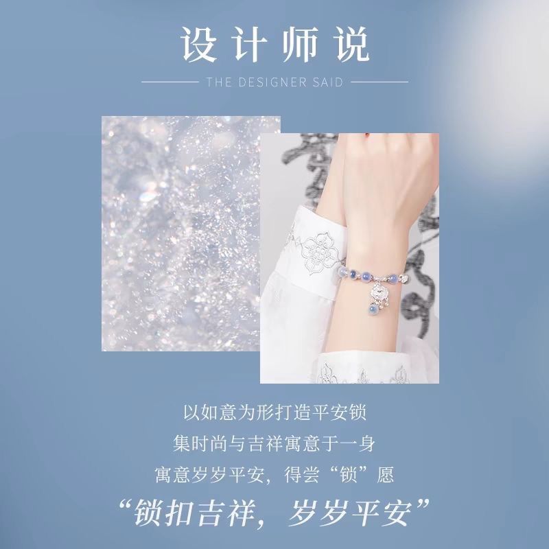 糖心玛瑙平安锁手链女纯银手镯小众轻奢2025年新款送闺蜜女友礼物