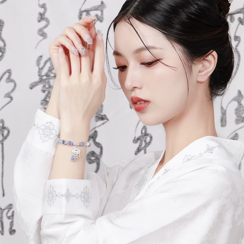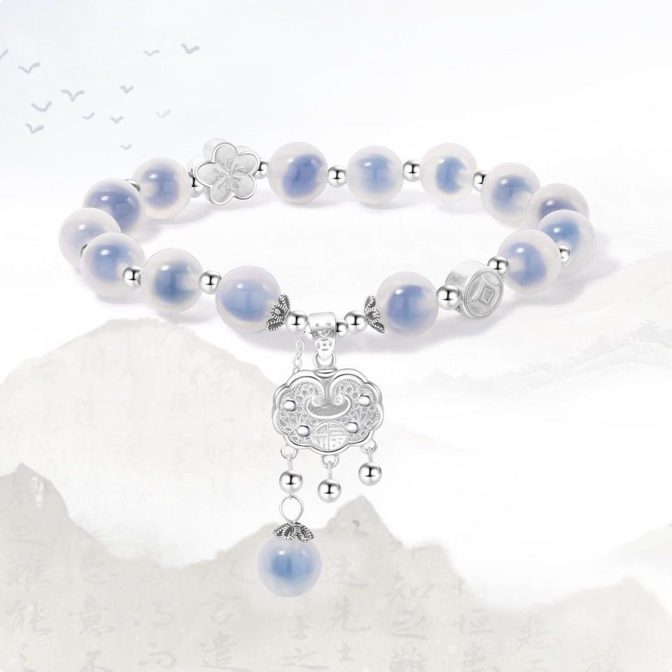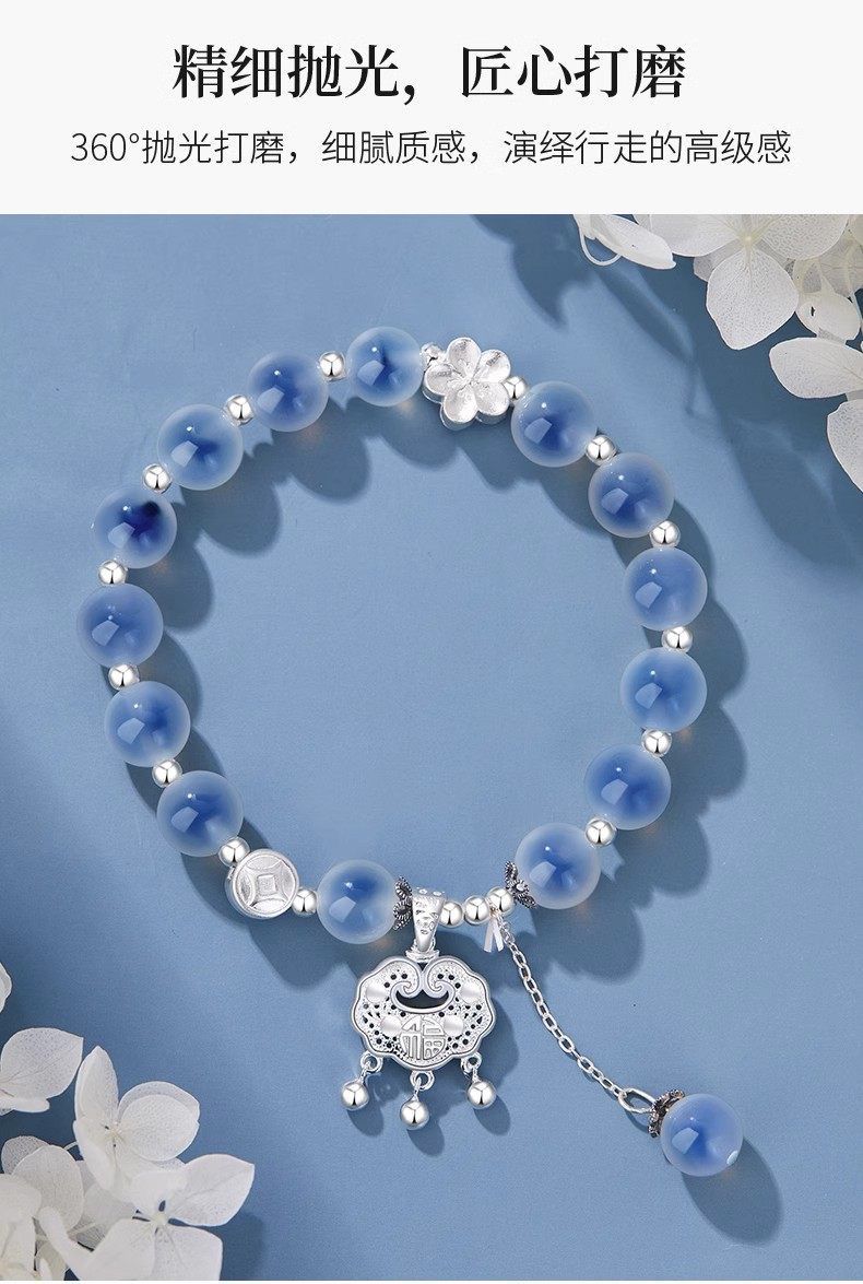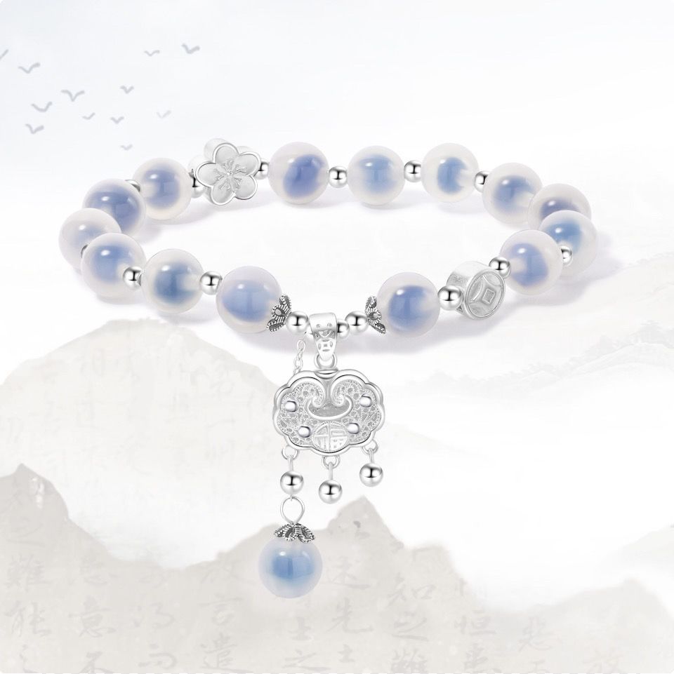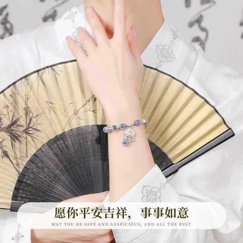 糖心玛瑙平安锁手链女纯银手镯小众轻奢2025年新款送闺蜜女友礼物