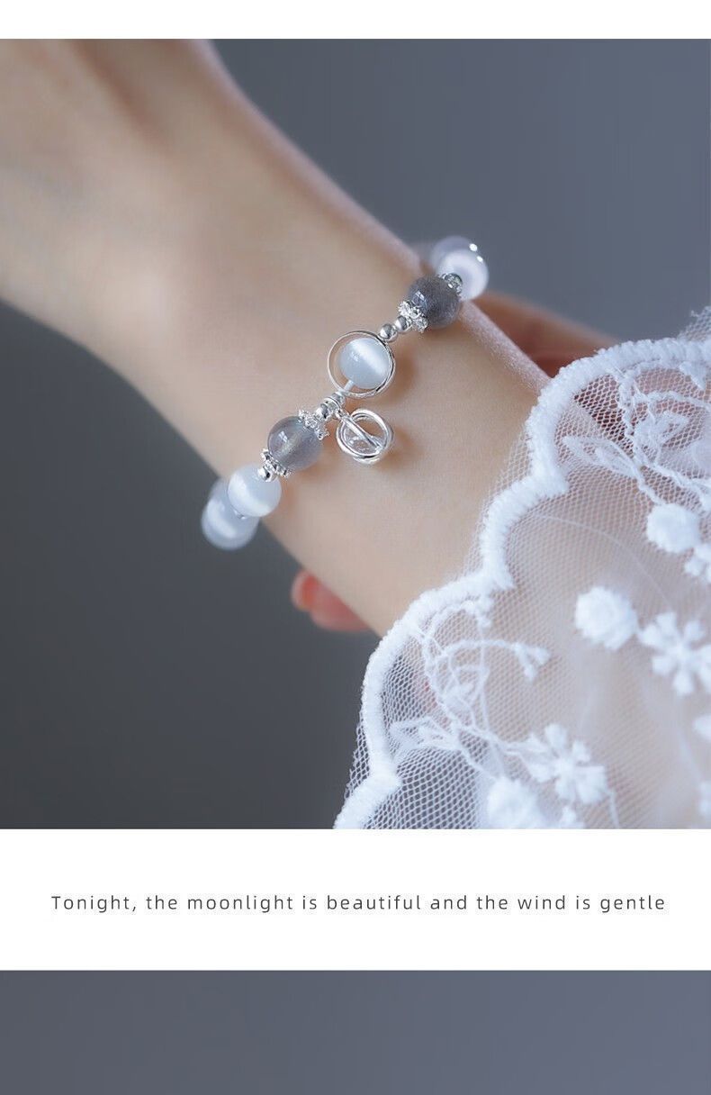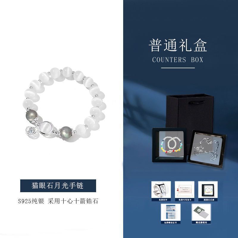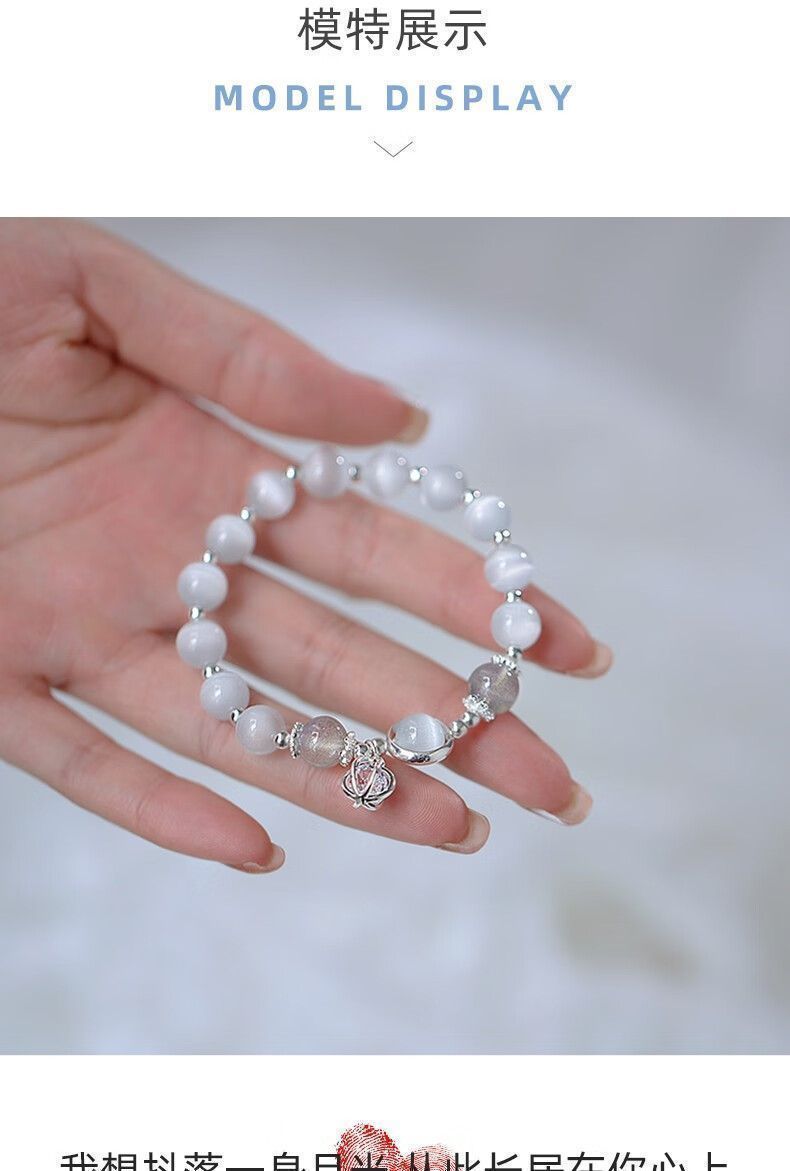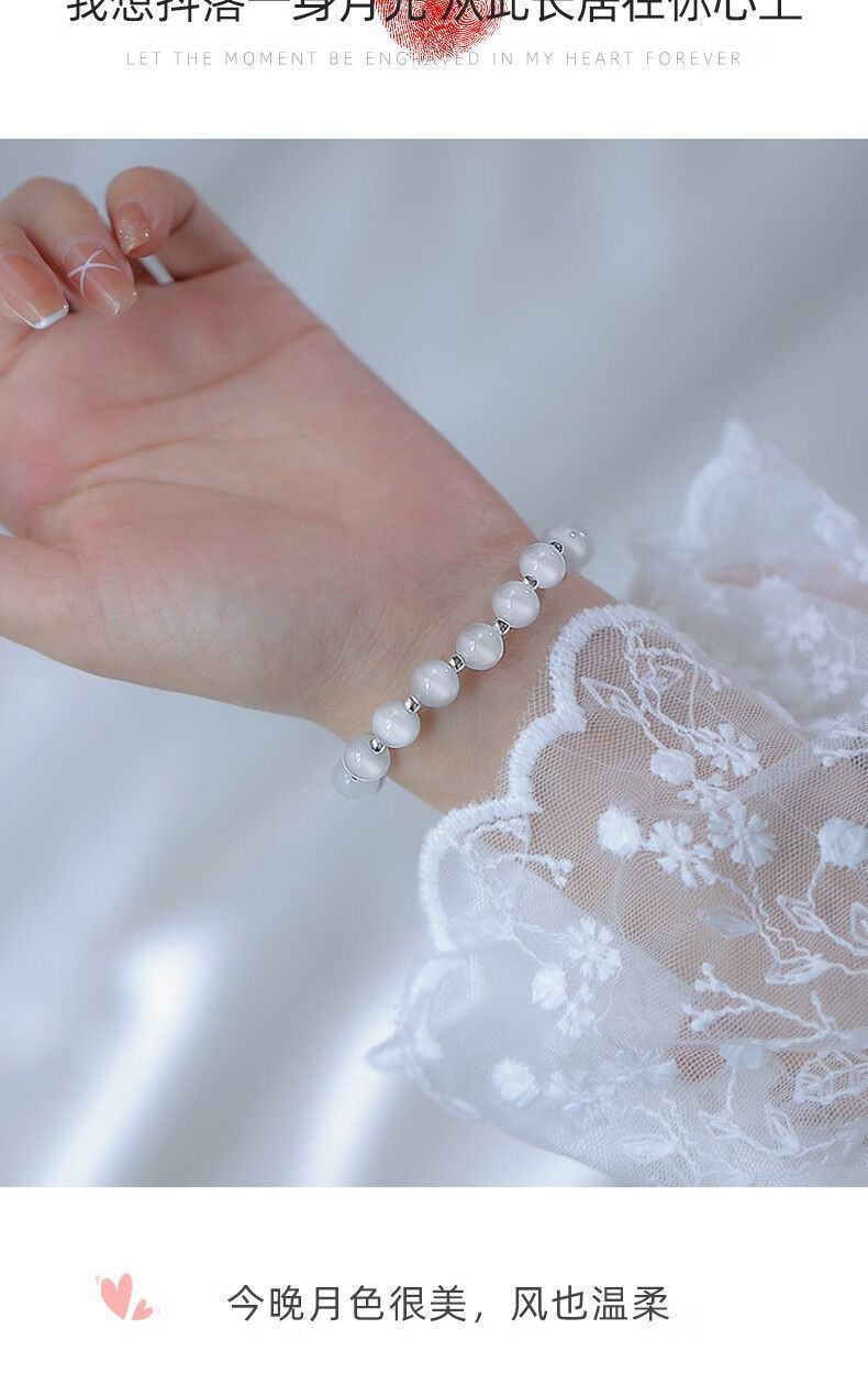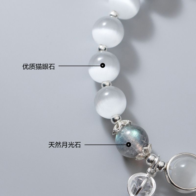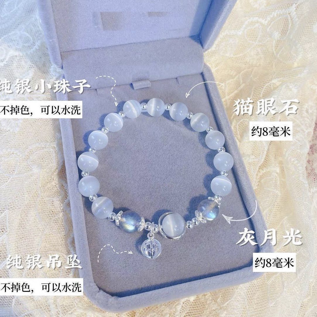 猫眼石天然月光石女生手链镀925纯银原创设计森系七夕情人礼物