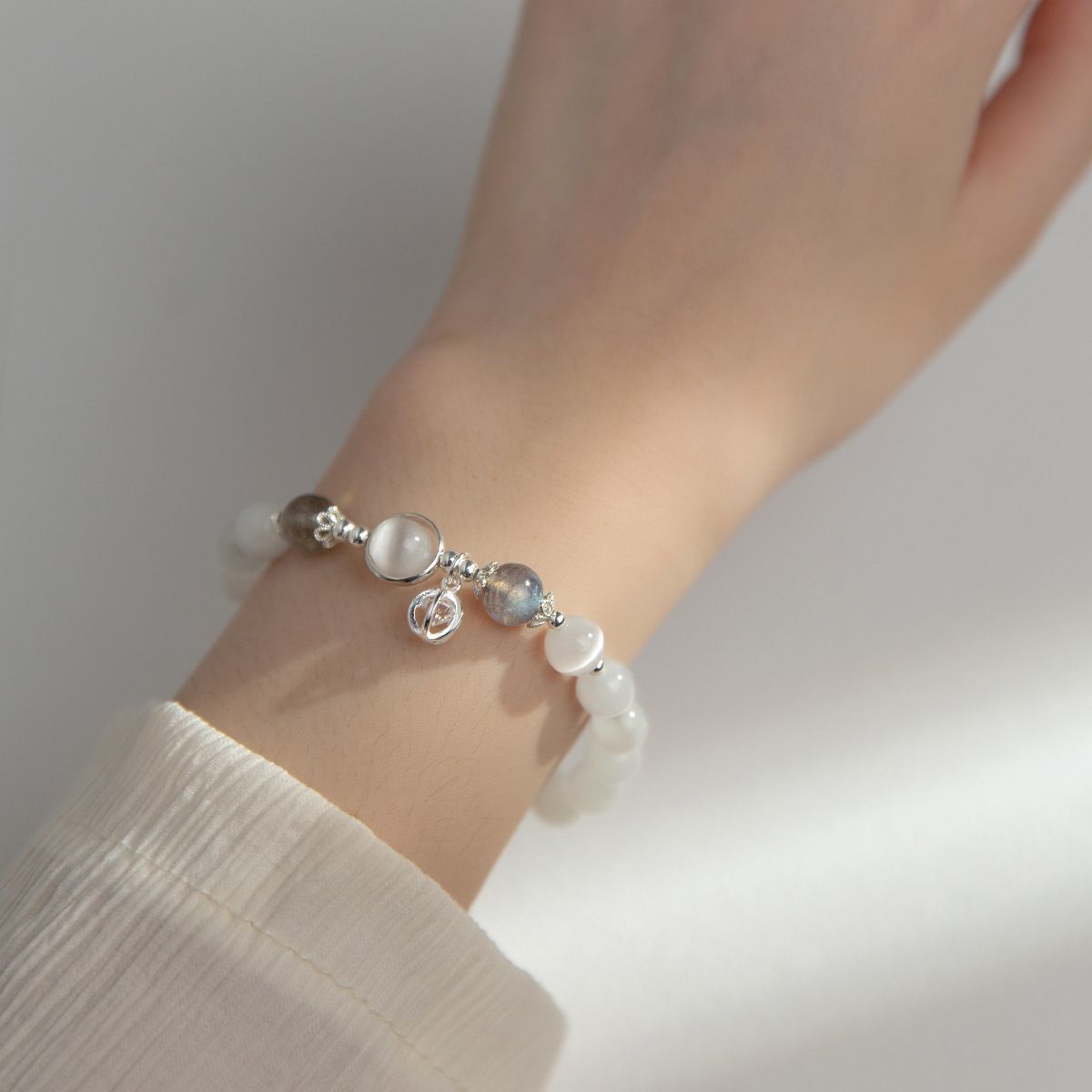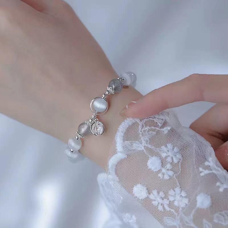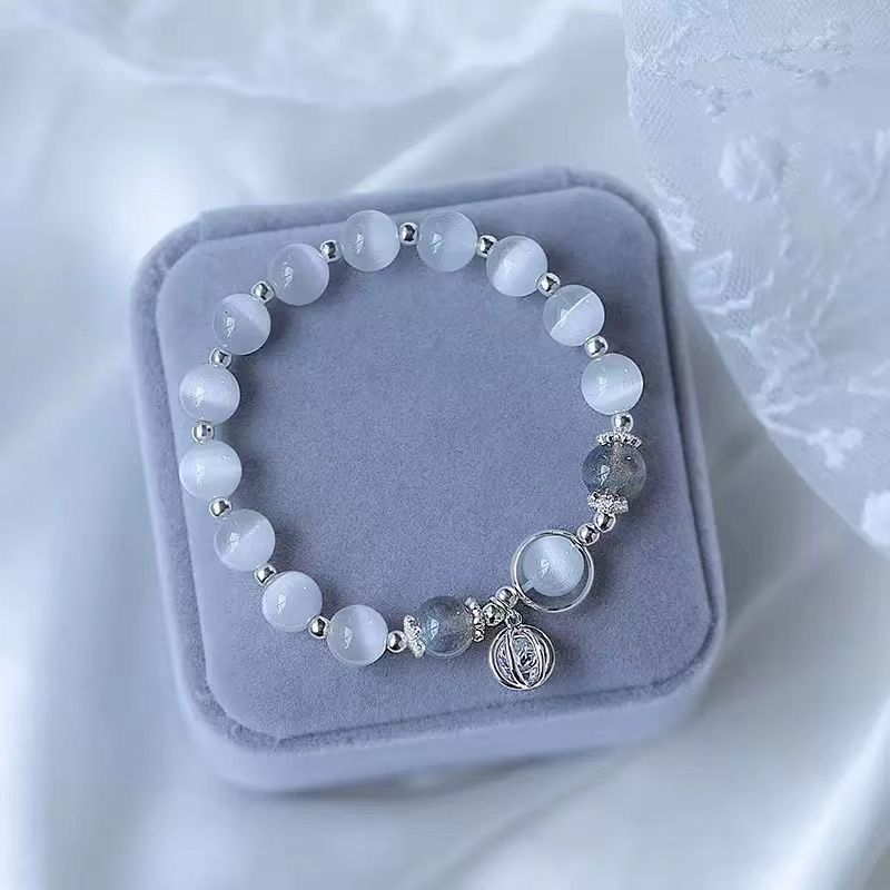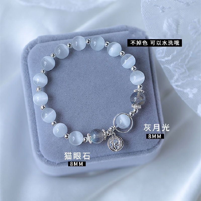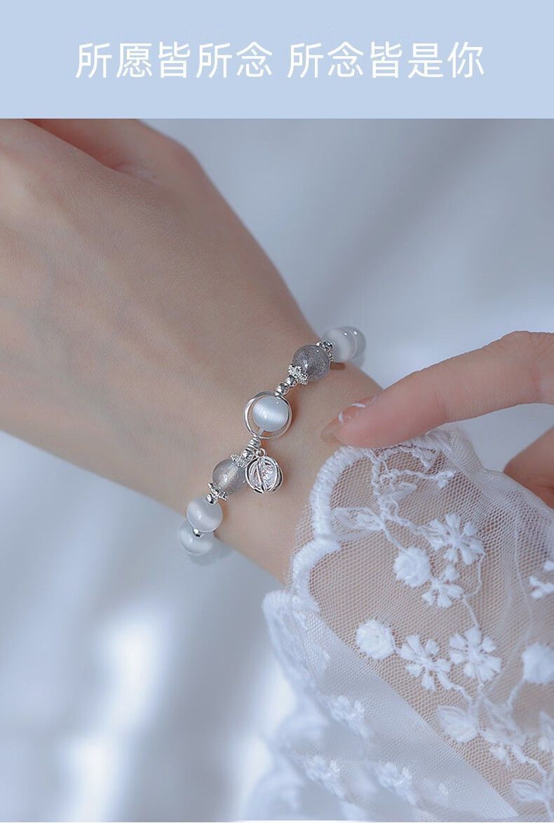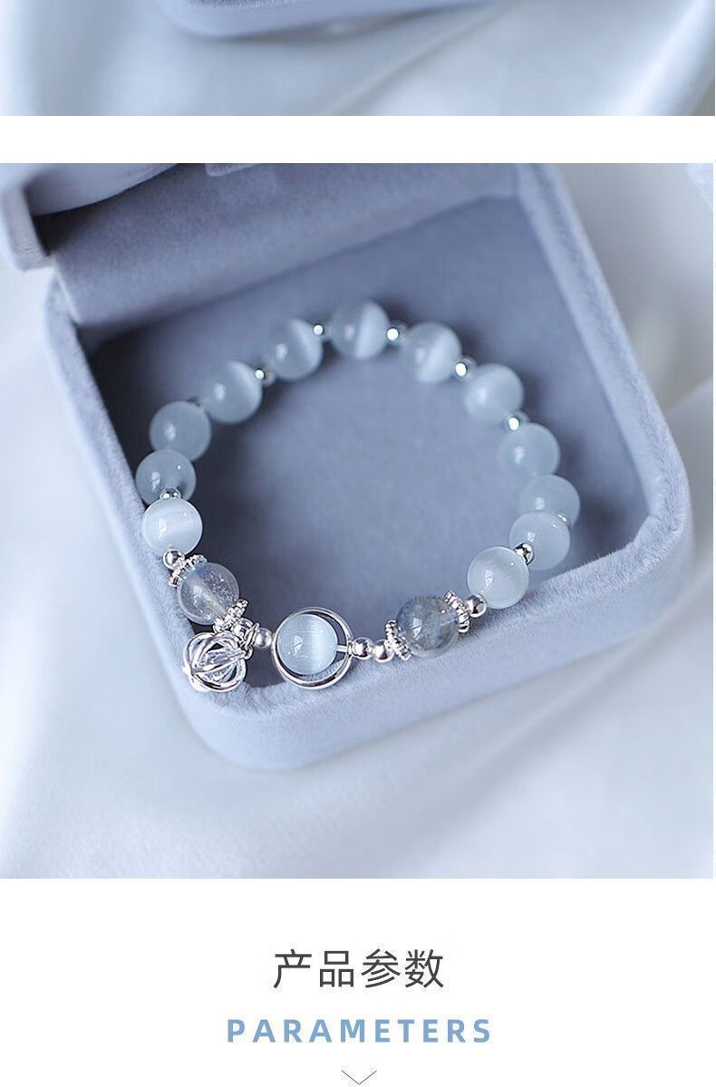 猫眼石天然月光石女生手链镀925纯银原创设计森系七夕情人礼物