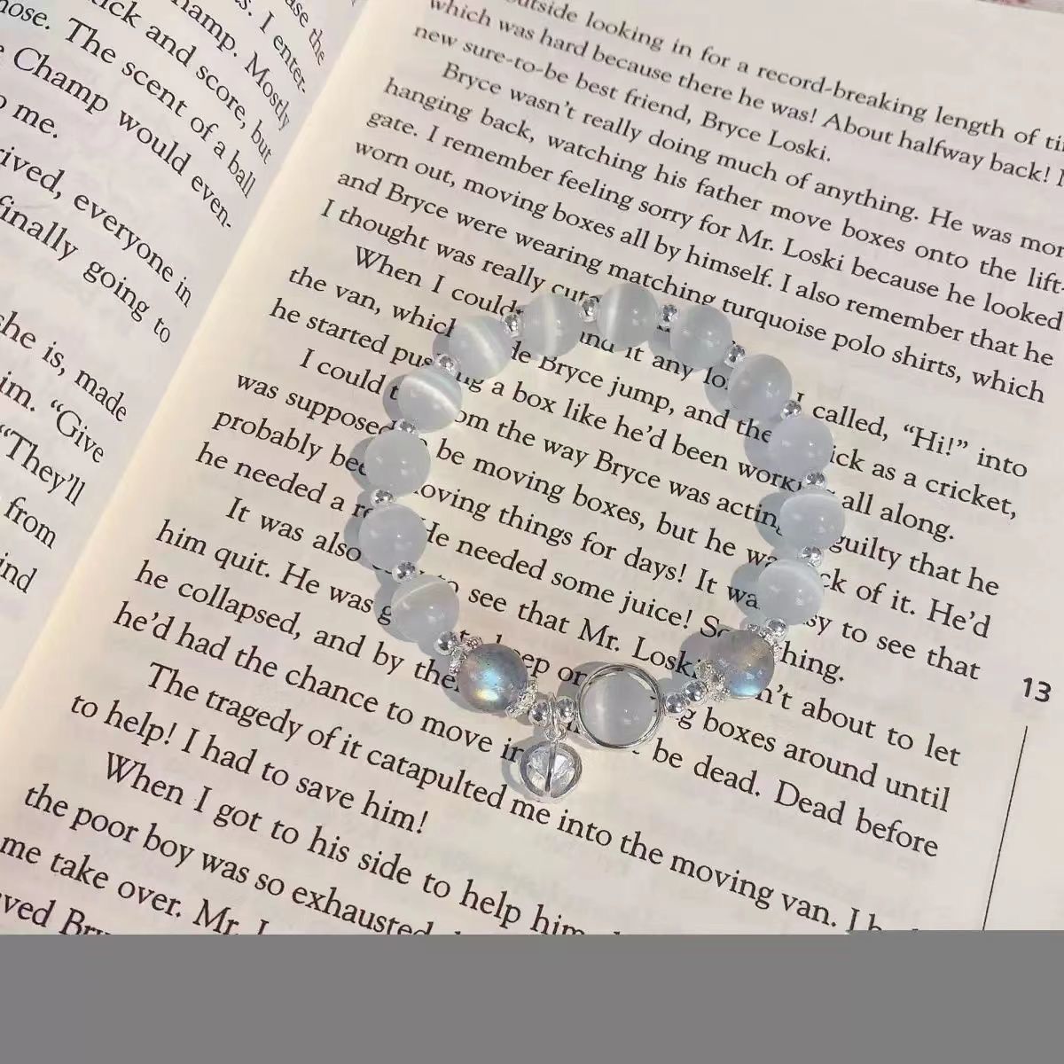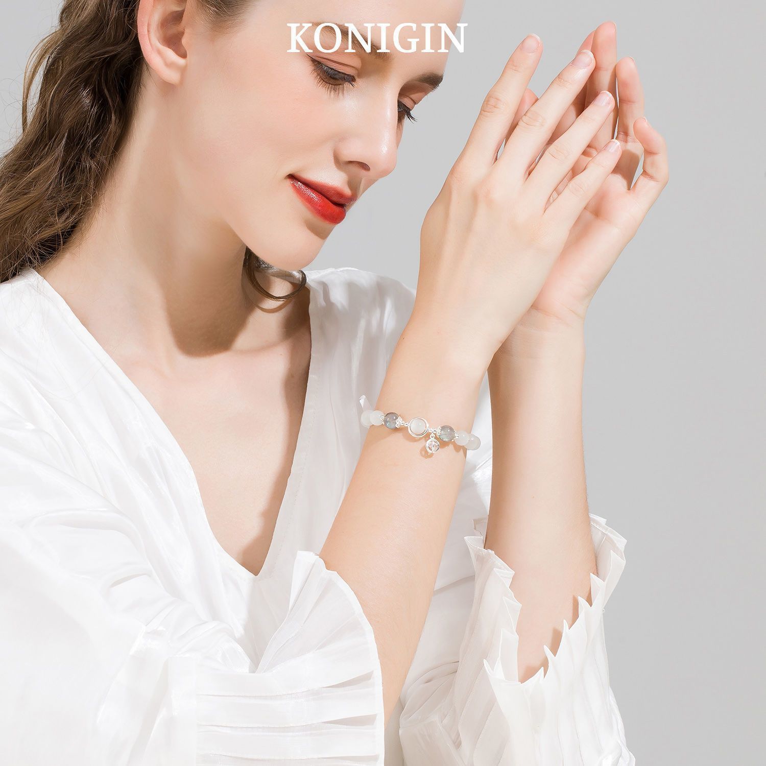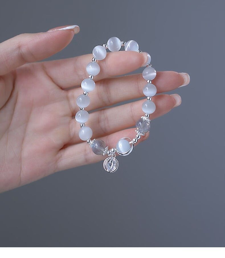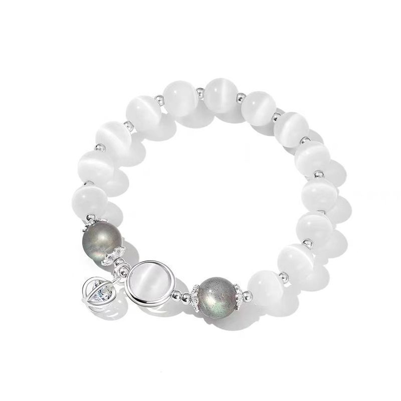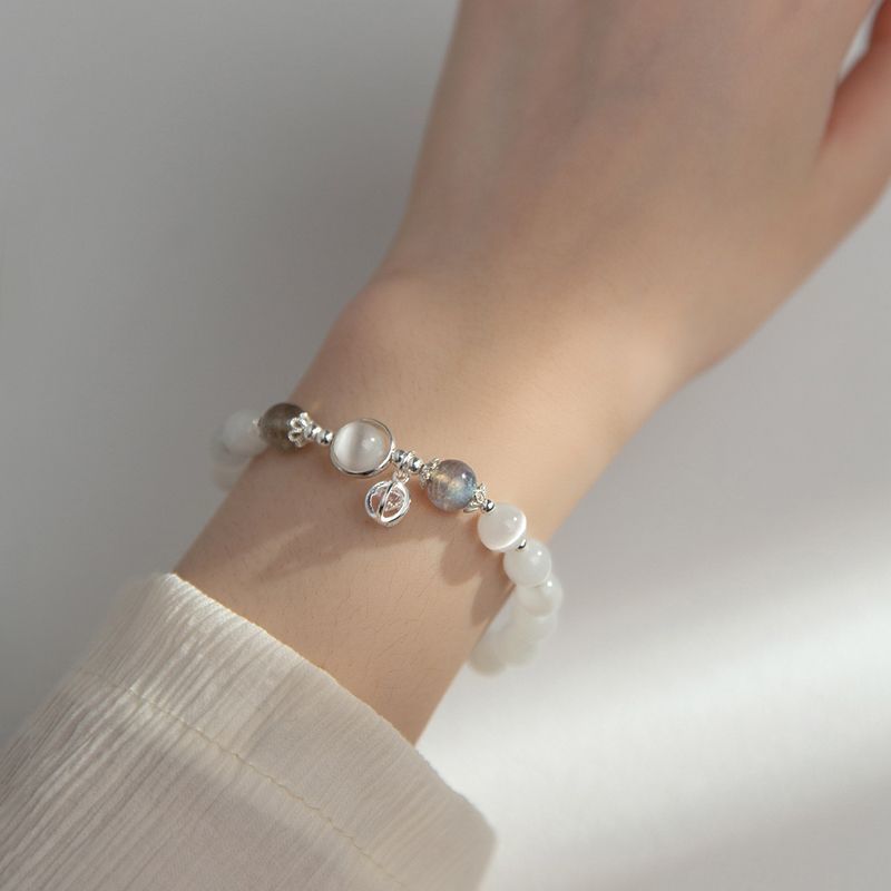 猫眼石天然月光石女生手链镀925纯银原创设计森系七夕情人礼物