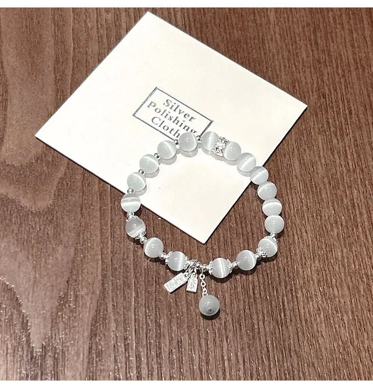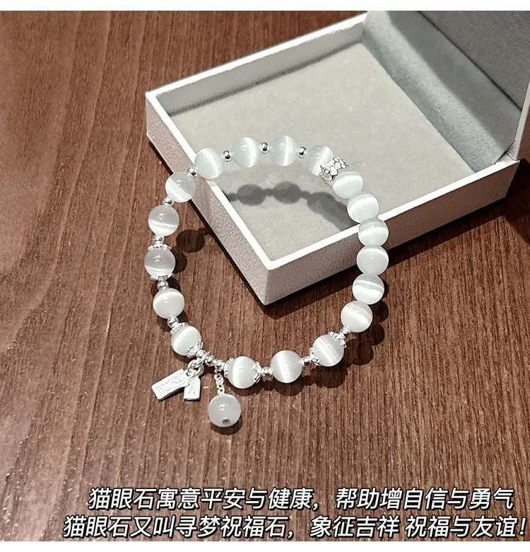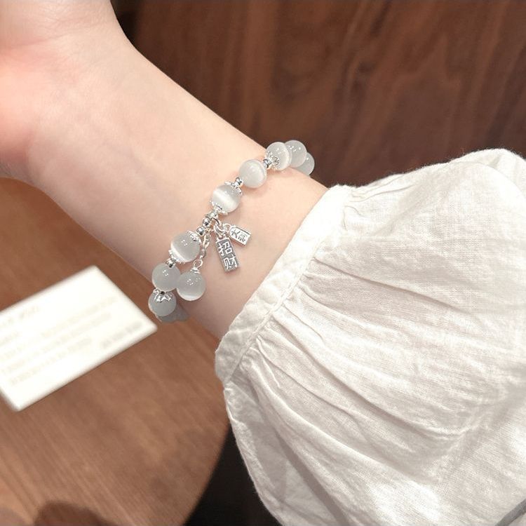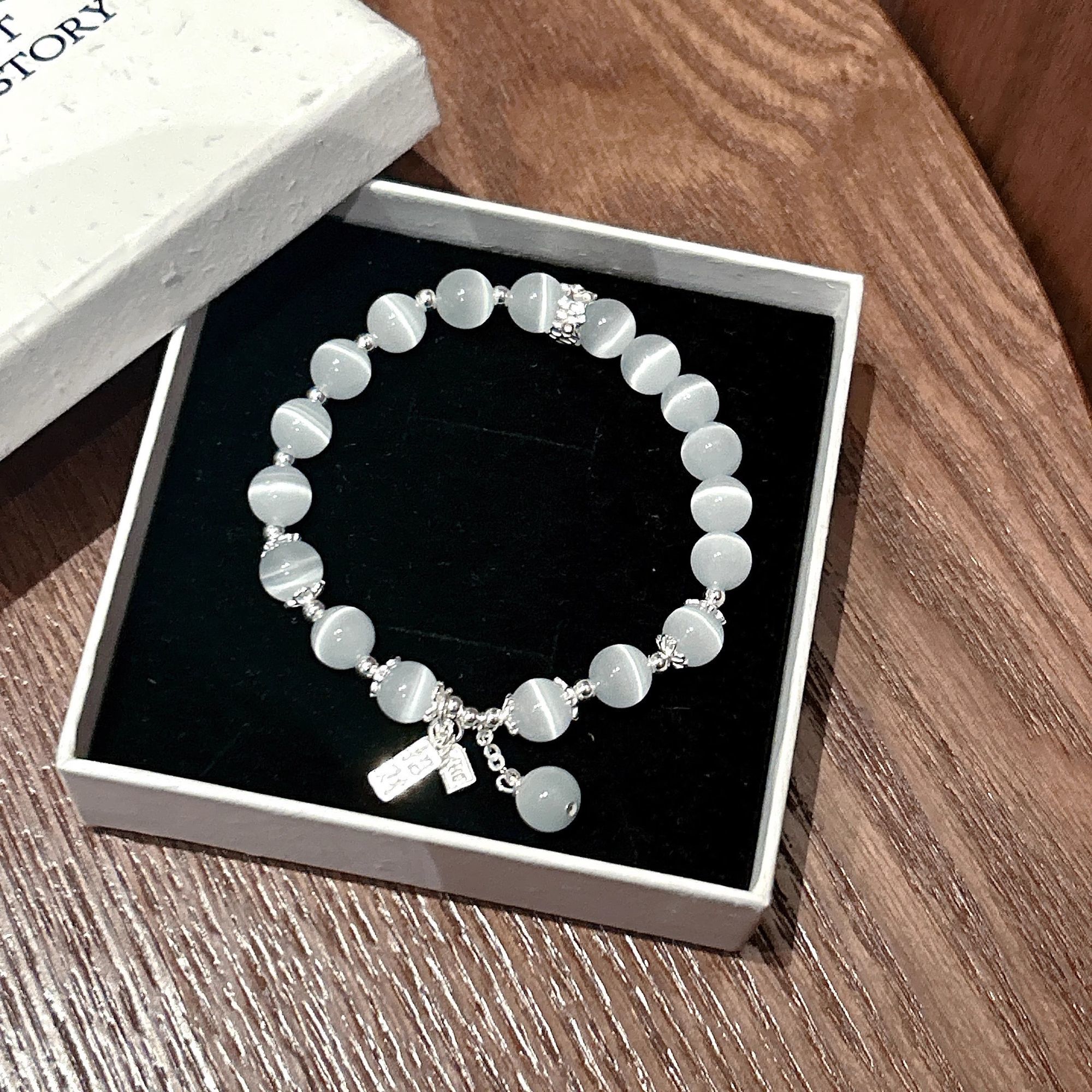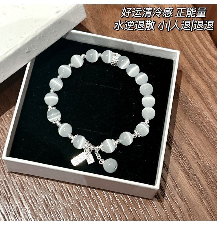 S925银轻奢高级猫眼石水晶手串女精致ins设计感新款气质闺蜜手链