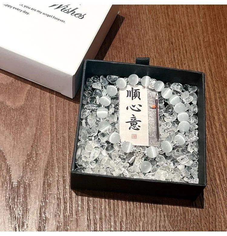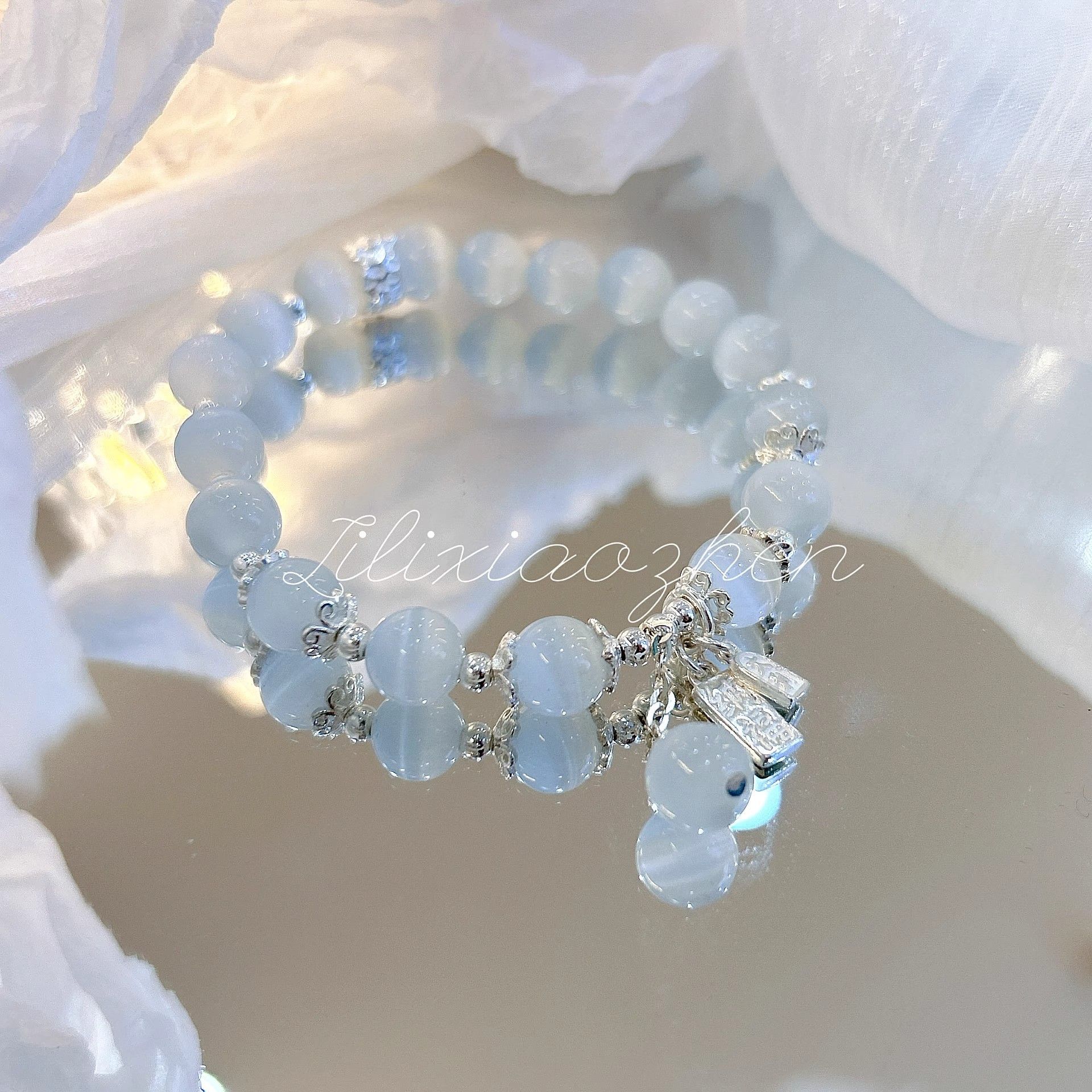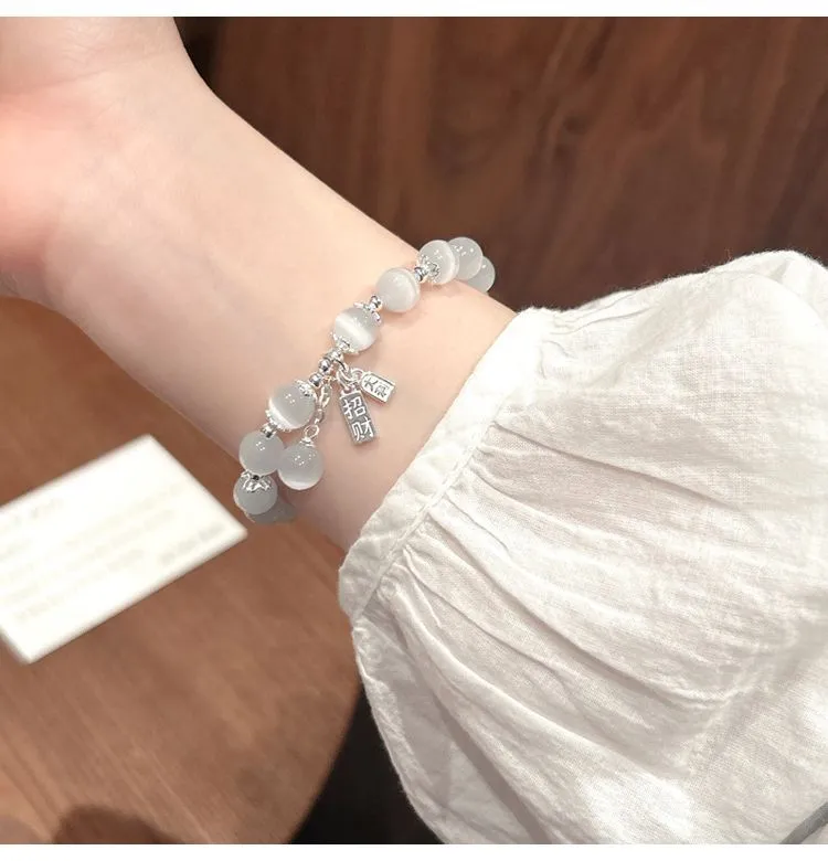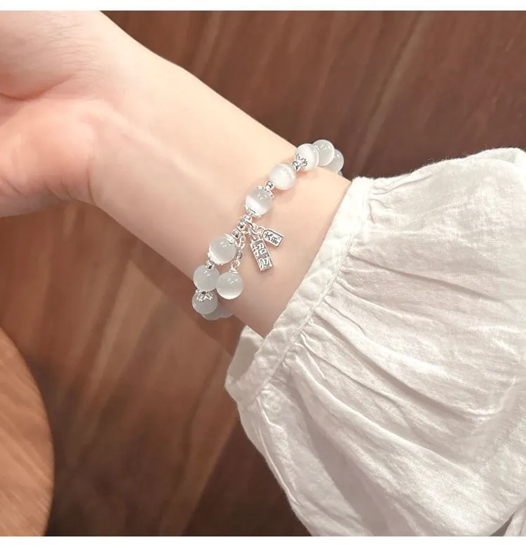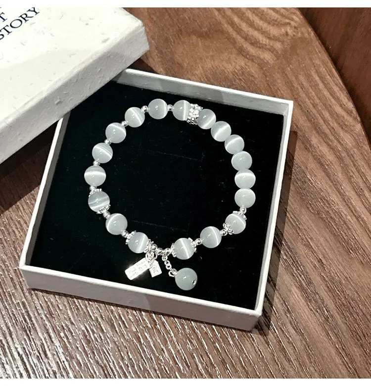 S925银轻奢高级猫眼石水晶手串女精致ins设计感新款气质闺蜜手链