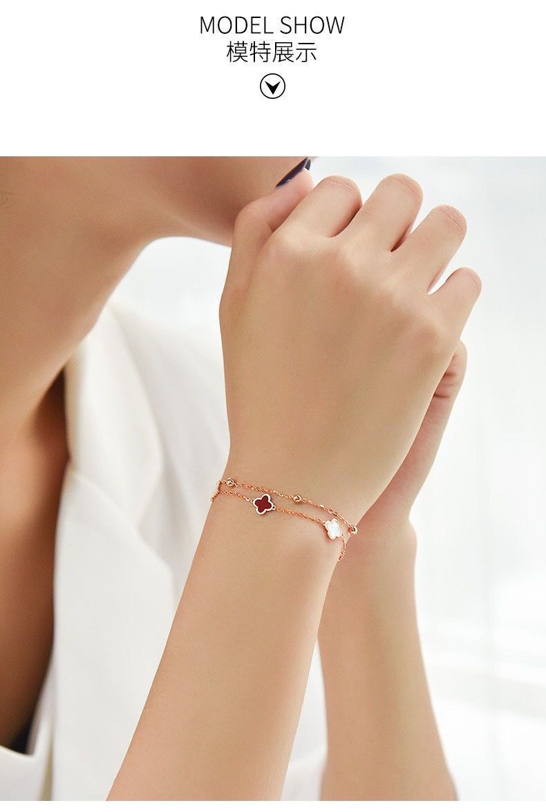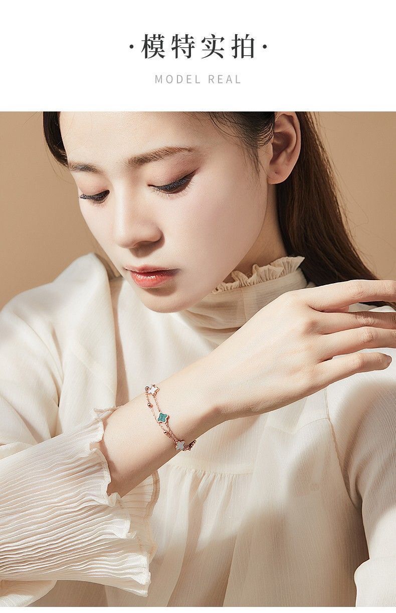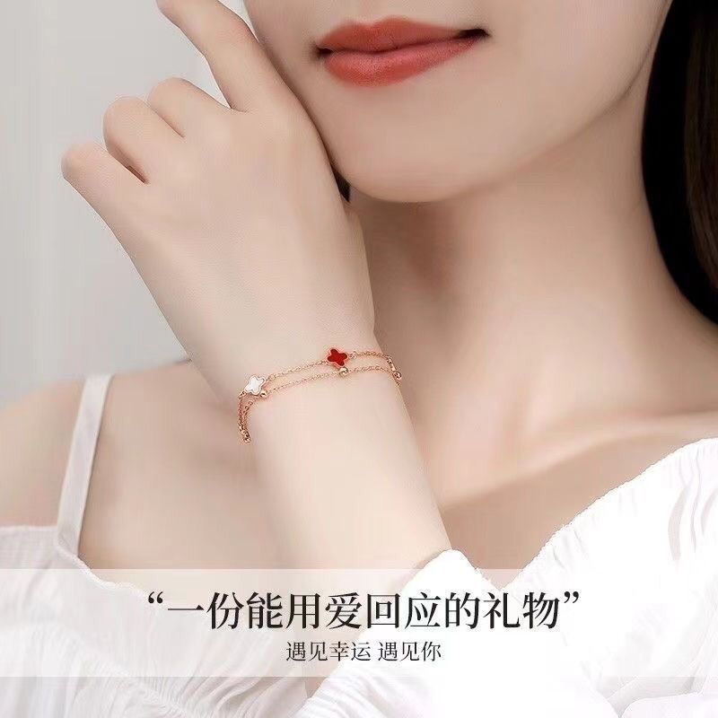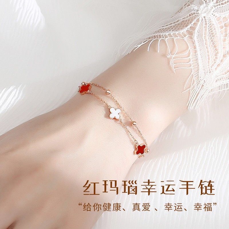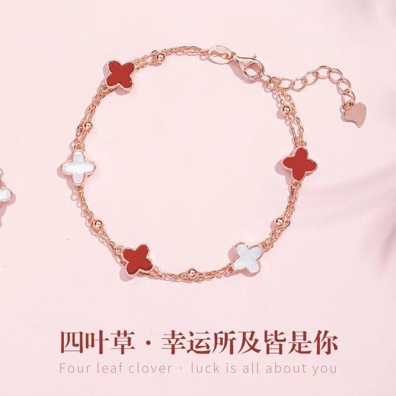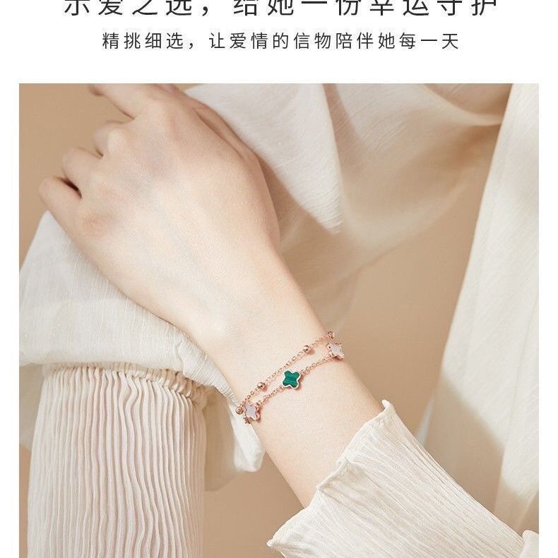 正品999纯银手链女款ins小众设计双层四叶草情人节送女友闺蜜