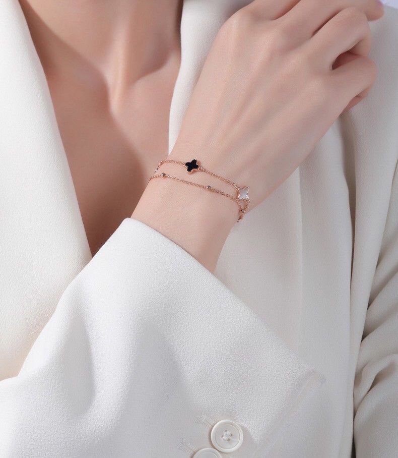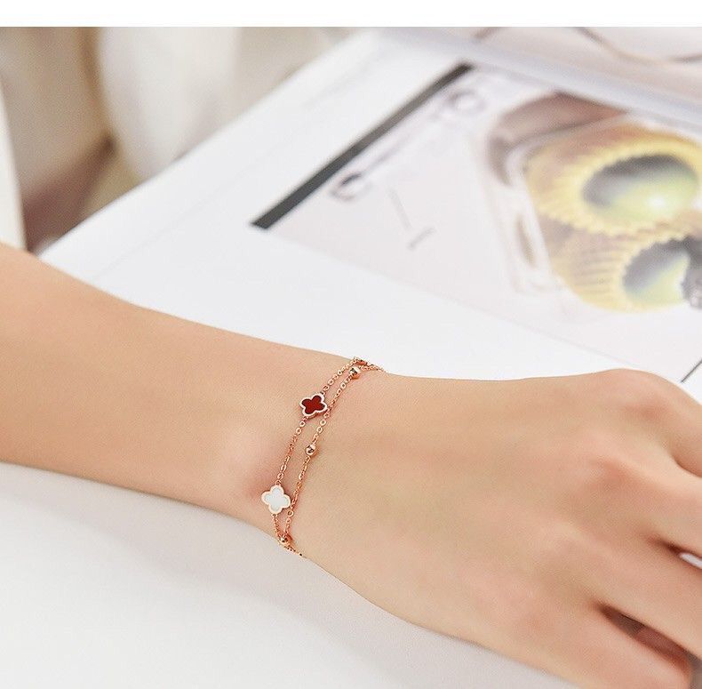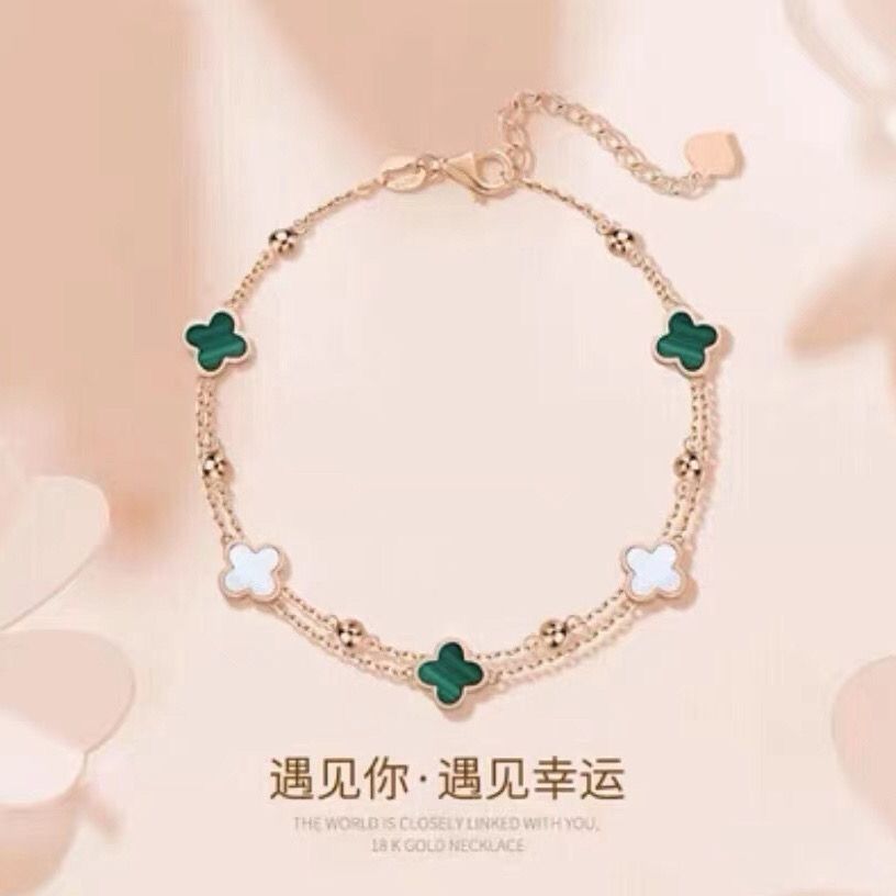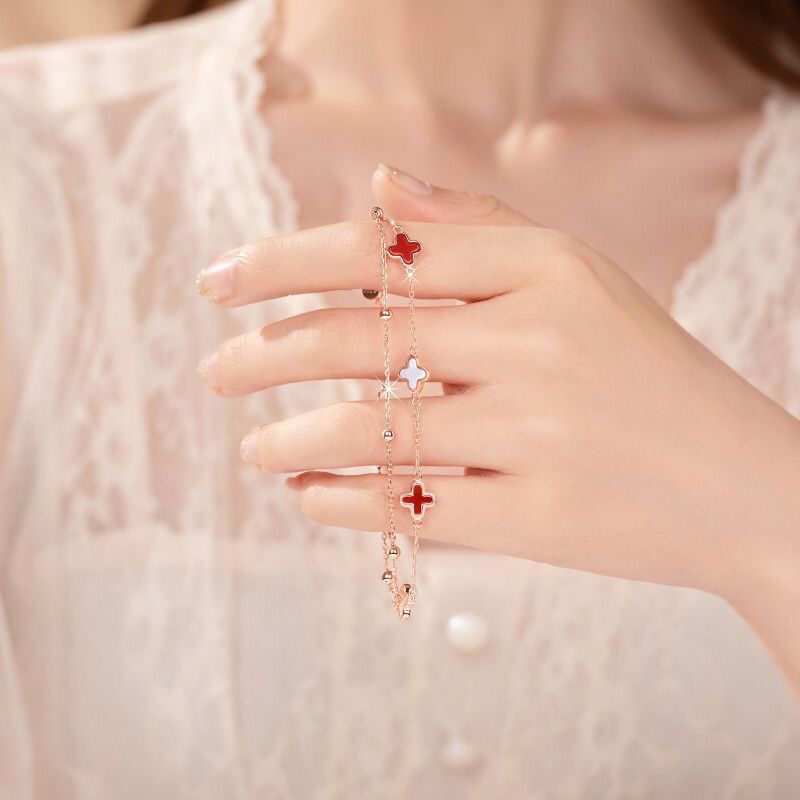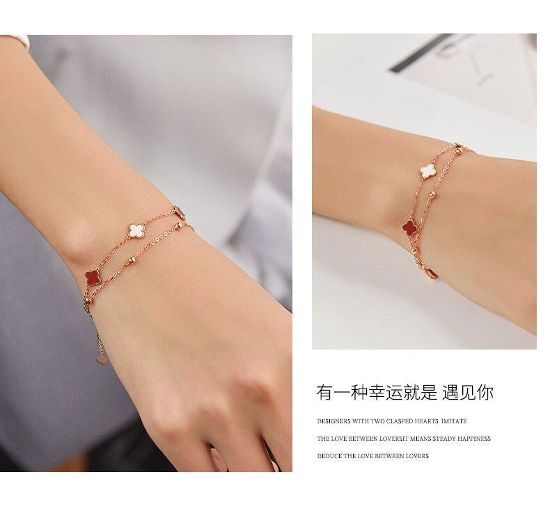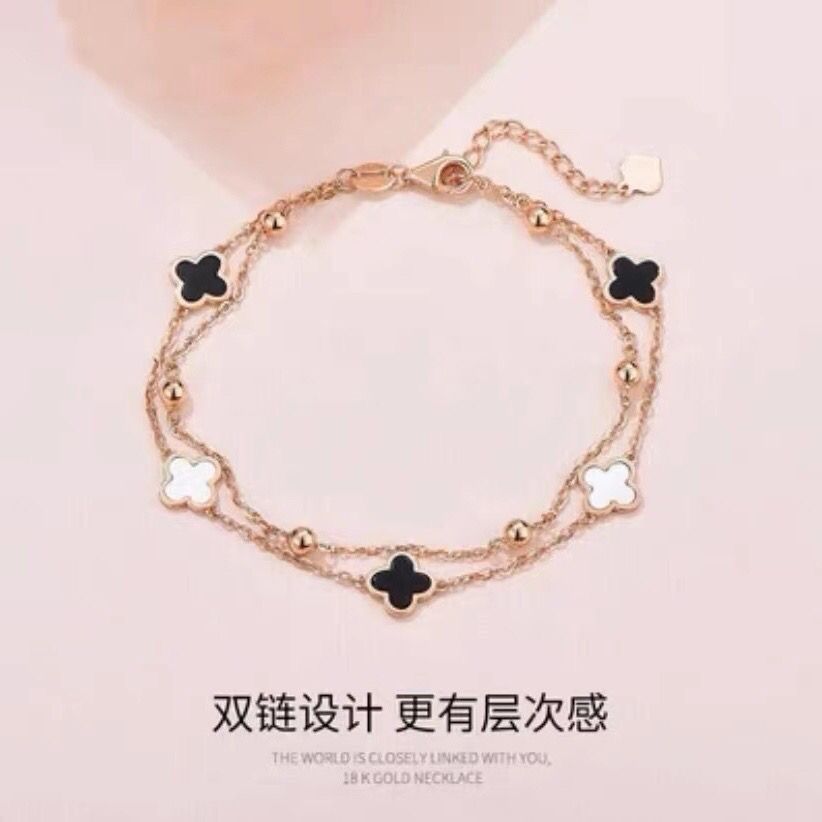 正品999纯银手链女款ins小众设计双层四叶草情人节送女友闺蜜