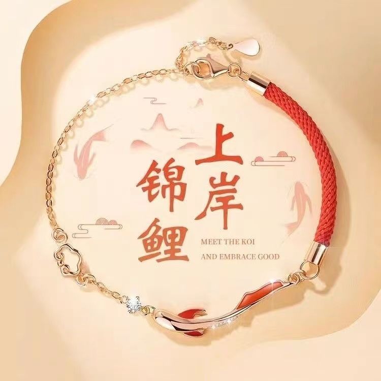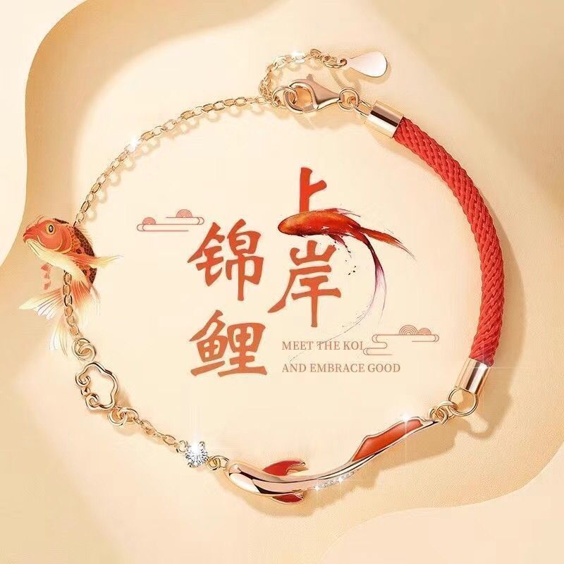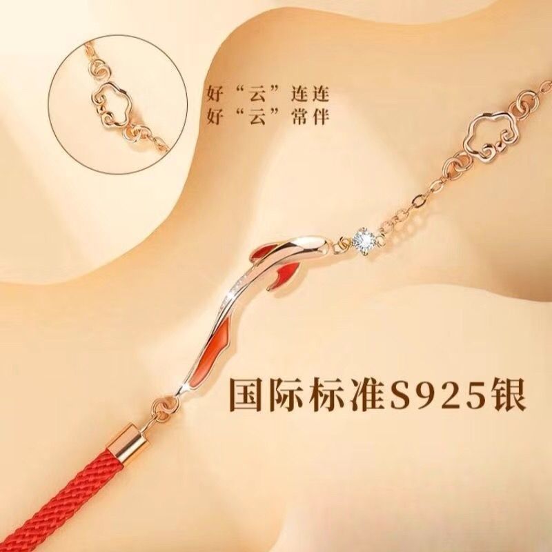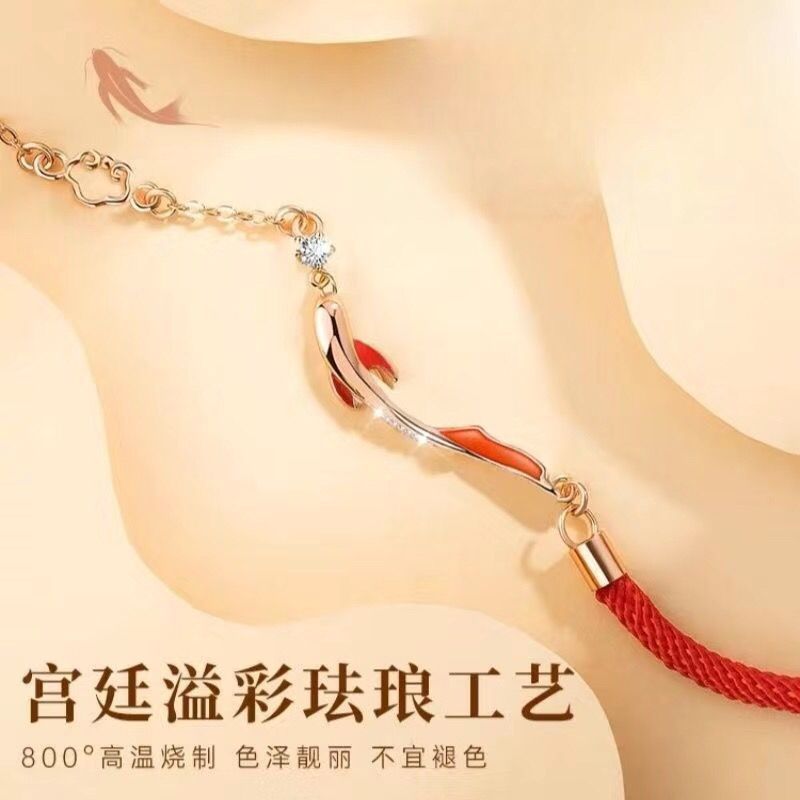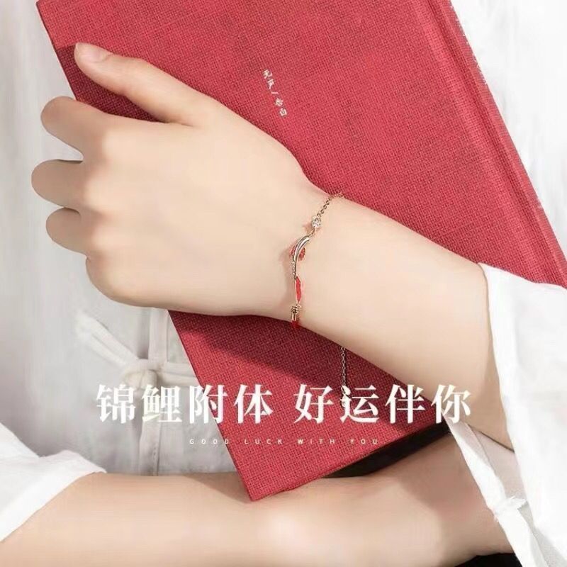 镀925银上岸锦鲤好运手链 in小众设计红绳送女友闺蜜生日毕业礼物