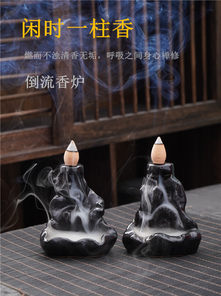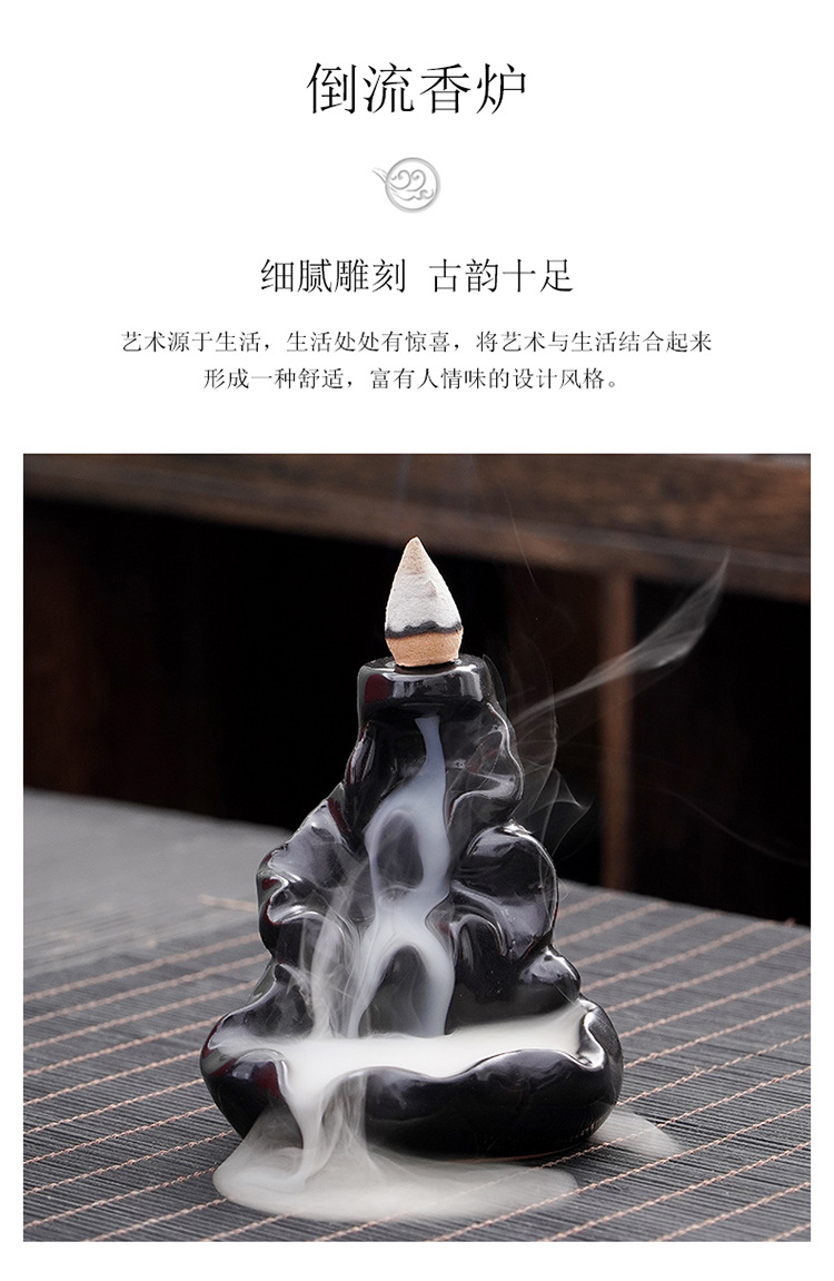 陶瓷倒流香炉新款黑色创意家居办公室香道摆件薰香炉厂家一件代发