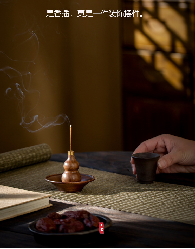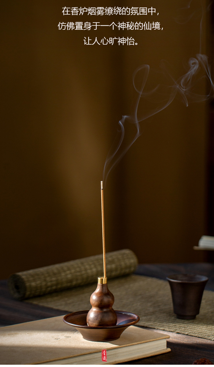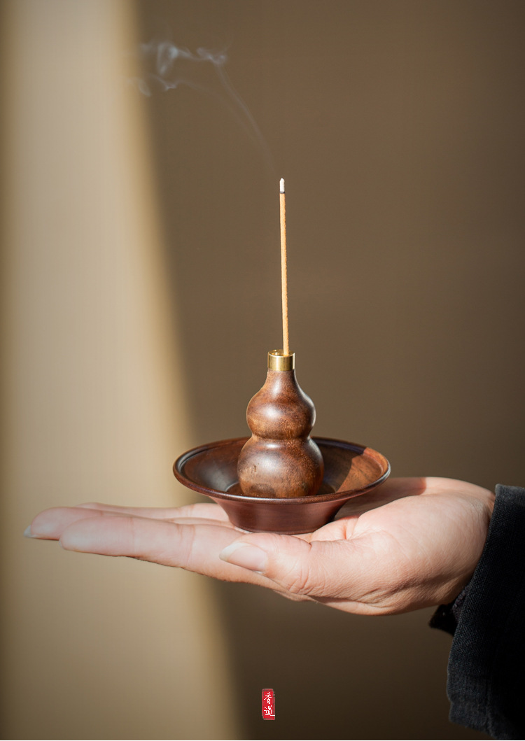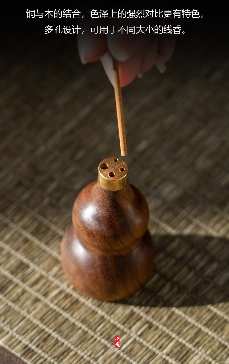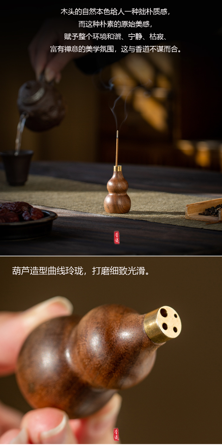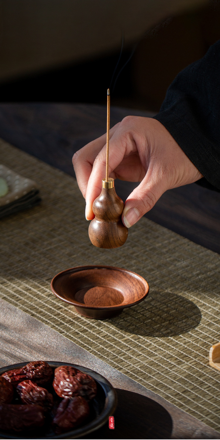 实木香插北美胡桃木整木线香沉香檀香新中式香座香盘香托葫芦摆件