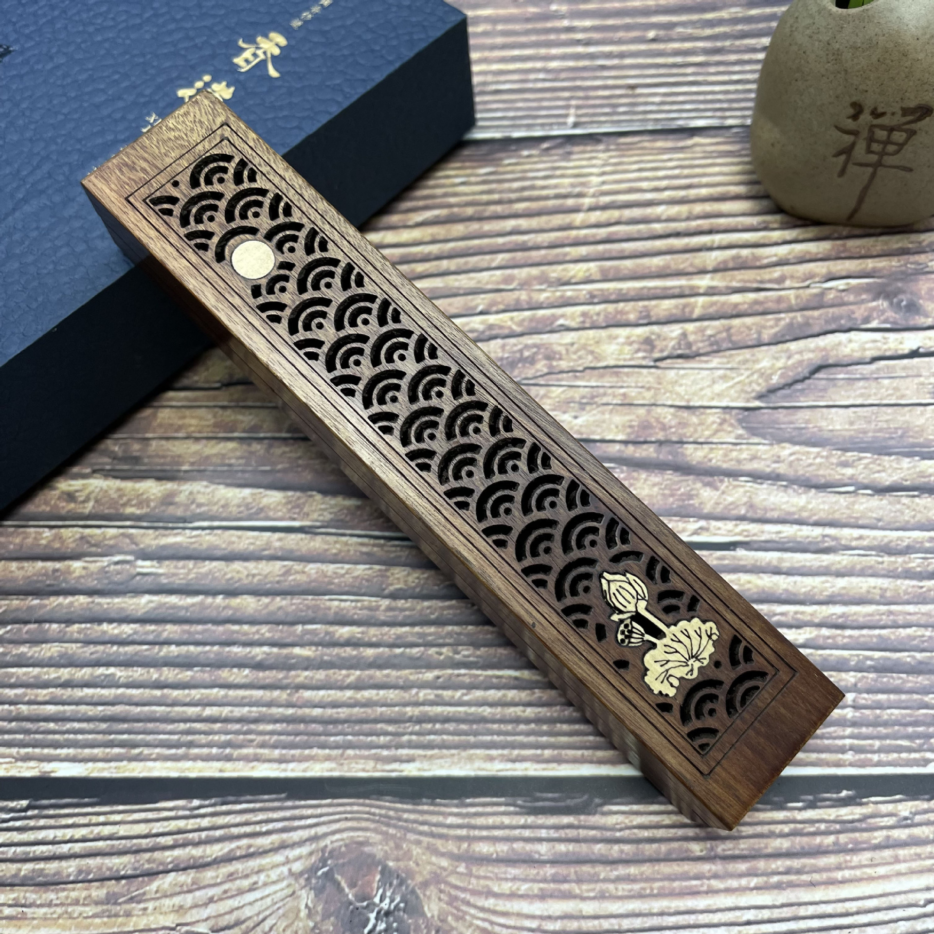 黄杨盒木质香薰炉装居室香复古檀香盒非州酸枝香炉工艺品摆件香具