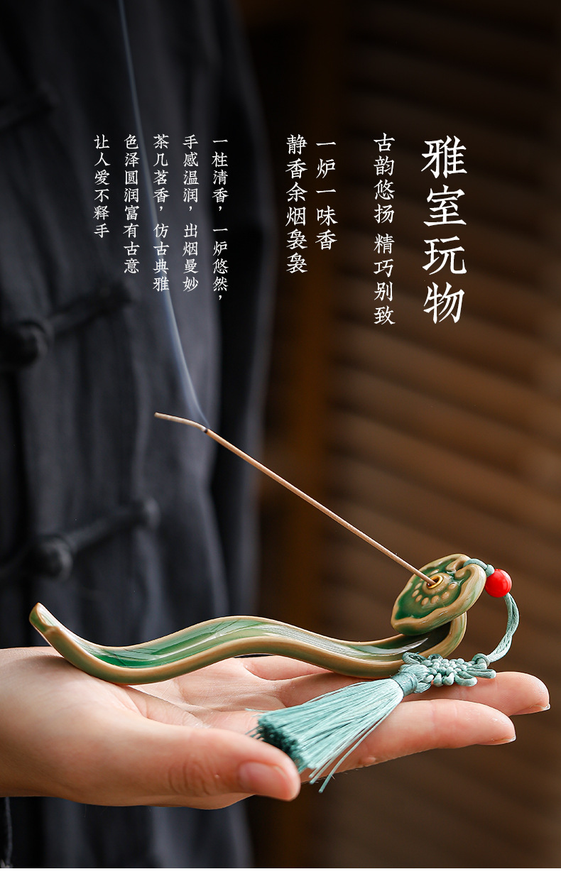 创意线香插 小号如意香座 陶瓷线香炉摆件沉香炉室内家用茶室香薰