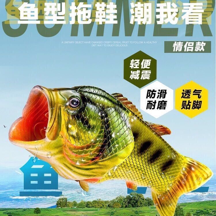 新款鱼拖鞋防滑搞怪居家室内防水男士一字拖潮流学生情侣凉拖鞋女