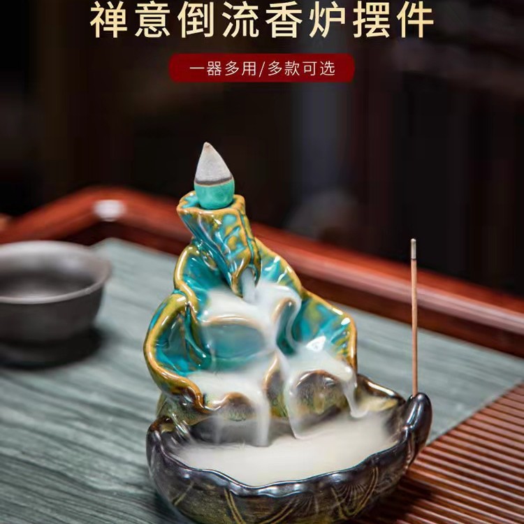 陶瓷倒流香炉倒流创意檀香炉香道摆件家用室内沉香香薰炉