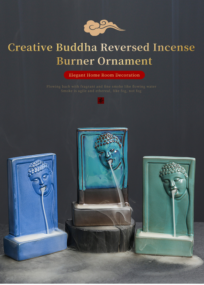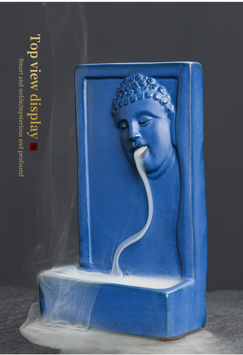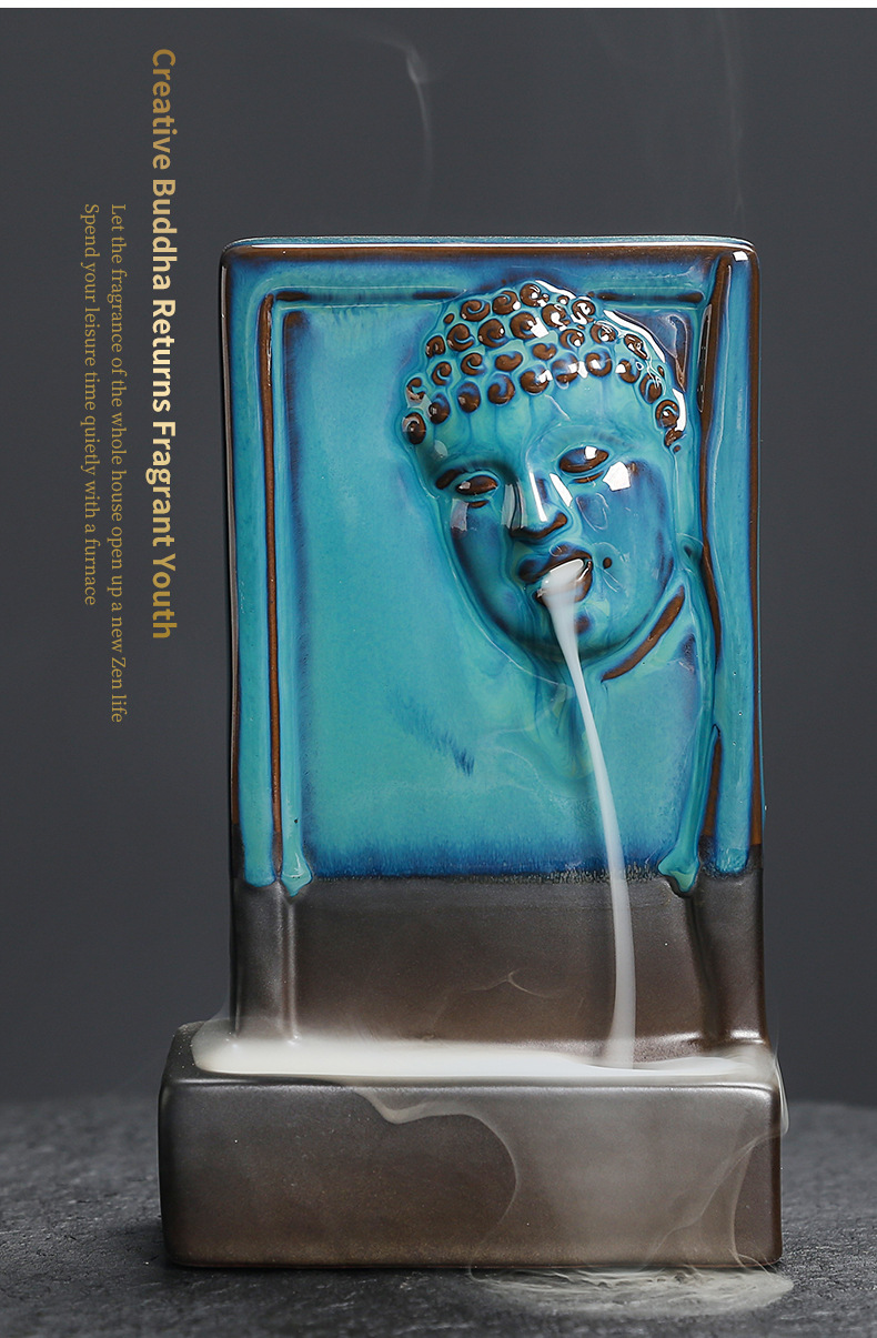 跨境陶瓷倒流香薰炉工艺品摆件 创意如来释迦摩尼佛檀香倒流香炉