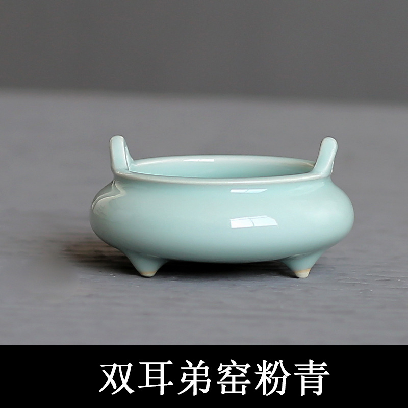 龙泉青瓷香薰炉陶瓷佛具仿古合金盖香炉居室摆件沉香檀香炉双耳款
