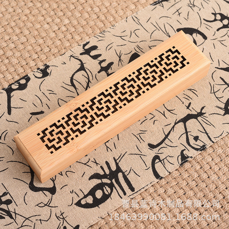 竹木长方形香盒雕刻镂空香薰盒车载家用香炉木质线香包装盒熏香炉