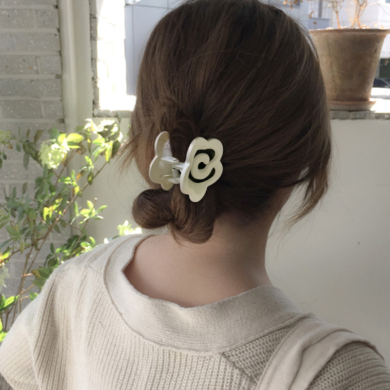 盘发鲨鱼夹磨砂镂空花朵抓夹塑料透盘发头饰